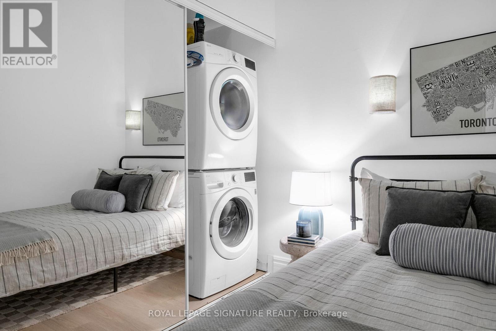 Welcome to the heart of King West. This fully renovated 2-bedroom residence brings boutique loft living to life with its soaring 10 Ft ceilings, oversized windows, and a bright, open-concept layout that feels instantly inviting. The custom chef's kitchen is a true showpiece - featuring brand new appliances including a panelled range hood and built-in fridge, a new stove, and quartz counters carried seamlessly up the backsplash for a refined, contemporary finish. The waterfall island creates a stunning focal point with added seating and prep space, while the clever pocket-door cabinet keeps everyday items tucked out of sight for a clean, minimalist look. Open shelving makes this kitchen both functional makes the space feel even more spacious. Wainscotting and designer lighting continue throughout the home, adding character and a modern, elevated feel. The primary bedroom offers double closets and a 4-piece ensuite, while the second bedroom includes a generous double closet of its own. Large locker conveniently located on the same floor. Enjoy hotel-style amenities including a rooftop terrace with BBQ lounge areas, gym, party room, games room, 24-hour concierge, bike storage, and visitor parking.An unbeatable location - steps to King & Queen West's best dining, cafes, shops, Trinity Bellwoods Park, the waterfront, transit, and quick access to the Gardiner. Walk Score 98 - everything is right here. (id:4555)