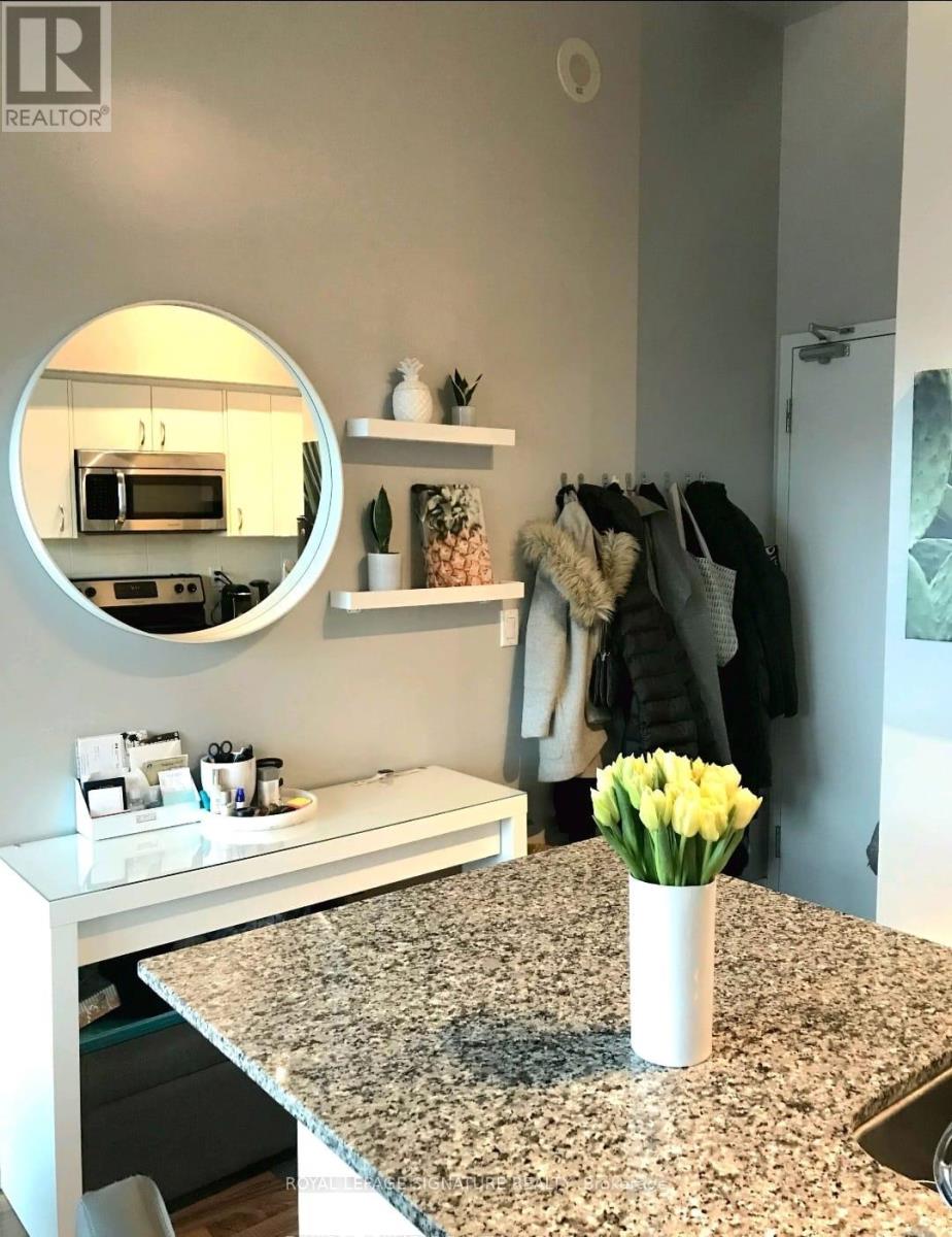 Welcome to Bliss Condos! This Ground Level Studio Features 14' Ceilings and Massive Windows That Let In A Ton Of Natural Light. Absolutely No Wasted Space. The Terrace Faces South and Adds A Ton Of Functionality. Adds A Ton Of Functionality. The Modern U Shaped Kitchen Features Full Size S/S Appliances & Granite Countertops. This Unit Has Been Very Thoughtfully Maintained With Built In Storage and Additional Closets. Parking and Locker Are Included! Amenities Include: 24 Hour Concierge, Meeting/Party Room, Rooftop Deck, Indoor Pool, Gym, Car Wash, Guest Suites and Visitor Parking. Close to Everything- Transit, King West, Grocery Stores, Restaurants, The Waterfront and more. (id:4555)
