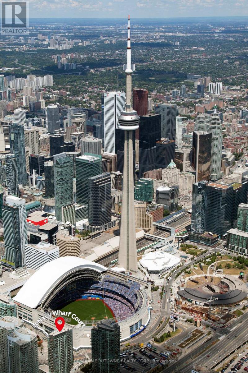 Live at the Lake in a rare Penthouse Corner Suite. Experience elevated living in this stunning penthouse suite featuring 10-ft floor-to-ceiling panoramic windows with breathtaking south views of Lake Ontario & the Island Airport. Located in sought-after Harbour View Estates, residents enjoy exclusive access to the renowned "Super Club"-a separate facility with indoor access offering an indoor pool, gym, BB courts, squash, tennis, & more. This fully renovated home offers approximately 1,100 sq. ft. of thoughtfully designed space, including a bonus room ideal for a home office, complete with 10-ft ceilings & glass French doors. The open-concept kitchen features quartz countertops, stainless steel appliances, a 5-burner gas stove, built-in microwave, breakfast bar with lake views, island stainless steel sink, & a dedicated coffee/beverage bar. The suite showcases high-end 5" engineered hardwood flooring T/O the living areas, custom window coverings, & a neutral designer colour palette. Both bathrooms have been beautifully renovated with oversized tiles, glass enclosures, & quartz finishes. The primary ensuite feat a rain shower with an oversized glass shower, while the main bath offers a full-sized tub. Two generously sized bedrooms incl double closets, the unit is equipped with full-size ensuite laundry. Penthouse living is complemented by two side-by-side parking spaces, conveniently located just steps from the building entrance. Ideally situated at 3 Navy Wharf, this location is steps to the Rogers Centre, minutes to Scotiabank Arena, the CN Tower, & the Well entertainment district. Quick access to the Gardiner via Spadina, & seamless transit options including GO Train, UP Express, & subway are all nearby. The building offers 24-hour concierge service, an excellent elevator-to-unit ratio with only 30 floors & 3 elevators. If you're seeking a rarely offered penthouse corner suite with balcony, spectacular lake views, an unbeatable downtown lifestyle, this is it (id:4555)