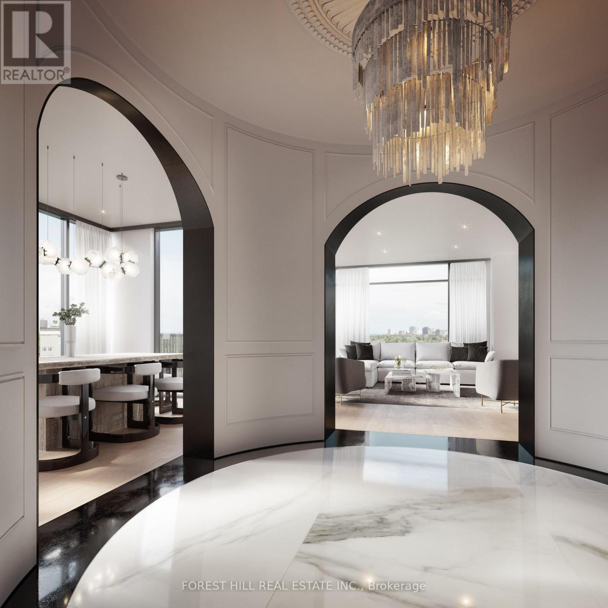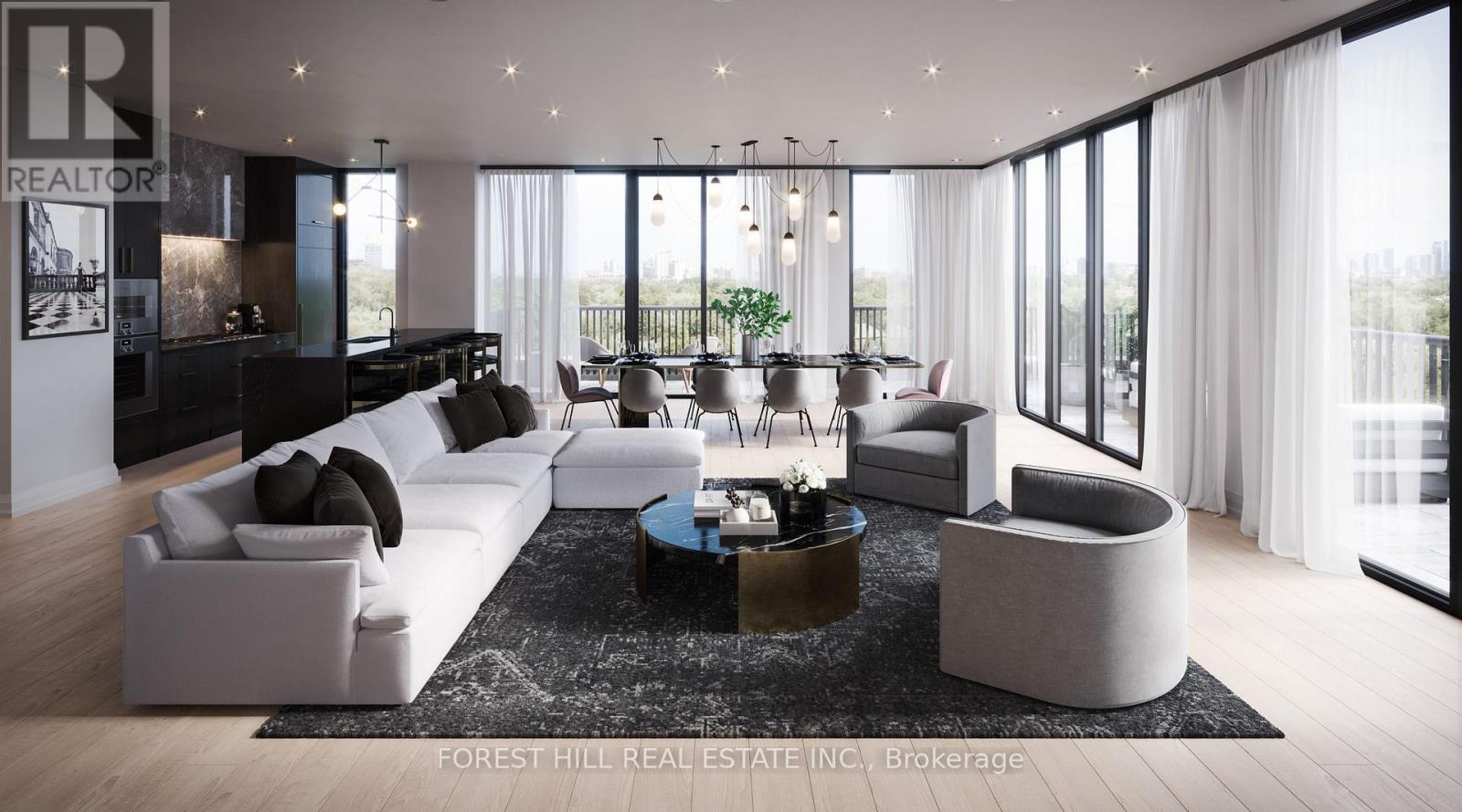 Welcome to The Rhodes - a truly unique, boutique residence with only 25 suites, offering exceptional privacy and quiet luxury. Ideally located where Forest Hill, Cedarvale, and the Upper Village meet, this is a rare opportunity to own in a building that blends tranquility with urban sophistication. Perched above Forest Hill and Cedarvale, this suite offers sweeping, tree-lined vistas reminiscent of Central Park. From every window, you're surrounded by canopy of mature greenery and historic rooftops - a serene, forest-like setting in the heart of the city. From the moment you enter, a sense of calm and privacy sets in - an extraordinary urban refuge that must be seen to be fully appreciated. This brand new 2-bedroom, 3-bathroom suite features direct elevator access into a private rotunda and foyer leading into a grand, open layout. Currently unfinished and fully customizable, buyers can personalize their space or opt for the premium standard finish package, included in the purchase price and completed within 90 days of a firm sale. Standard finishes include 7" wide plank engineered hardwood, quartz countertops, Gaggenau appliances, 7" baseboards, and 8' solid core doors. Suite highlights include 10' flat ceilings, architectural windows, in-floor heating in the primary ensuite. The east facing balcony is shared by both bedrooms, while the west-facing terrace off the living area offers partial coverage, a gas BBQ rough-in, and a beautifully landscaped planter with a large tree and seasonal florals. Enjoy refined living and white glove concierge service provided by the Forest Hill Group. (id:4555)