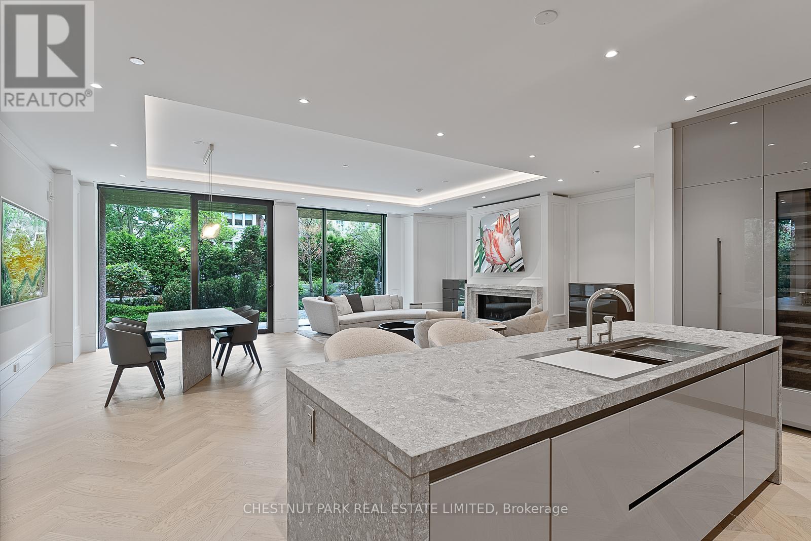 Welcome to 7 Dale, an exquisite boutique residence by Siamak Hariri and Studio Munge, exemplifying quiet luxury in every thoughtful detail. This fabulous one-of-a-kind apartment offers all the livability, private outdoor space and design aesthetic of a midcentury bungalow, set in a newly completed condominium in the heart of Rosedale! Collect art and appreciate great design. A gallery style entrance with large art walls creates a dramatic and memorable first impression and leads to an open concept great room perfect for hosting family gatherings, holiday entertaining or simply relaxing in. Enjoy cooking... You will fall in love with the sleek DaDa chef's kitchen featuring huge central island & 9-piece Gaggenau appliance package with both gas and induction options. Adore nature? Massive floor-to-ceiling glass panels with walkouts from every room frame the changing seasons of your own private outdoor space. The generous dining/seating terrace is sheltered from rain by a bronze canopy and surrounded by lush layers of beautifully manicured gardens. Value privacy... The split bedroom layout allows for maximum separation of space while a corner family room offers an alternative retreat off the great room, ideal for reading or watching films. Enjoy the ease and convenience of main floor accessibility with 24 hour concierge services just down the hall and potential for a direct private gated access to Dale Avenue (perfect for morning runs or walking the dogs!) Downstairs, a sumptuous spa and fitness club await, fitted with Pent, Peleton and Tonal equipment. A home suited for year round enjoyment or lock and leave to travel at a moment's notice with complete security and peace of mind assured. Mere minutes to the city's finest shopping and dining venues, yet feels like an exclusive retreat a world away from the urban bustle. This is a rare opportunity to enjoy a lifestyle without compromise, combining the unique features of a home with all of the benefits of a condominium. (id:4555)