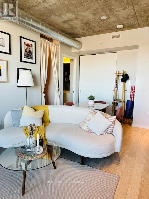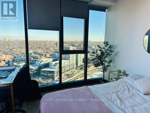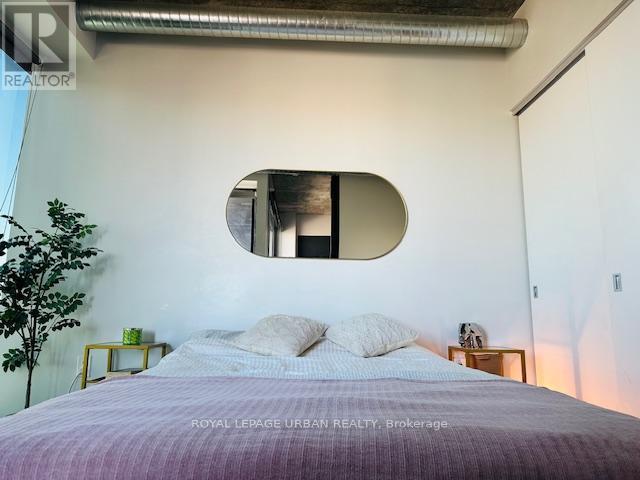 1 Bedroom + Den in Award Winning Building! 570 sq. Ft. of modern loft living w/ combined living room and kitchen, integrated appliance, cement ceilings and exposed ducts. Walk out balcony w/ clear East Exposure from the 27th floor overlooking Corktown Common Park. Spacious bedroom w/ a three door closet system, den is semi enclosed furnished w/ twin bed for guests. Floor to ceiling windows throughout living room and bedroom w/ roll down blinds. Modern four piece bathroom w/ generous storage and installed bidet. Quiet Building and neighbourhood parked in the corner of city. Building is Energy and Environmental Design and has a LEED Gold Certification w/ green roof deck. Within walking to distance to TTC, restaurants, newly built YMCA, shops, Distillery District, Riverdale. Building Amenities: 24 hr Concierge, Gym, Yoga rm, Outdoor Lap Pool, Guest Suites and Party room. Unit will be professionally cleaned throughout prior to occupancy. *Rent control building* (id:4555)