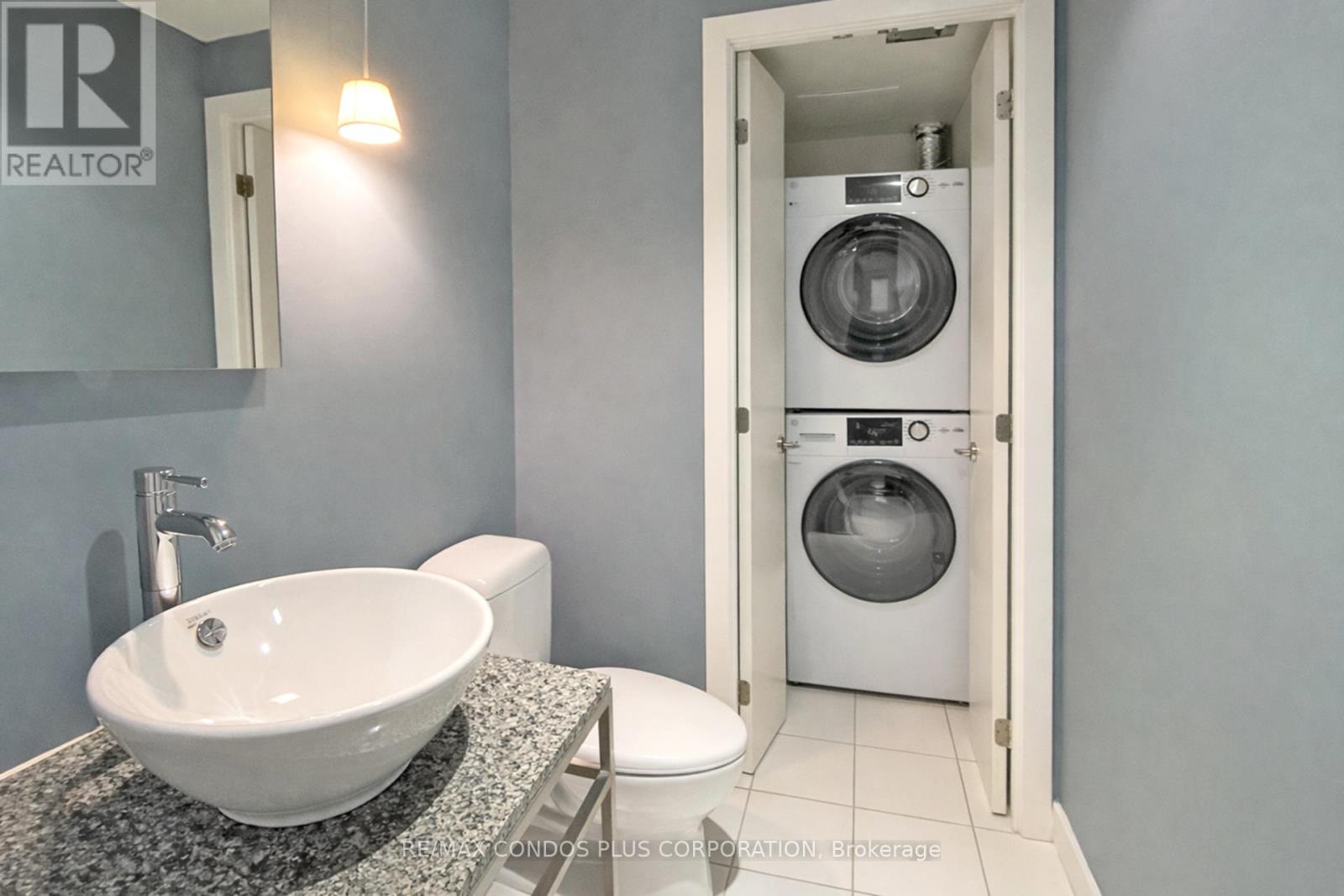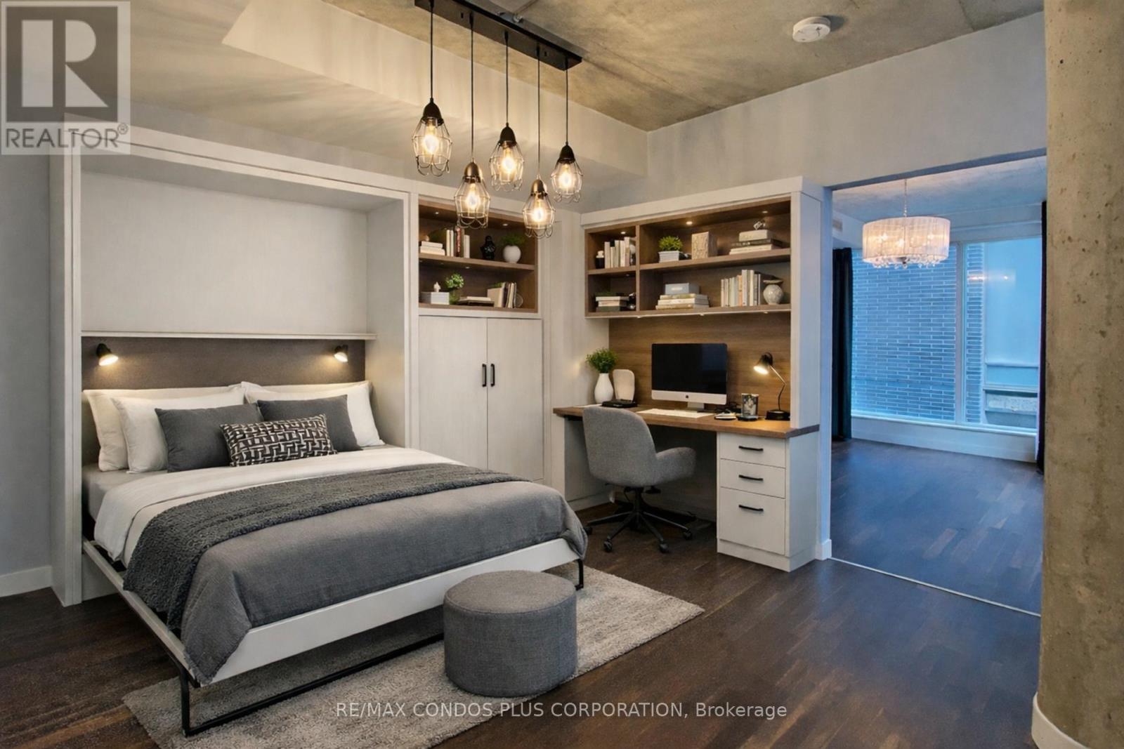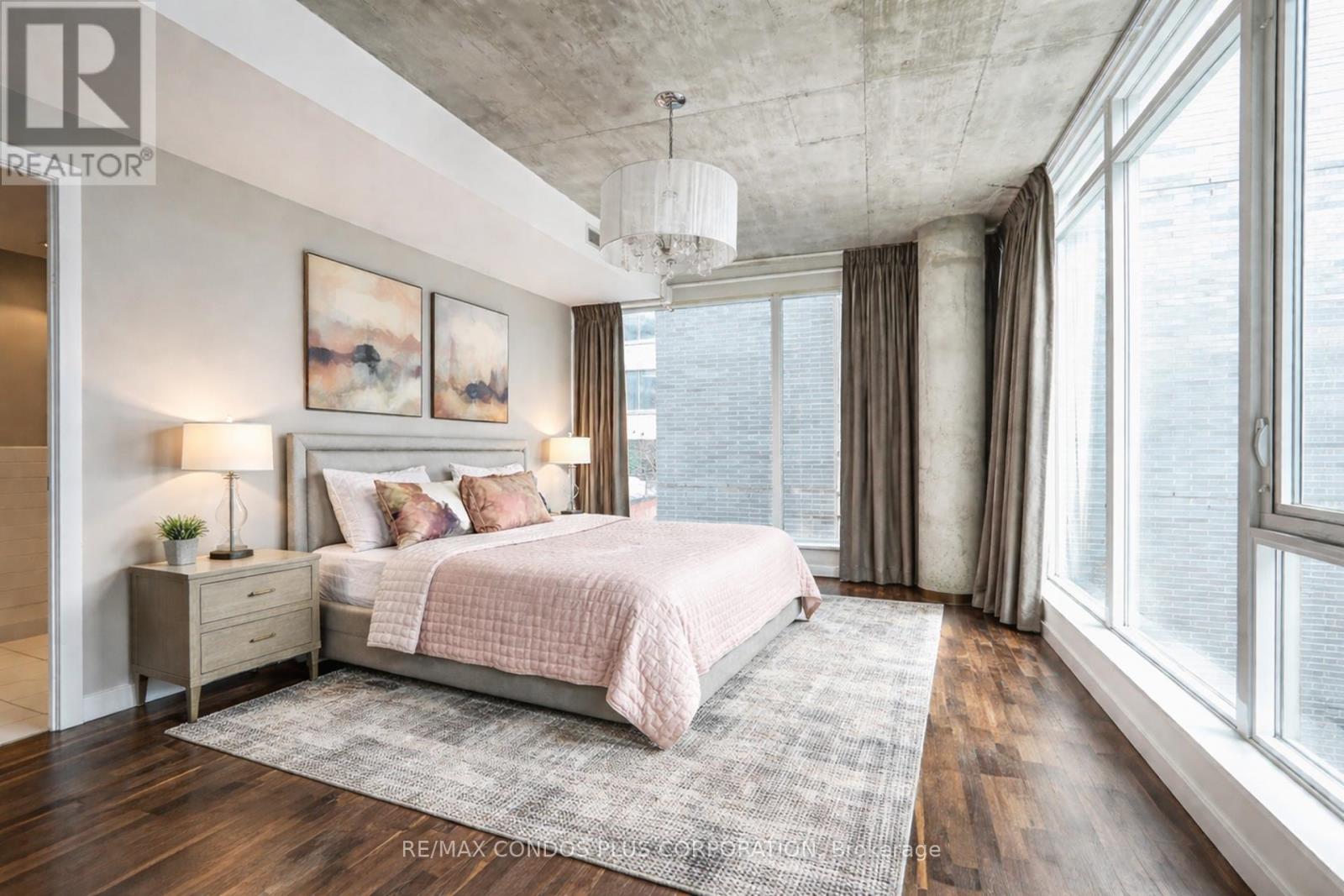 Experience the best of King West Loft living at Seventy5 Portland. This supersized 1-Bedroom + Den, 2-bathroom corner suite is where bold design meets unbeatable lifestyle. Relax & Unwind with almost 1,000 SF of modern, open-concept space curated for both function and flair. Enjoy Soaring 9-ft exposed concrete ceilings, and south-facing floor-to-ceiling windows that flood the home with natural light. White Modern Cabinetry, Hardwood Floors, Quartz Countertops & Full-sized Stainless Steel Appliances accent an Oversized Kitchen Island that creates a stylish hub perfect for everyday living or effortless entertaining. Retreat to your king-sized Primary Bedroom, complete with a large walk-in closet and a luxurious 4-piece ensuite featuring a Soaker Tub and separate glass-enclosed shower. The versatile 11.28 Ft x 10 Ft den with a full window offers the ideal flex space for a home office, second bedroom or guest suite, gym or creative studio. Step out through the Double Glass Sliding Doors to your private south-facing terrace with a gas BBQ hookup with City & Sunset Views. This is the ultimate urban oasis where you can relax, entertain, and soak in the city skyline. Perfectly positioned in Toronto's thriving Fashion District, you're steps to King Street West, Victoria Memorial Square Park, Shops & Restaurants at The Well, Queen West, world-class dining, and even Billy Bishop Airport & the Waterfront Trails. A Perfect 100/100 Walk & Transit Score! Parking, Locker, and Bicycle Rack included...because true downtown living shouldn't mean making any compromises. Ready to elevate your lifestyle? Suite 424 isn't just a condo, it's your next great chapter in refined Urban Living. Dare to compare....exceptional value and location.... see Video Tour for more! (id:4555)
