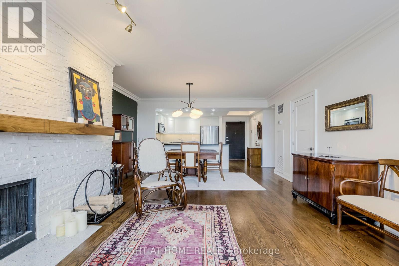 Rarely Offered Davisville 2 Storey Loft Style Penthouse.Stunning Extensive Renovation In 3 Yrs. Completely Redesigned To An Open Concept Layout,Kitchen W/ Granite Counters Coffered Ceilings.Living Dining/Room Features Floor To Ceiling Windows Overlooking Unobstructed West Green View With Great Sunset Every Day.31/4 Inch Oak Hardwood Flrs Through Out, Custom Built-In Cabinetry Featuring A One Of A Kind Real Wood Burning Fire Place That Gives A Cottage Feelings. Low Maint Fee Over 1200 Sq Feet Unit. Neighbours Are Excellent. This boutique, low-rise, wheelchair-accessible building features a terrace with a BBQ on the ground floor. (id:4555)