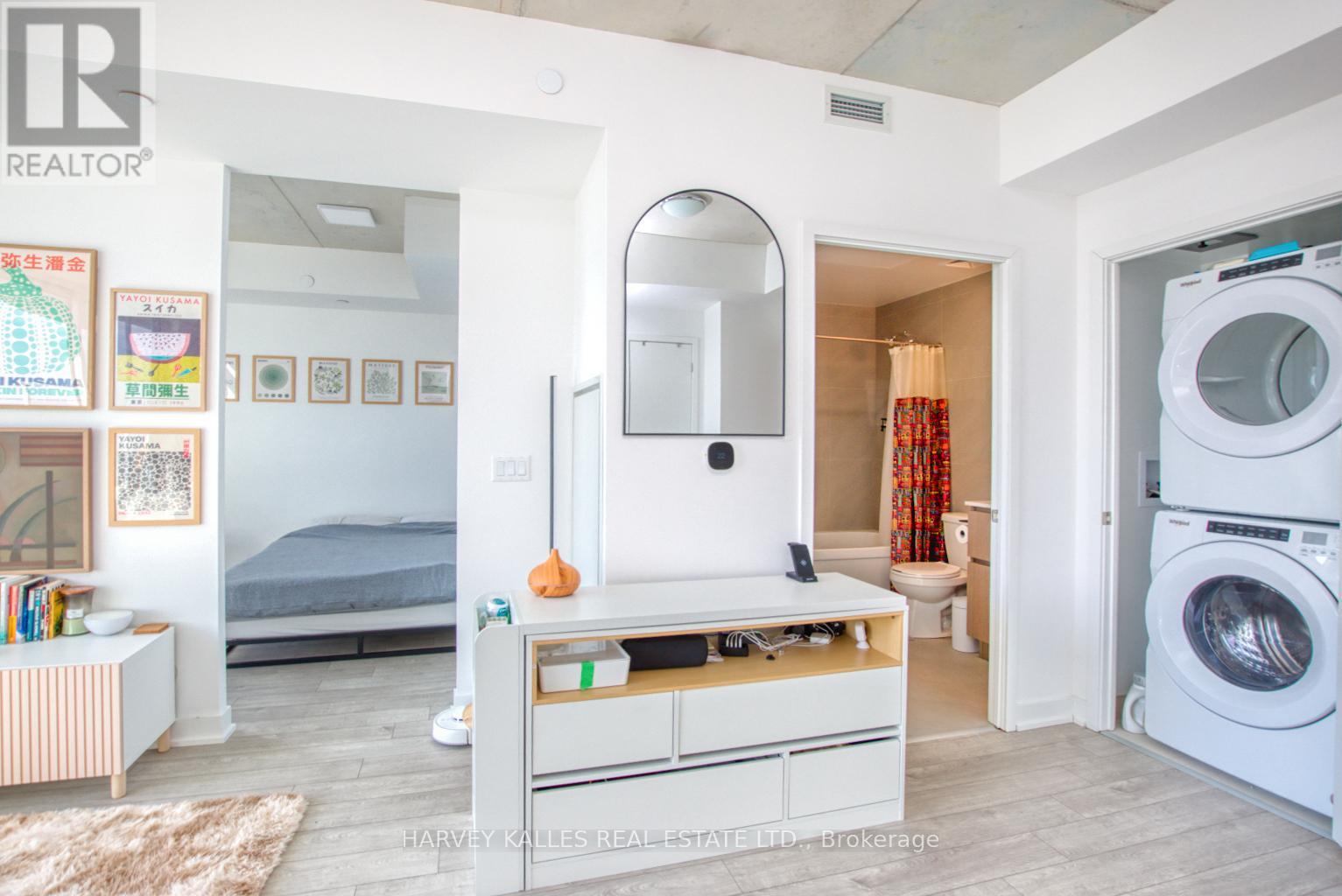 Welcome to Suite 1209 at 45 Baseball Place, a functional and upgraded unit offering 470 sqft. of interior living space complemented by a 40 sqft. balcony with unobstructed east and south- facing views of the lake. Featuring 9-foot ceilings and floor-to-ceiling windows, this bright and airy unit is flooded with natural light throughout the day. The open-concept layout showcases a custom upgraded kitchen with cabinetry exclusive to this unit, providing both style and functionality rarely found in the building. The bedroom is enhanced with a ceiling light fixture, while the bathroom offers additional built-in shelving for everyday convenience. Enjoy the comfort of a full-size washer and dryer, making urban living effortless. Step outside to your private balcony and take in east-end city and lake views-perfect for morning coffee or evening relaxation. The unit comes with one locker, and there is an option to lease it furnished for added convenience. Residents enjoy access to modern building amenities, including a fully equipped Gym, Party and Meeting Room, Outdoor Pool, Rooftop Deck and Bike Storage. Underground Visitor parking is available at $4.50 per hour. Ideally located in a vibrant downtown neighbourhood, steps to transit, waterfront trails, dining, and entertainment-this is city living at its finest! (id:4555)