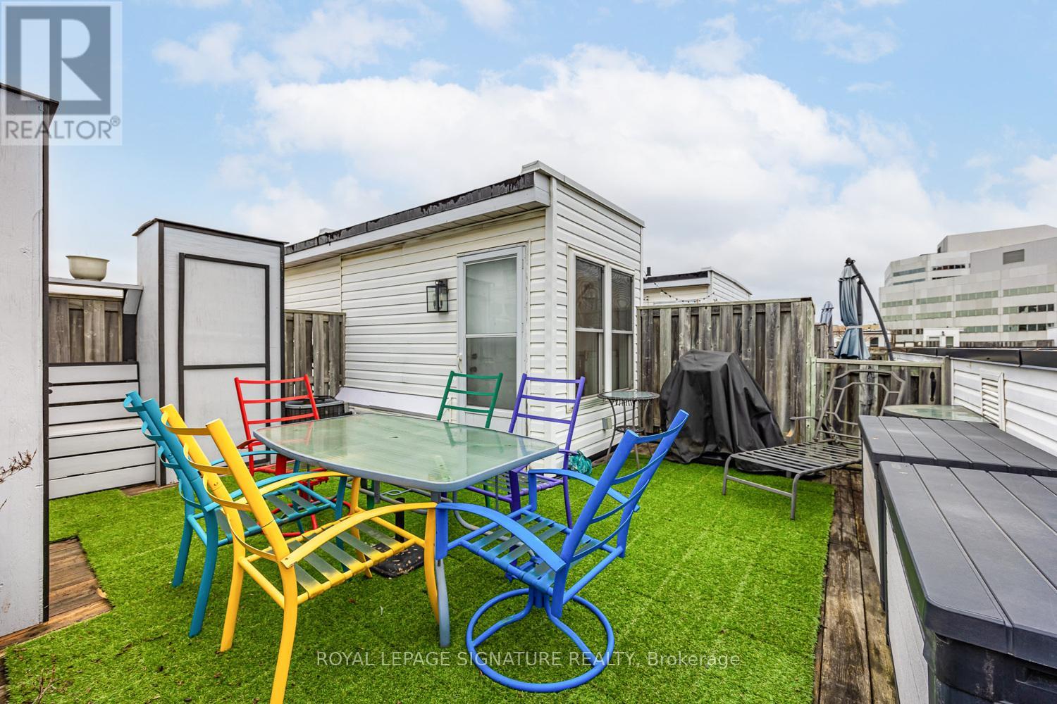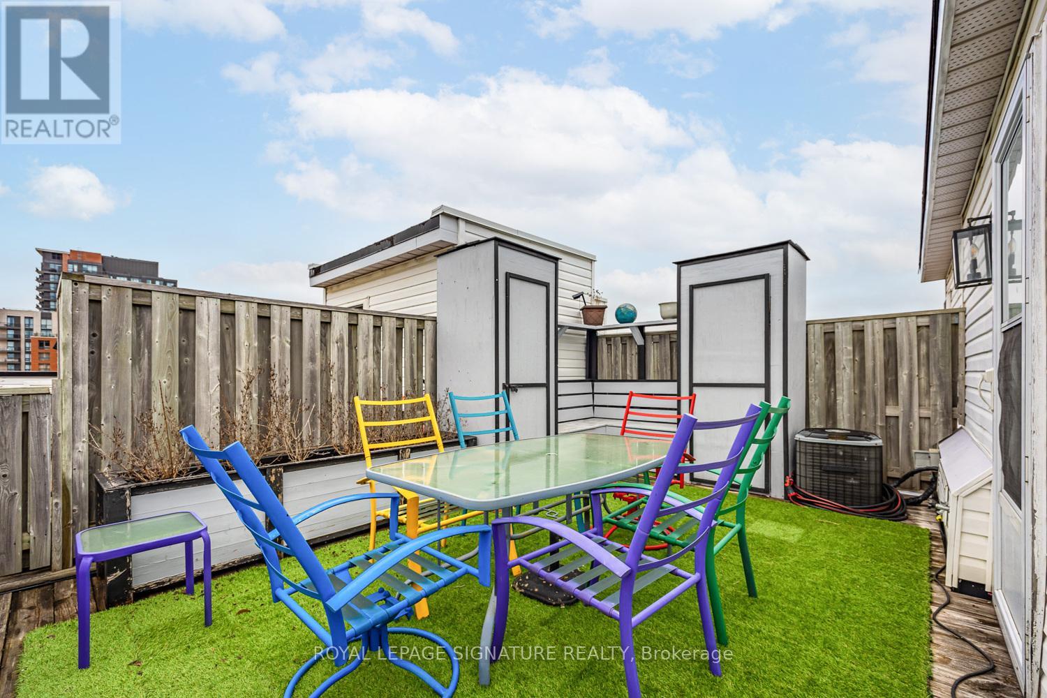 Welcome home to Liberty Walk - a charming townhouse community known for its friendly, neighbourhood feel! This rarely offered three-bedroom, three-bathroom townhome features a private entrance and a bright, spacious layout that truly checks all the boxes. Offering over 1,000 sq. ft. of living space across three thoughtfully designed levels, the home provides exceptional flexibility, ideal for young professionals, roommates, and a work-from-home lifestyle. Awesome updates throughout with newer vinyl plank flooring and renovated bathrooms, along with large windows, filling the space with natural light. The open-concept living and dining area with high ceilings flows seamlessly into the custom kitchen, equipped with quartz countertops, marble flooring, all appliances and a functional island for casual dining and additional storage. The secondary bedrooms are currently used as home offices but can easily adapt to suit your needs. Relax in the large primary bedroom, complete with ensuite bath, walk-thru closets and large bay window. You'll love the sunny, oversized and private, 373 SqFt rooftop terrace - perfect for the green thumb and entertainers. Includes a built in custom bench and storage units - BBQs are permitted. This move-in-ready suite also includes a designated parking spot and ample visitor parking. With a Walk Score of 82 and excellent Transit score of 85, this location offers exceptional convenience. Lawrence West Station, transit stops, parks and shopping are all within walking distance, with a quick drive to Yorkdale Mall for luxury shops and restaurants. Easy access to Allen Rd and the 401. This suite offers the perfect blend of style, space, and urban convenience. Come see it for yourself! (id:4555)