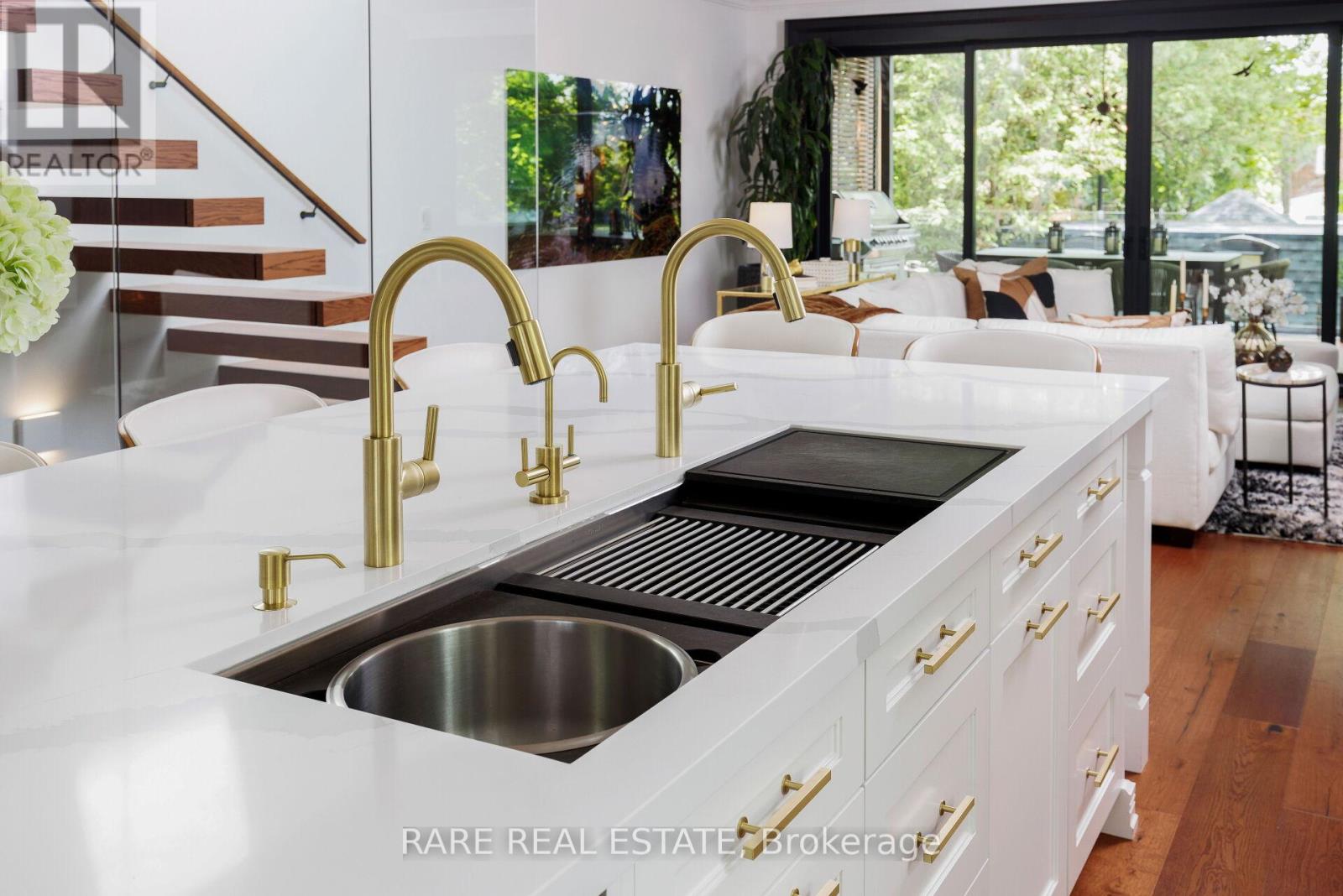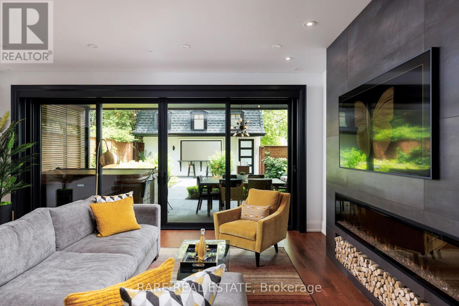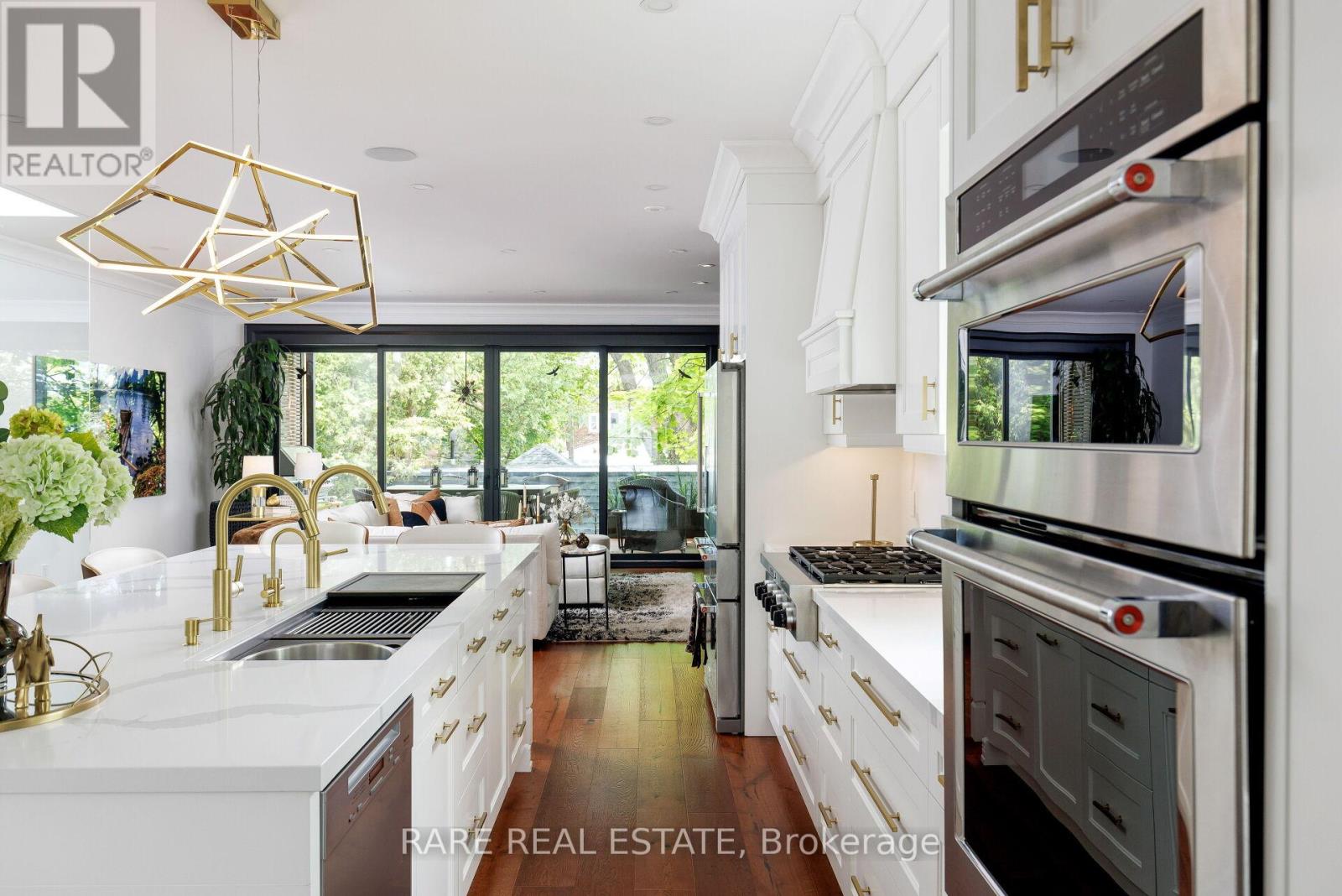 A home so unique and exceptional, it needs to be seen in person to experience the level of passion for design and architecture, and attention to every detail. Full features list available on the virtual tour website. This home has an abundance of features and technology for comfortable everyday living and elevated entertaining. 3,672 sqft above grade space, no basement, 9 foot ceilings on all levels and 5 above grade bedrooms. Situated on a majestic corner lot with picturesque landscaping, wide backyard, views of the water and steps to the waterfront parks and Lake Shore shops. A home where luxury and warmth come together. Every inch of this home has been masterfully curated with the finest quality finishes and technologies, creating a space that is both breathtaking and inviting. Fully open main level with floating wood and glass staircase that fills the room with sunlight. Designer kitchen with a massive 10 ft kitchen island, and 5 foot Galley Kitchen workstation sink with triple faucets. Double door walk out to the covered terrace overlooking the backyard gardens. Luxurious and relaxing primary suite with views of the sunrise over the water. Complete with his walk-in closet and her walk-in dressing room with custom wall to wall cabinets. The backyard's professionally designed landscaping envelops the home in natural beauty and privacy, a cottage setting in the city. The garage completes the outdoor entertaining with a cabana bar glass garage door and rough in mini kitchen. Rough-in kitchen on lower level for in-law suite. Hi-Velocity heat/cool air system with 4 thermostat control zones (1st floor, 2nd floor, 3rd floor, Principal suite). 6 zone in-floor radiant heating on ground level and full bathrooms. Voice & phone controlled smart home integration with custom Lutron lighting control system and Sonos sound system. 3 Samsung 65 inch Frame TVs integrated into the fireplace walls with Sonos play bars. Dressing room can be converted back to the 5th bedroom. (id:4555)