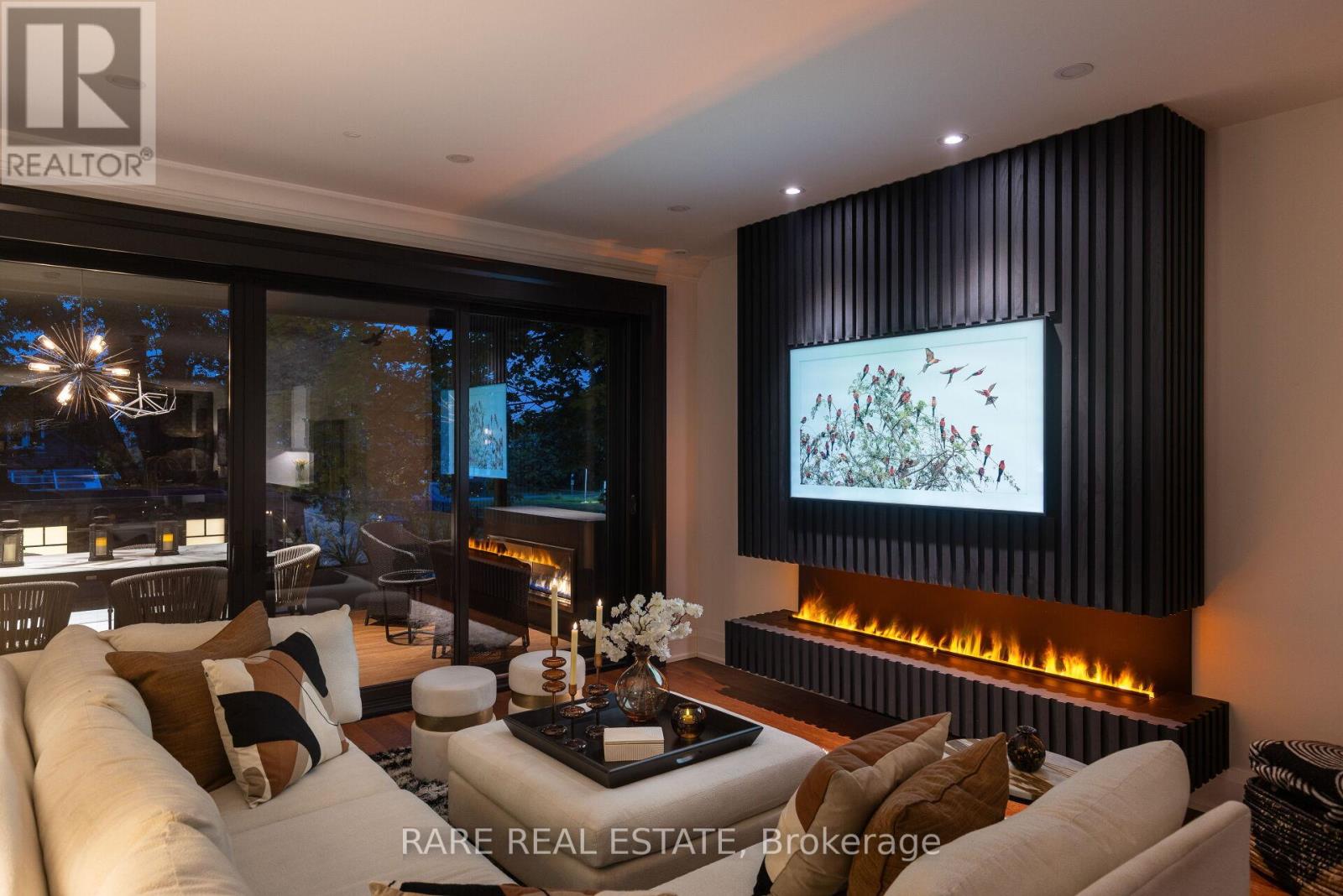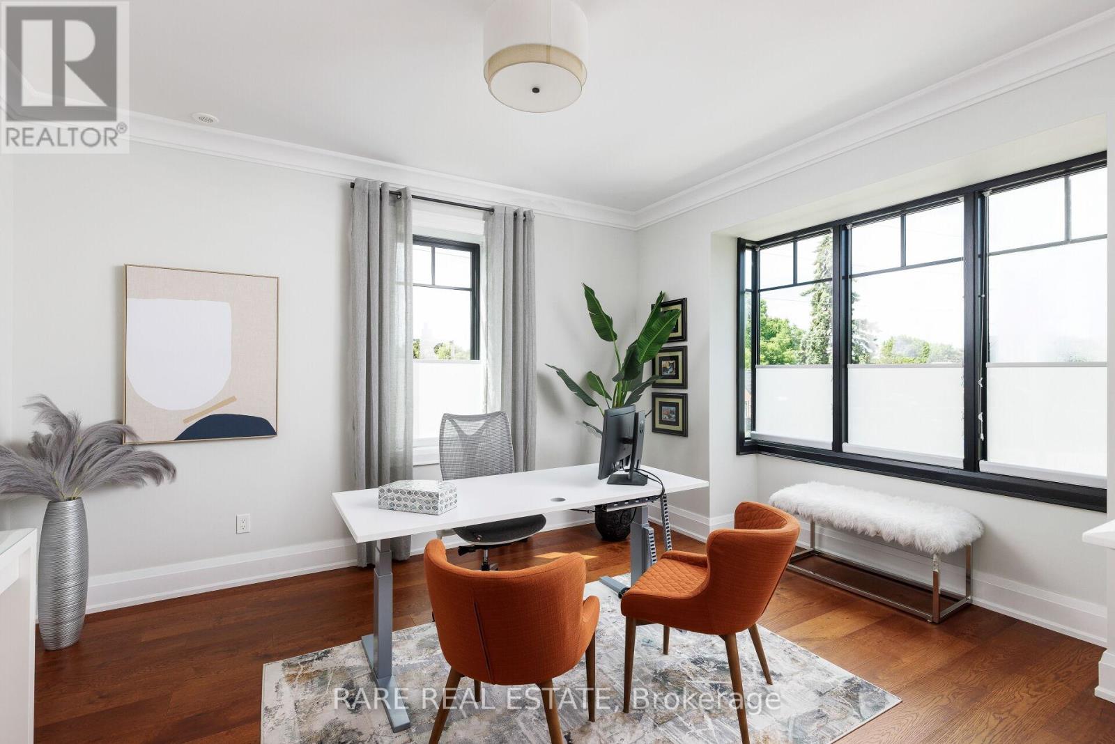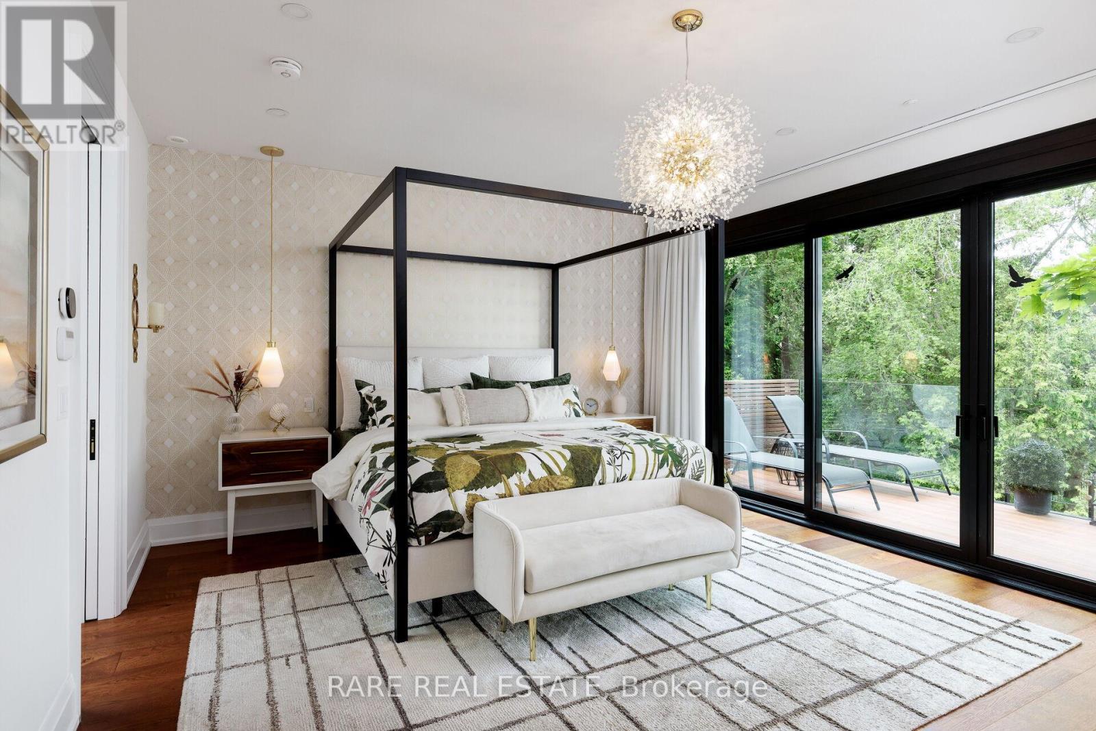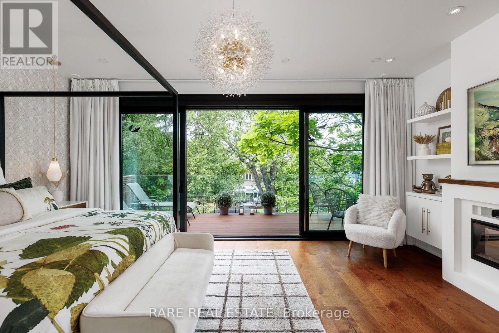 A home so unique and exceptional, it needs to be seen in person to experience the level of passion for design and architecture, and attention to every detail. Full features list available on the virtual tour website. This home has an abundance of features and technology for comfortable everyday living and elevated entertaining. 3,672 sqft above grade space, no basement, 9 foot ceilings on all levels and 5 above grade bedrooms. Situated on a majestic corner lot with picturesque landscaping, wide backyard, views of the water and steps to the waterfront parks and Lake Shore shops. A home where luxury and warmth come together. Every inch of this home has been masterfully curated with the finest quality finishes and technologies, creating a space that is both breathtaking and inviting. Fully open main level with floating wood and glass staircase that fills the room with sunlight. Designer kitchen with a massive 10 ft kitchen island, and 5 foot Galley Kitchen workstation sink with triple faucets. Double door walk out to the covered terrace overlooking the backyard gardens. Luxurious and relaxing primary suite with views of the sunrise over the water. Complete with his walk-in closet and her walk-in dressing room with custom wall to wall cabinets. The backyard's professionally designed landscaping envelops the home in natural beauty and privacy, a cottage setting in the city. The garage completes the outdoor entertaining with a cabana bar glass garage door and rough in mini kitchen. Rough-in kitchen on lower level for in-law suite. Hi-Velocity heat/cool air system with 4 thermostat control zones (1st floor, 2nd floor, 3rd floor, Principal suite). 6 zone in-floor radiant heating on ground level and full bathrooms. Voice & phone controlled smart home integration with custom Lutron lighting control system and Sonos sound system. 3 Samsung 65 inch Frame TVs integrated into the fireplace walls with Sonos play bars. Dressing room can be converted back to the 5th bedroom. (id:4555)