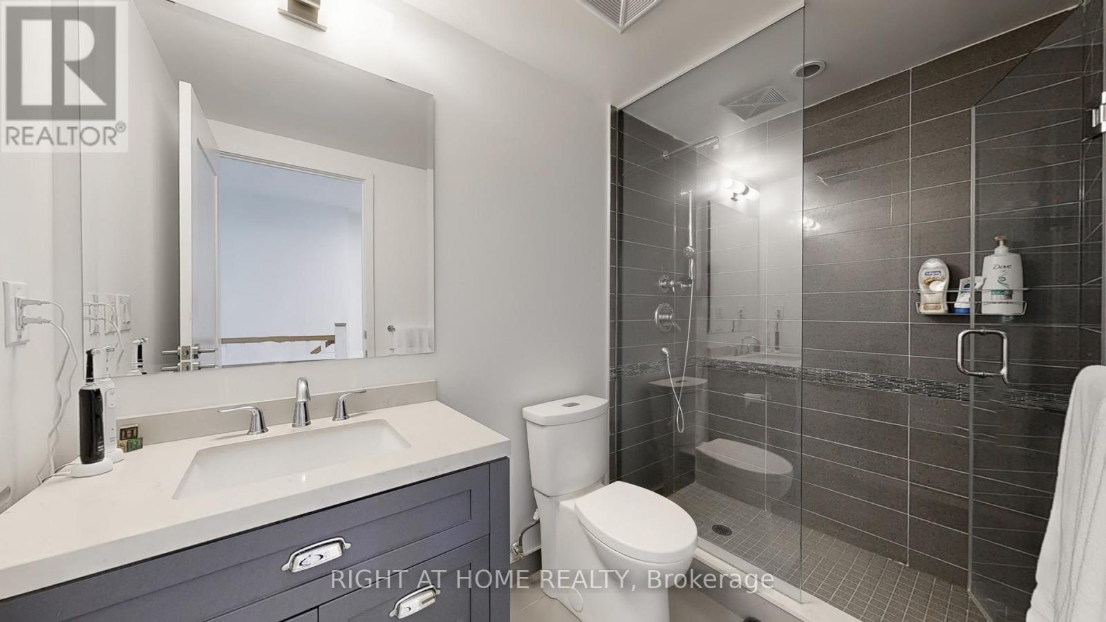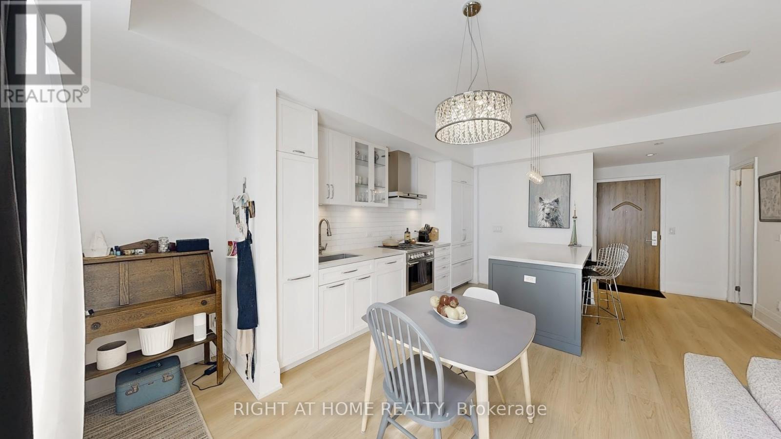 Elevated living at The Upper House in Leaside. This rare two-storey condo townhome offers 1,158 sq ft of refined interior space plus a 98 sq ft private terrace complete with a BBQ gas line and water hookup. Soaring 10 ft ceilings and a thoughtfully designed open-concept layout create a bright, expansive feel throughout. The chef-inspired kitchen features stone countertops and a built-in wine fridge, perfect for entertaining or elevated everyday living. Two spacious bedrooms, three spa-like bathrooms, and one parking space with an EV charger provide both comfort and convenience. Enjoy premium building amenities including 24-hour concierge, fully equipped fitness centre, elegant party room, and a dedicated dog spa. A sophisticated lifestyle awaits in the heart of Leaside, steps to shops, dining, and transit. (id:4555)