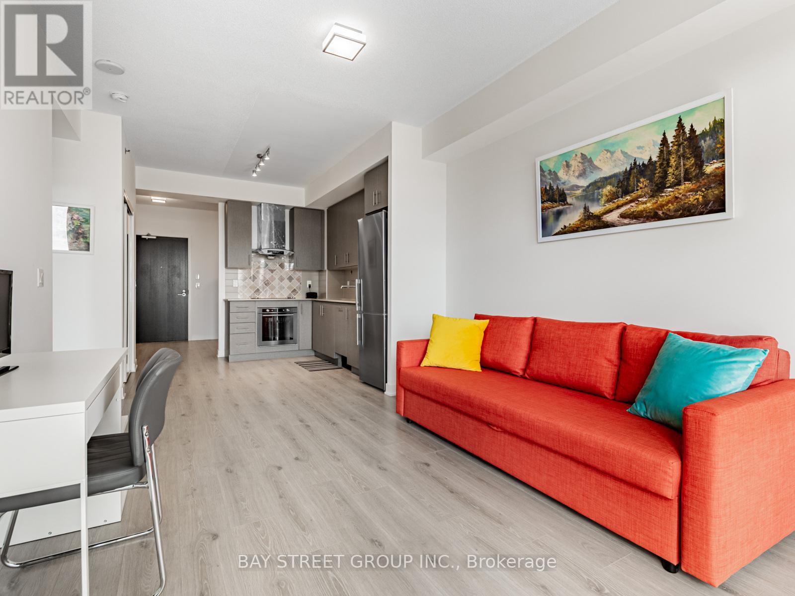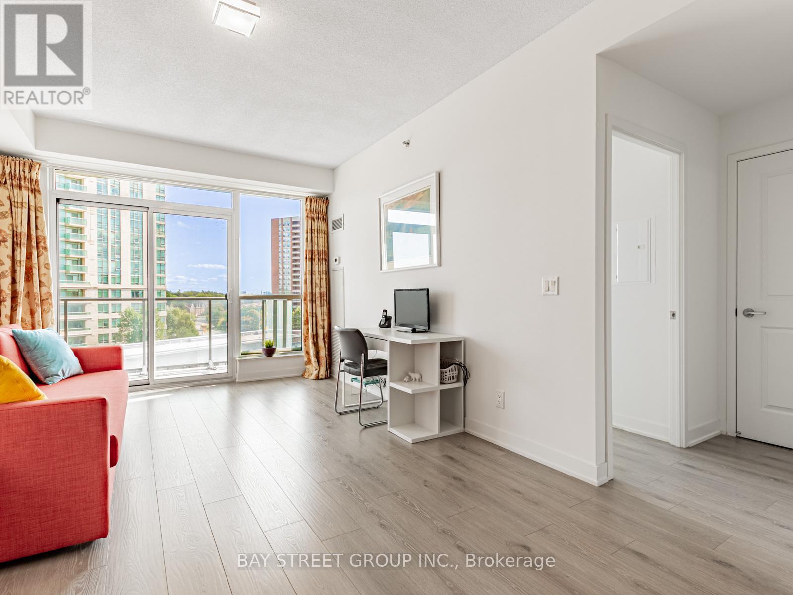 Large and Bright 1+den unit with large balcony. Open concept design w/ 9ft ceilings and Large Window. Laminate flooring throughout, kitchen with quartz counters and S/S Appliances. Close to 401, TTC, GO Station, Library and Shopping Mall. 24 hour concierge, gym and indoor pool. Parking space can be leased directly with the management office. (id:4555)