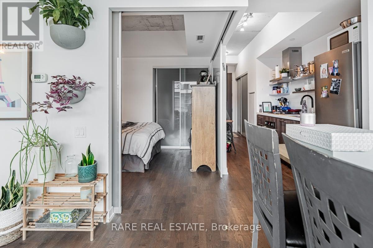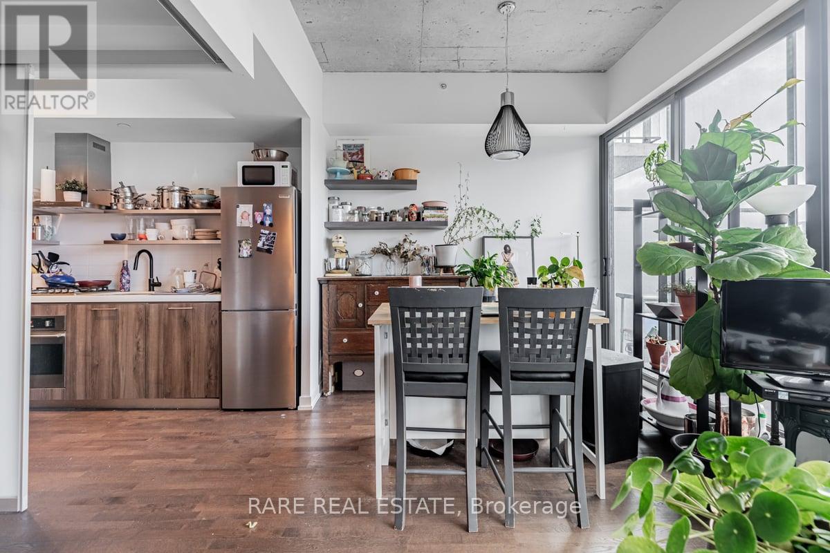 10th Floor Fashion House - 1 Bedroom "Soft Loft" in the Heart of Central King West. Look up at the "10 ft Ceilings" and feel the difference that extra 2 ft makes. Form and function work in harmony in this Popular Loft. Yes, you really feel the 18 ft width of wall to wall,floor to ceiling Windows, which open to you're own outdoor living space that you can enjoy relaxing and entertaining on. Bright, open concept, living and dining rooms ,practically layed out and accented with hardwood floors (throughout the Loft). A Generous Primary Bedroom has a Double closet,Queen bed sized and frosted 9 ft tall sliding doors. Sleek kitchen design includes "Cooking With Gas", Stainless steel appliances ."Roomy Stylish Bathroom" frameless glass shower-ample space. Oh.. and yes, simply one of the best outdoor Summer Pools/Gyms in the city. At 560 King you have every amenity in the City, anyone needs, right at your door. **EXTRAS** Amenities Include, Security System & Concierge, 9th Floor Rooftop Infinity Pool,Cabanas,Terrace,Party Room And Gym. TTC, St Andrews Park,Dog Park, Grocerys,incl.Loblaws,Torontos best restaurants, cafes etc.. (id:4555)