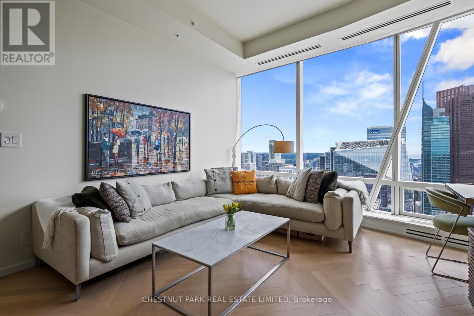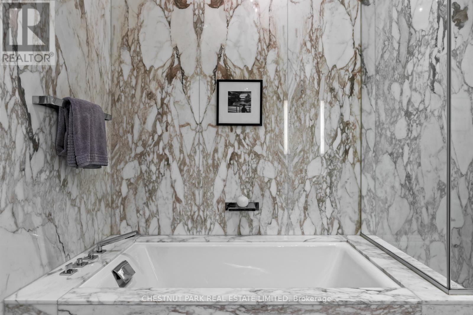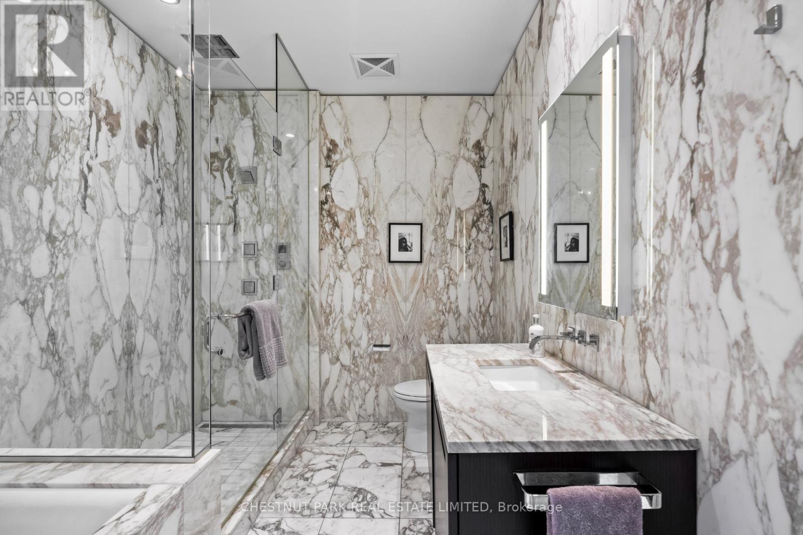 Suite 5707 is a distinguished one-bedroom Private Estate suite above the Shangri-La Toronto, where panoramic skyline and lake views shift effortlessly from sunlit horizons to a dazzling nighttime city glow. With 10-ft ceilings (only for floors 50 and higher), herringbone hardwood floors, and a Boffi Italian kitchen featuring Miele and Sub-Zero appliances, the home combines elegance and functionality. Motorized shades are featured throughout, while custom Poliform closets in both the foyer and bedroom add boutique-inspired refinement. The marble-clad four-piece ensuite is a spa-like retreat with a deep soaker tub, heated floors, and seven-head Kohler DTV digital shower. One parking stall with valet service and a large private locker room adjacent complete this unique offering. Residents enjoy access to world-class hotel amenities and services including 24-hour concierge and security, a fitness centre, indoor pool, sauna and steam rooms, and valet parking (available only to Private Estate floors) all in the heart of Toronto's Entertainment and Financial Districts. (id:4555)