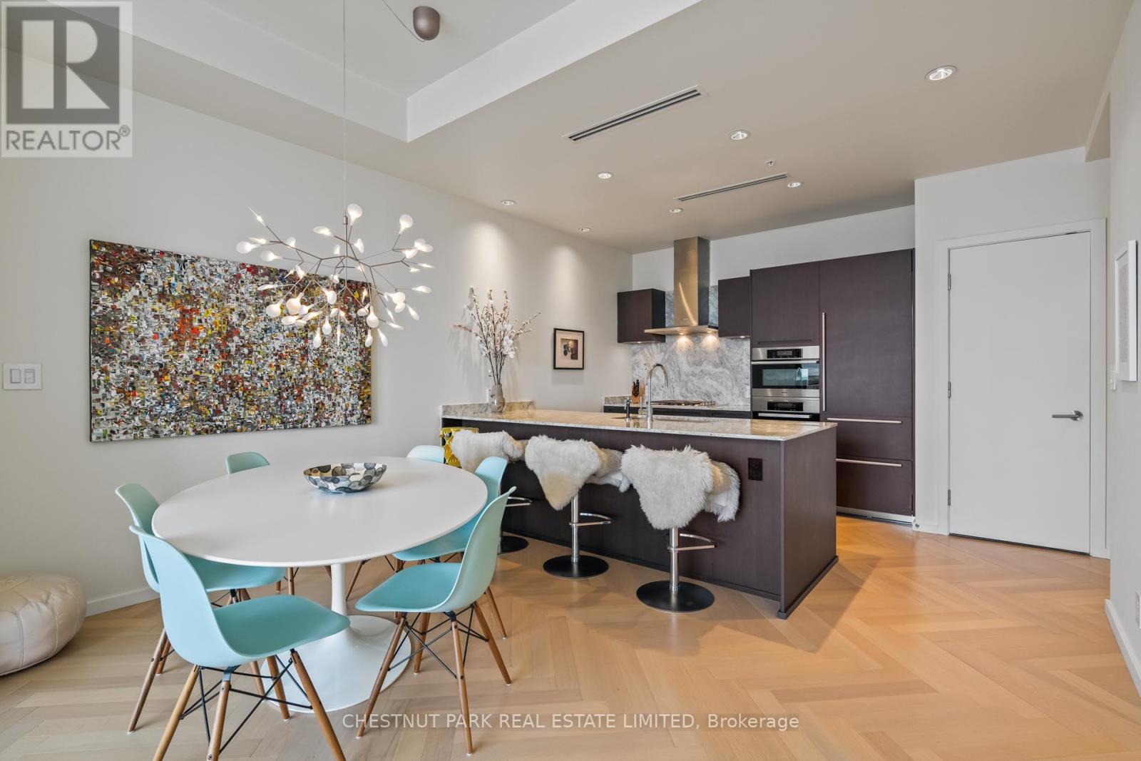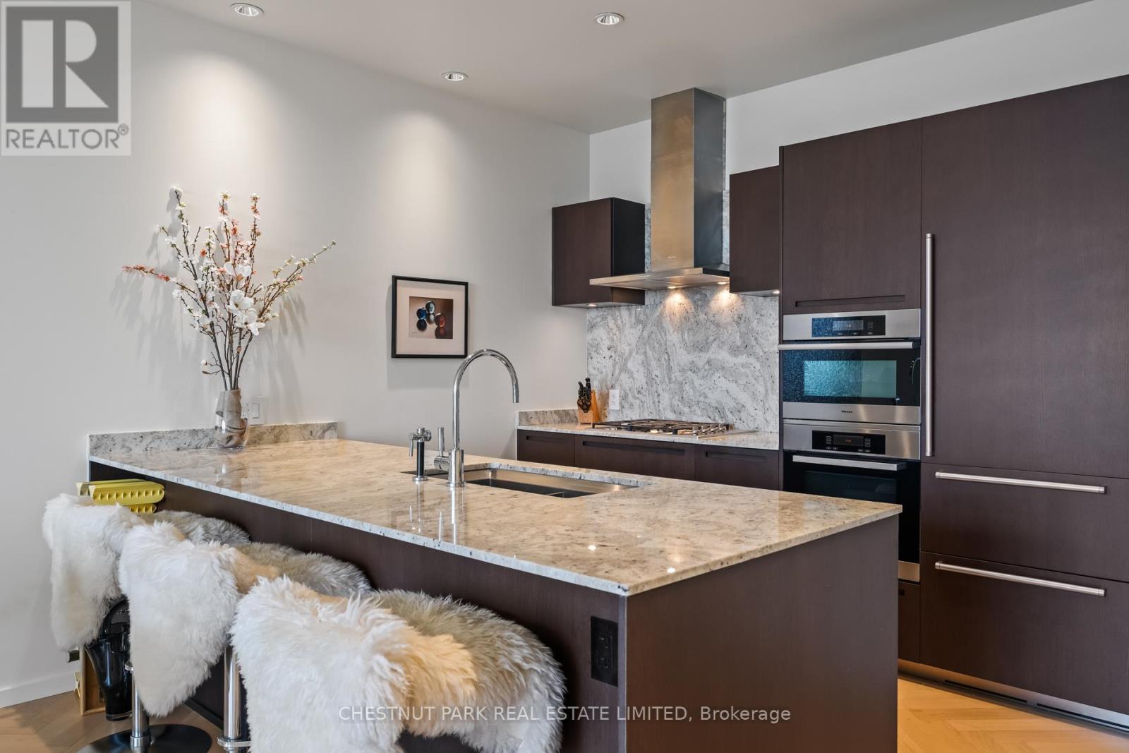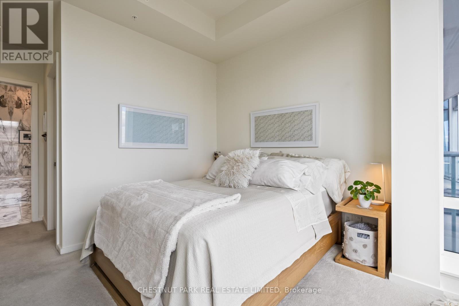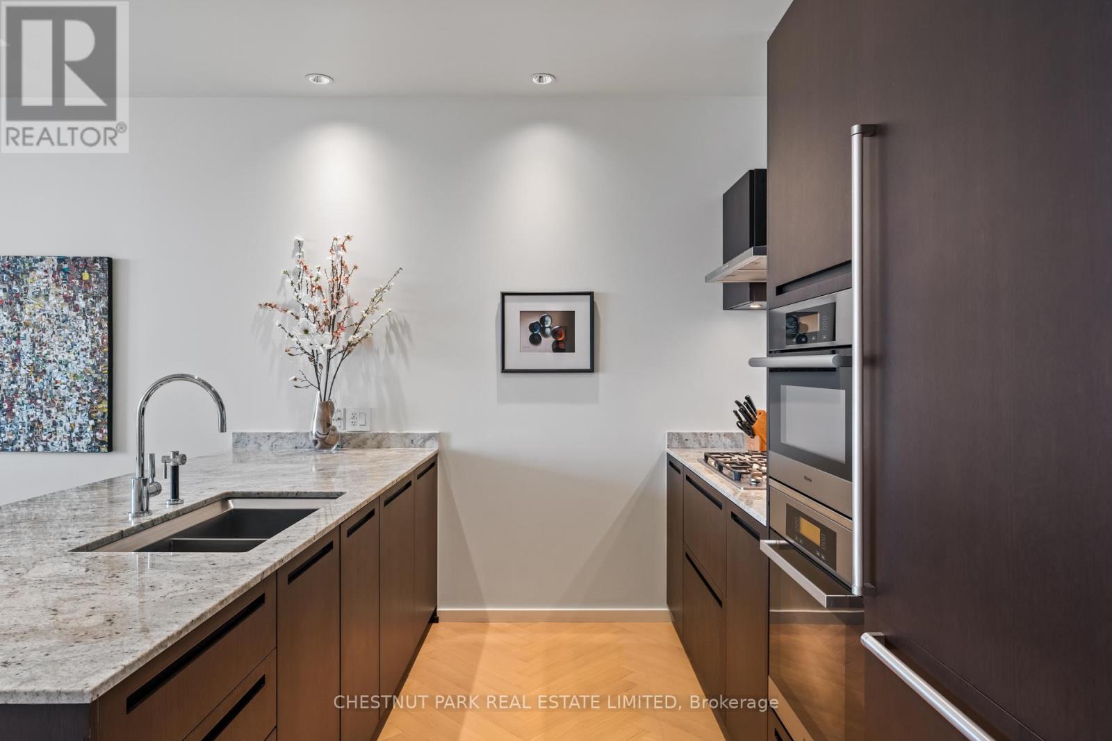 Suite 5707 is a distinguished one-bedroom Private Estate suite above the Shangri-La Toronto, where panoramic skyline and lake views shift effortlessly from sunlit horizons to a dazzling nighttime city glow. With 10-ft ceilings (only for floors 50 and higher), herringbone hardwood floors, and a Boffi Italian kitchen featuring Miele and Sub-Zero appliances, the home combines elegance and functionality. Motorized shades are featured throughout, while custom Poliform closets in both the foyer and bedroom add boutique-inspired refinement. The marble-clad four-piece ensuite is a spa-like retreat with a deep soaker tub, heated floors, and seven-head Kohler DTV digital shower. One parking stall with valet service and a large private locker room adjacent complete this unique offering. Residents enjoy access to world-class hotel amenities and services including 24-hour concierge and security, a fitness centre, indoor pool, sauna and steam rooms, and valet parking (available only to Private Estate floors) all in the heart of Toronto's Entertainment and Financial Districts. (id:4555)
