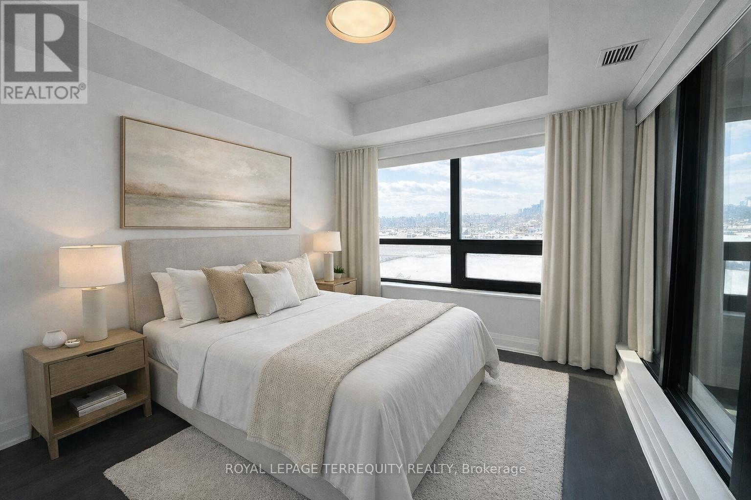 Welcome to The Residences of Upper Village, set in the heart of one of Toronto's most sought-after neighbourhoods. This newer, design-forward building offers a smart, stylish floorplan in a spacious 1-bedroom + den, 2 full bath suite. Flooded with natural light, the suite features a sunny west exposure and unobstructed skyline views through expansive windows. The layout is both functional and flexible, with generous living space and room for a breakfast bar or full dining setup. The primary bedroom is a standout, featuring extra-large windows on two sides and a sleek ensuite. Step out onto the large private balcony, perfect for al fresco dining or unwinding as the city moves below. Residents enjoy resort-style amenities including an indoor pool, steam room, private gym, games and party rooms, boardroom, dining space, outdoor entertainment areas with BBQs and fire pits, and 24-hour concierge service. Conveniently located just steps from shops, cafés, and restaurants-truly walk to everything. Set within a new master-planned community nestled in a lush enclave at Brentcliffe Rd & Eglinton Ave, this location offers exceptional value in one of the city's most desirable and well-connected pockets. Enjoy a Walk Score of 88, an upcoming LRT at your doorstep, and seamless access to the DVP, downtown, and uptown. (id:4555)