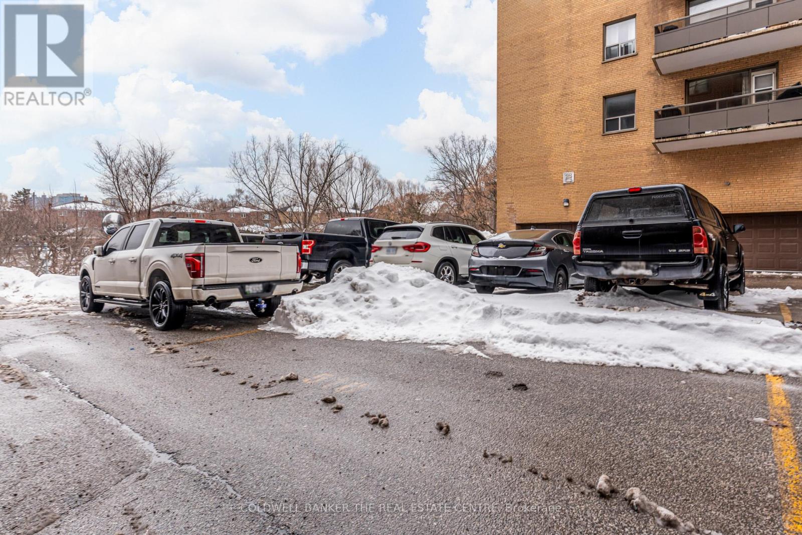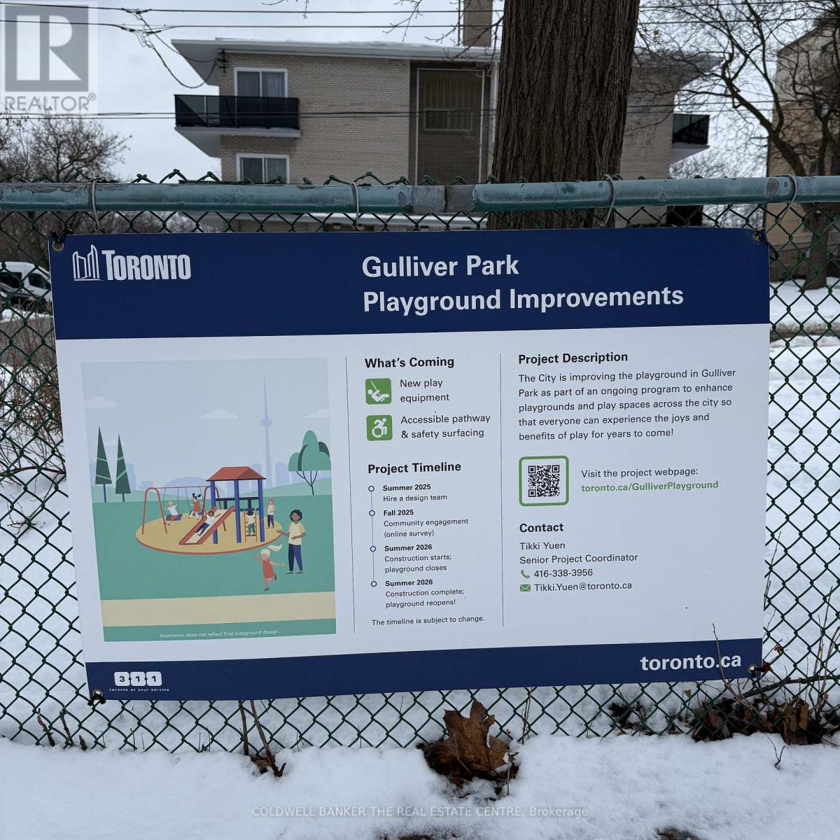 Welcome to the Park View Towers at 50 Gulliver! Fully renovated, spacious 715sqft 1-bedroom unit near the highly sought-after Eglinton West corridor! Move-in-ready unit features modern finishes throughout: granite countertops, ceramic backsplash, rough-in for dishwasher ready to go, newer laminate floors (no carpet!), smooth ceilings throughout and a beautifully updated bathroom to modern standards. Original dining area has been smartly converted into a den/office - perfect for working from home, studying, or simply use as dining space. Enjoy the convenience of in-suite laundry and the bonus of two parking spots (one garage spot with garage door opener + one surface spot), plus additional storage in garage for seasonal items like winter tires. Large (19'05"x4'07") East-facing balcony, great for entertaining. Spacious principal bedroom accommodates King size bed with side tables, features double mirrored closet, large window and blackout curtains. Located on easy-to-access second floor (no elevator needed). Building offers maximum safety with 24-hour surveillance. Additional coin laundry room on main floor. Maintenance fees include heat & water. TTC accessibility at your doorstep, close to major highways, shops, parks, and schools - everything you need, outside your door. Affordable, stylish, and turn-key - a perfect fit for first-time buyers, down-sizers, or savvy investors. (id:4555)