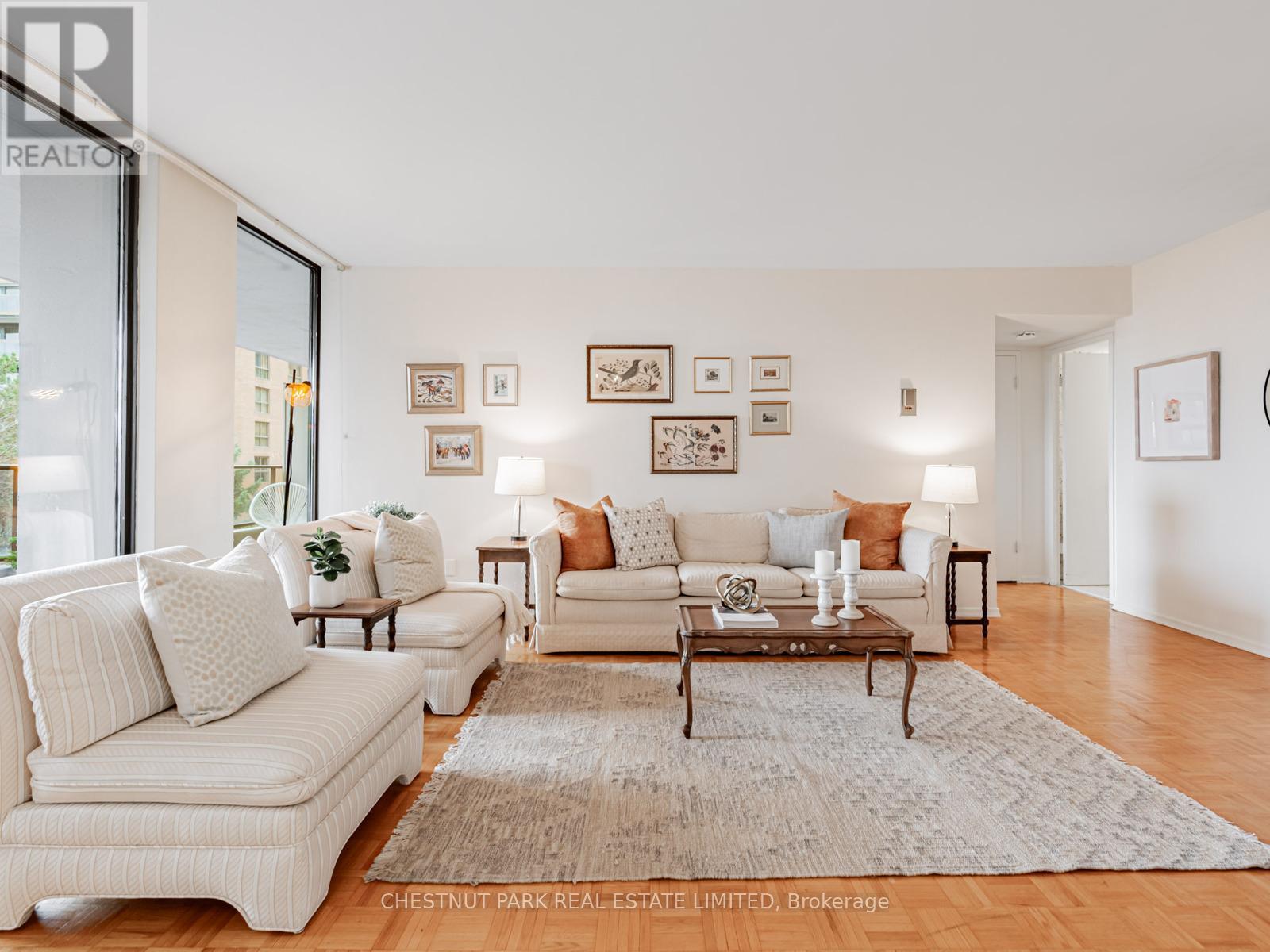 Stunning south views over the city skyline. Floor-to-ceiling windows overlooking the pool, Balfour Park, and the city skyline enhance the views from every room. Approximately 718 sq ft, plus a 210 sq ft balcony. This beautifully maintained 1-bedroom, 1-bathroom suite is in perfectly kept original condition. Located in an oasis of calm with heated pool, sauna, exercise rooms and 24/7 consierge. It is steps away from the shops, subway, library, services, cappuccino bars, and restaurants at Yonge and st Clair. This building is perfectly situated in the city, offering the best of urban living in a park-like setting. The friendly, welcoming community is another asset of this first-class co-op. Book clubs, tai chi, knitting groups, coffee get-togethers, movie nights, hobby room, men's club, walking groups, and more. Located close to the gardens and walking paths of Balfour Park, a morning or evening stroll is easily accessible. Generous visitor parking, concierge, 24/7 security, and management on site are further benefits of the Avoca Apartments. All-inclusive maintenance fees include property taxes, hydro, heat, A/C, cable TV, internet, common elements, and building insurance. There are no pets, rentals, or ensuite laundry allowed. (id:4555)