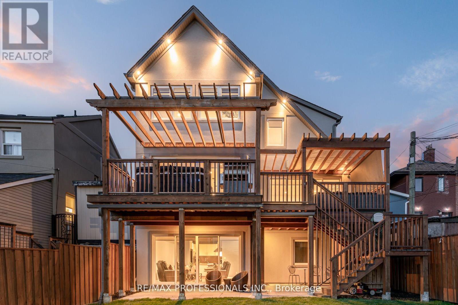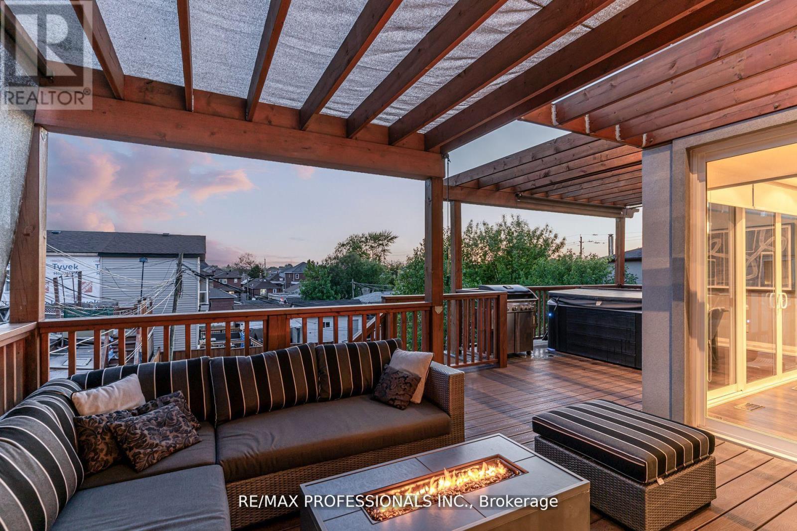 Welcome to this contemporary, light-filled home offering nearly 4,000 SF of finished living space in a neighbourhood experiencing exciting transformation. Designed for modern living, this home features 4+2 bedrooms and 4 full bathrooms, offering comfort, flexibility, and long-term functionality for families, professionals, and multi-generational living. The main floor showcases a bright open-concept layout with 9ft ceilings, hardwood floors, and a chef's kitchen anchored by an oversized island-ideal for everyday living and entertaining. Double patio doors extend the living and dining areas onto a spacious composite deck, creating seamless indoor-outdoor flow. The private backyard retreat includes multiple walkouts, a dedicated hot tub zone, separate seating area, five roll-down privacy screens, and a ceiling irrigation system beneath the deck that efficiently waters the landscaped garden. A main-floor office (or potential fifth bedroom) sits beside a full bathroom, perfect for guests or extended family. Upstairs, the oversized primary suite features a spa-like ensuite and custom walk-through closet, while all upper bedrooms offer walk-in closets and large windows for excellent natural light. The walk-out lower level includes a fully self-contained 2-bedroom suite with private entrance, patio, laundry, and lock-off zones-ideal for extended family or a high-demand rental ($2,500/month potential) to help offset monthly costs. Additional features include CAT5E wiring, 200-amp service, Nest thermostat, CCTV, built-in surround sound, backwater valve, private drive, and single-car garage with storage. Located approximately a 15-minute walk to both Keele and Caledonia stations on the newly opened Line 5 Eglinton LRT, this area now benefits from fast, mostly underground transit and city-led community investment. Minutes to downtown, Yorkdale, the airport, The Junction, and Stockyards-this home delivers space, smart upgrades, transit connectivity, and strong long-term value. (id:4555)