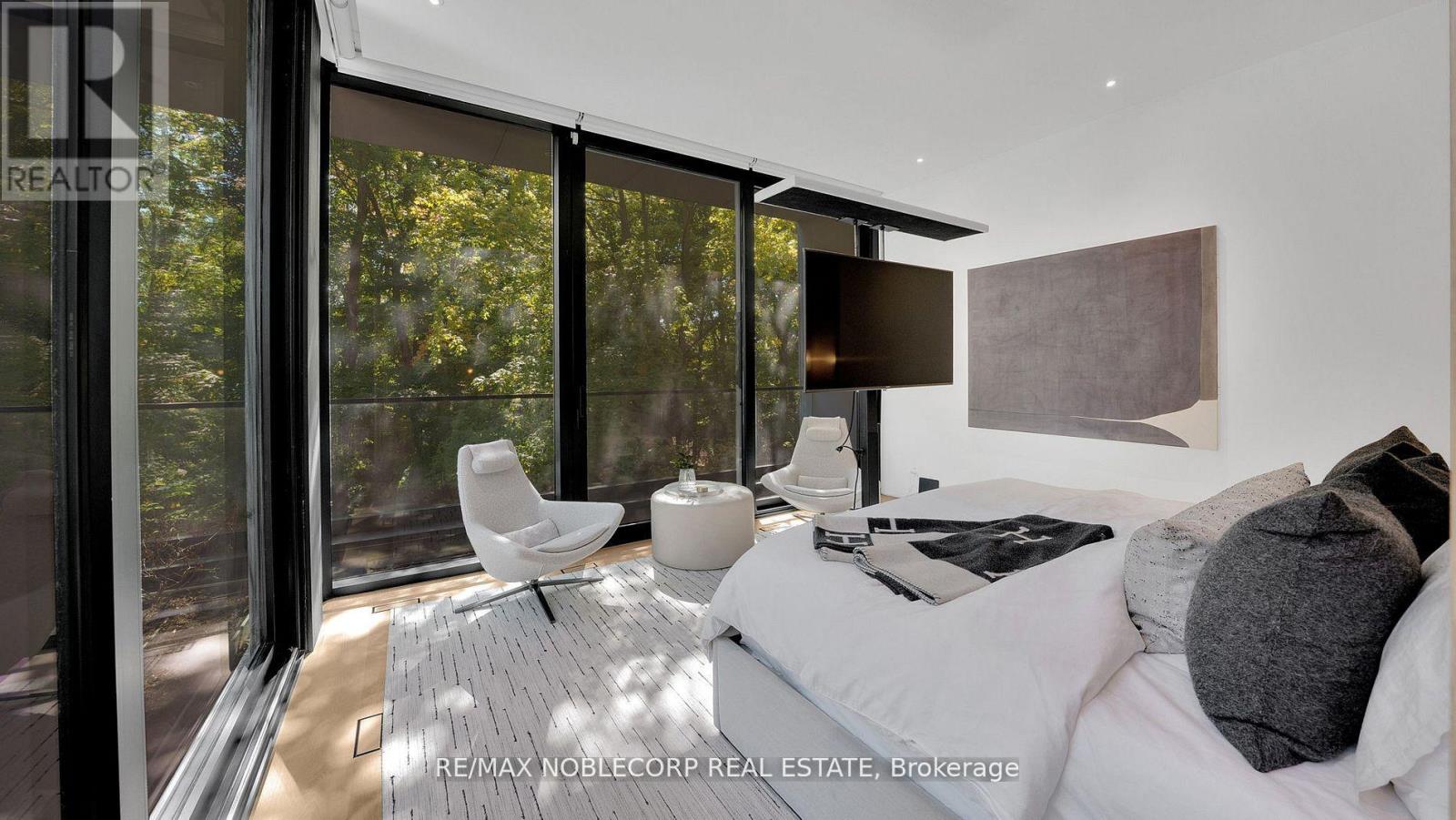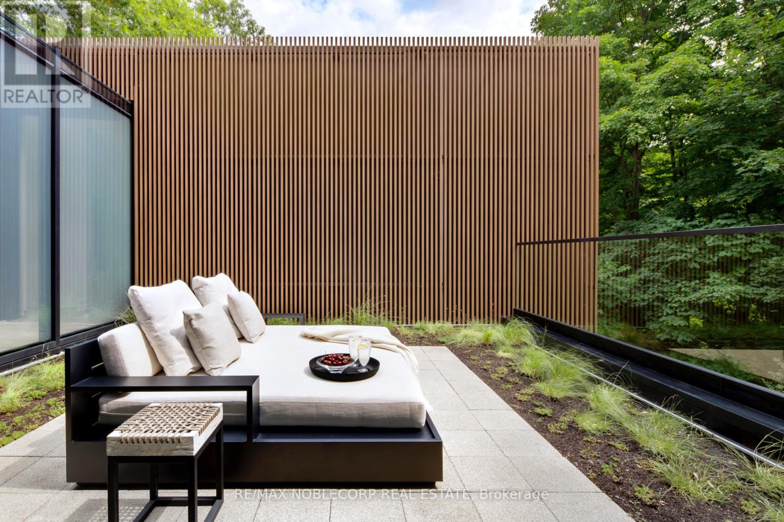 Inspired by the precision and versatility of a Swiss Army knife, this internationally award-winning, architecturally significant residence offers over 6,000 sq.ft. of luxury living on a private, forested ravine cul-de-sac. Designed with dynamic multi-level functionality, its dual wings are connected by a sleek glass bridge and clad in a striking blend of reflective titanium, simulated walnut, and rich black Palisade panels. A descending entrance introduces the main living area where a panoramic fireplace anchors open-concept spaces extending to the outdoors through a dramatic, folding glass hangar door. Every detail is engineered for seamless living and entertaining from the indoor/outdoor dining areas, hidden wine closet, and wet bar to the amenity-rich lower level featuring a full kitchen, gym, and theatre. The primary suite is a true retreat with his-and-hers closets, a spa-inspired ensuite, and a private balcony overlooking the ravine. Outside, a tiered infinity pool, integrated outdoor kitchen, and fire table are enveloped by nature, creating a breathtaking, resort-like oasis. (id:4555)