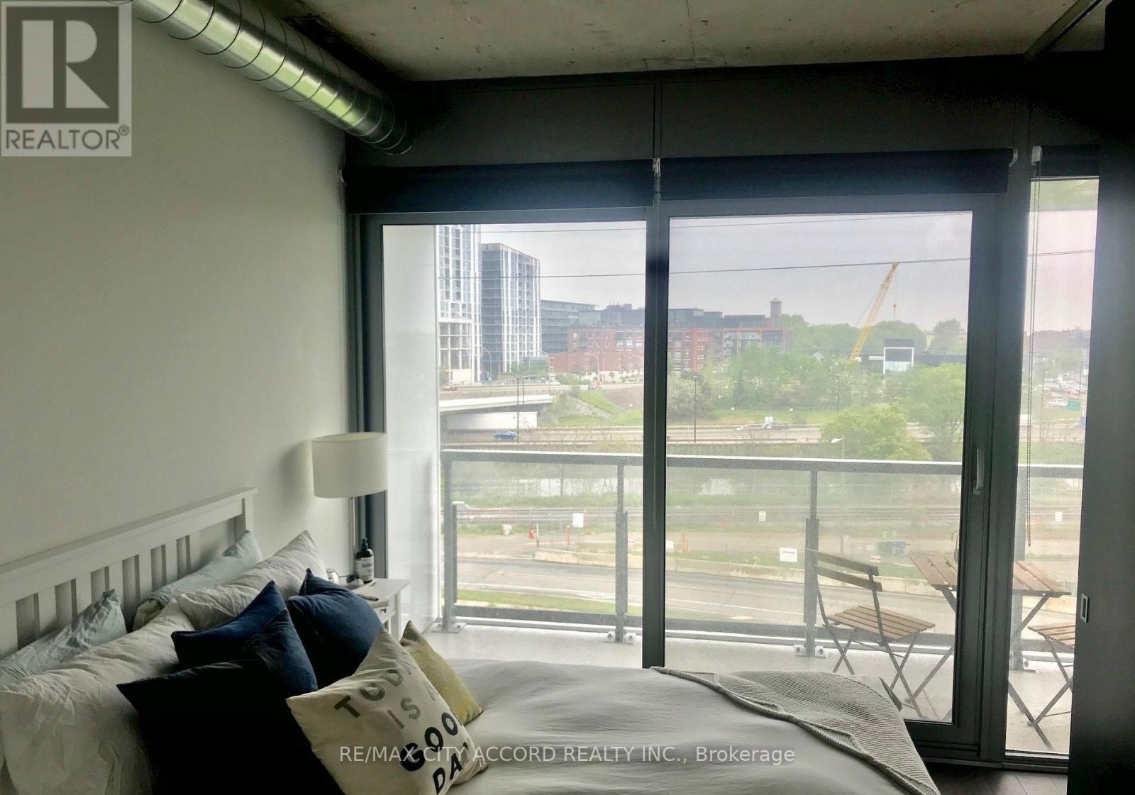 Experience the best of urban living in this stylish and contemporary one-bedroom condo. With nearly 550 square feet of thoughtfully designed living space, this home also features a spacious balcony offering beautiful northeast views and lots of natural light. The condo boasts laminate flooring throughout, a modern kitchen with built-in appliances, quartz countertop, and 9-foot ceilings with exposed concrete accents that add a touch of industrial elegance. A bicycle rack is included for added convenience, making it ideal for those who love exploring the city on two wheels. Situated in a prime location, you'll be just steps away from fantastic restaurants, TTC, major highways, hospitals, shopping, and more. This is the perfect place to enjoy a vibrant urban lifestyle. A must-see! (id:4555)