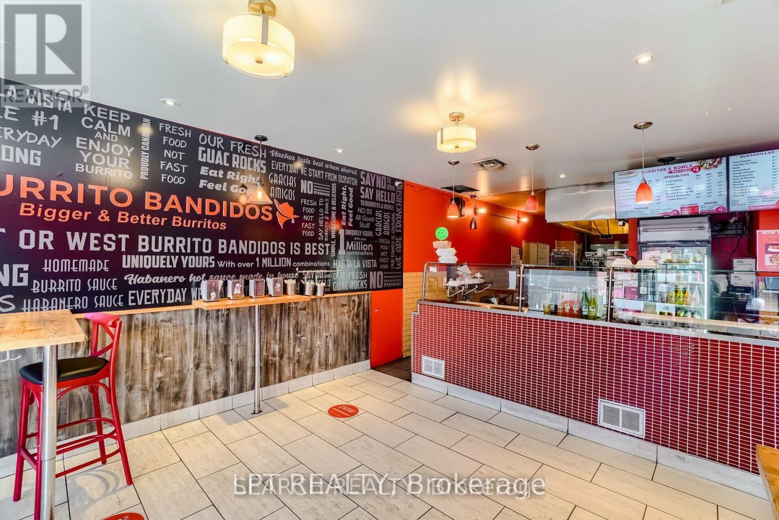 Restaurant owner/partnership opportunity. Great restaurant location with low affordable rent of $3350 monthly in prime Toronto location with several condo developments nearby! Partnership includes existing established Burrito Bandidos concept plus introduce your own concept to further increase sales. 1058 Square feet plus 1500 square feet basement included at no additional cost, providing ample potential to add another cuisine. Experienced restaurant operator with $ 50K cash to invest will be considered. Well-established business operating successfully for more than 13 years. (id:4555)