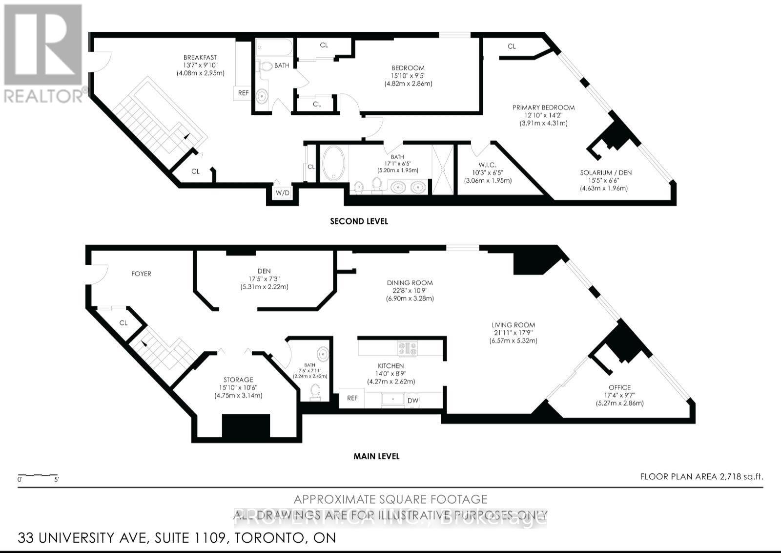 Rarely offered two storey living in the Financial District with 2,718 sq ft of true home scale and direct PATH connectivity. This is downtown living with breathing room: two bedrooms, three bathrooms, and three separate dens designed to adapt to real life, whether that's hybrid work, guests, gym, or multiple lounge zones. Dual entrances elevate privacy and function, creating genuine separation across two full levels. Oversized principal rooms deliver the volume buyers chase but almost never find downtown, with abundant natural light throughout. The primary suite features a walk in closet, spa inspired ensuite, and an adjoining solarium with northwest views. Two owned parking spaces and a large ensuite locker add everyday convenience. Maintenance fees are all inclusive, covering major utilities and parking for one predictable monthly cost. Concierge, fitness centre, rooftop terrace with BBQs, and entertaining spaces. Steps to Union Station, St Andrew Station, Bay Street, dining, and culture. A unique offering where space, privacy, and connectivity align. (id:4555)