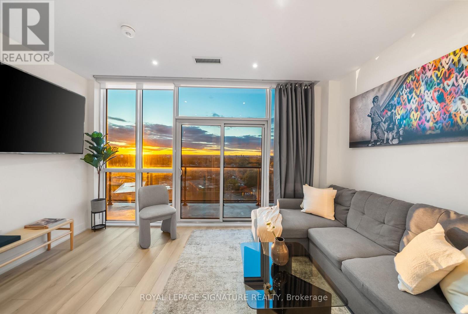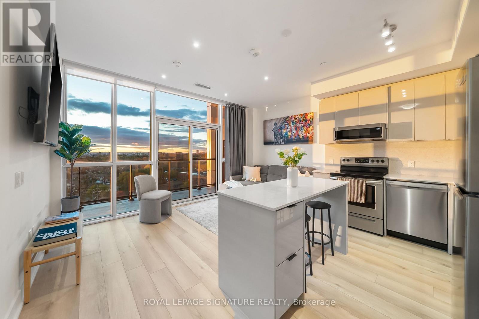 Welcome to 60 George Butchart Ave, where boutique living meets modern elegance in the heart of Toronto's vibrant Downsview Park community. This beautifully designed 1-bedroom + den, 1-bathroom suite offers a functional open-concept layout with a sleek eat-in kitchen island, ample storage throughout, generous sized primary bedroom, and floor-to-ceiling windows that flood the space with natural light. The spacious den is perfect for a home office or creative nook, while top-of-the-line finishes and modern touches elevate every corner of this stylish home. The true showstopper is the expansive 163 sq ft private terrace with sweeping residential and city views - your front-row seat to stunning sunsets and a peaceful escape from the city buzz. Set in a contemporary boutique-style building, residents enjoy access to premium amenities including a fitness centre, co-working lounge, party room, rooftop patio, and more. Just steps to parks, trails, TTC & GO transit, Yorkdale Mall, and local cafes, this condo offers the perfect balance of lifestyle, luxury, and location. (id:4555)