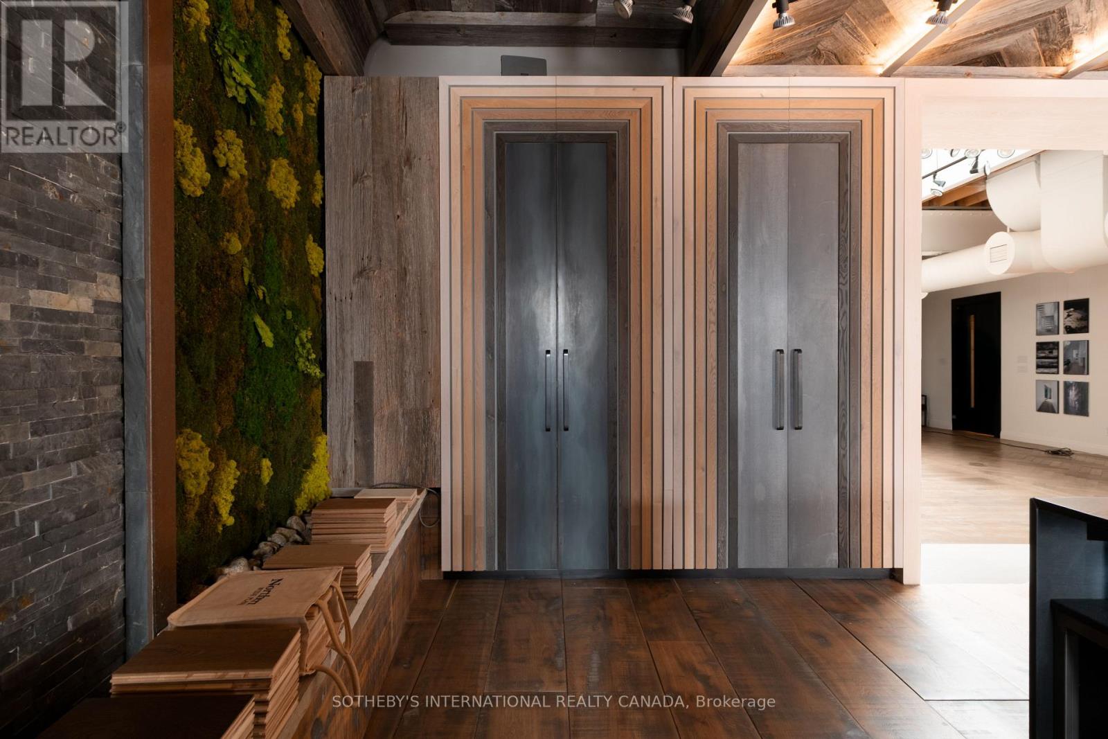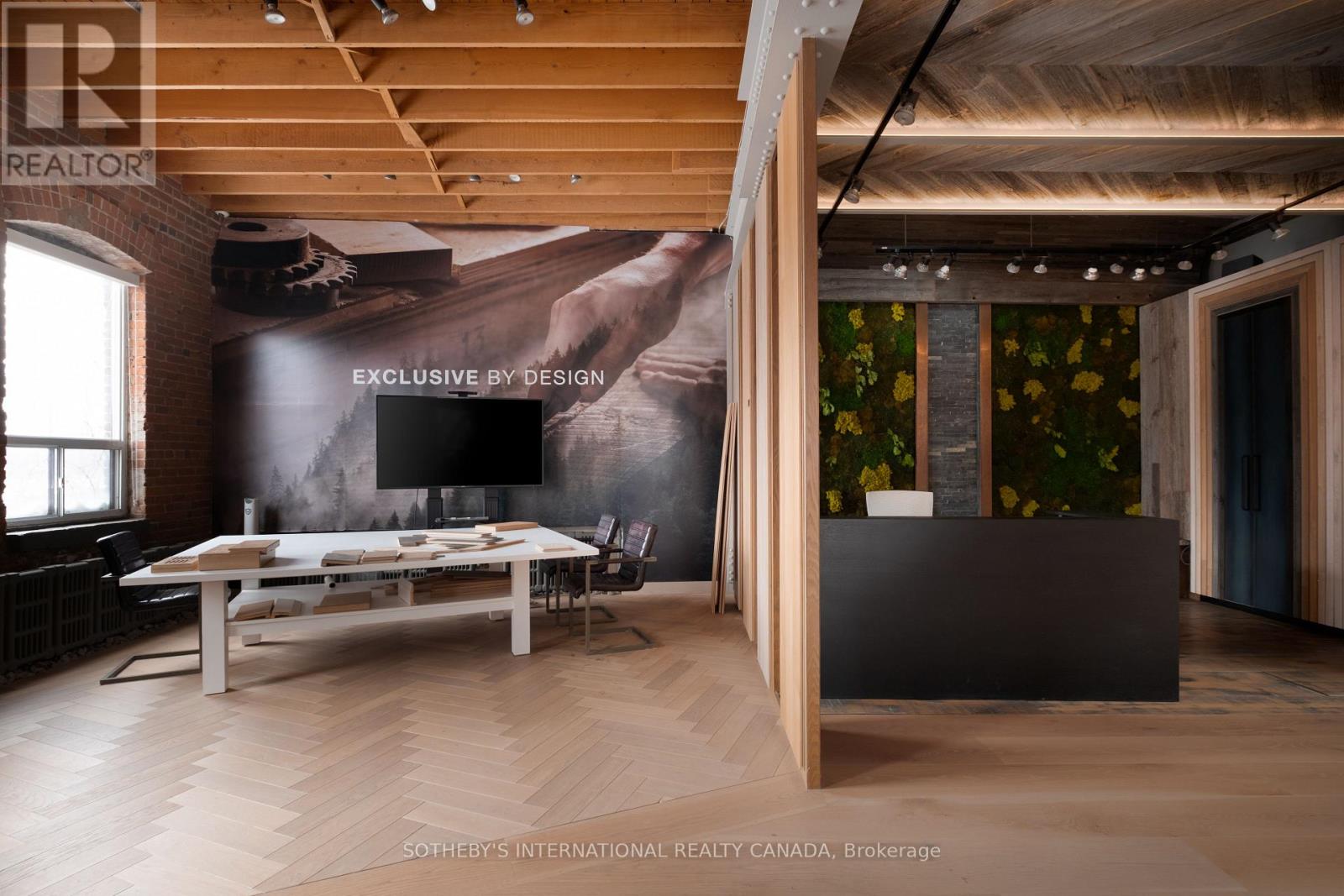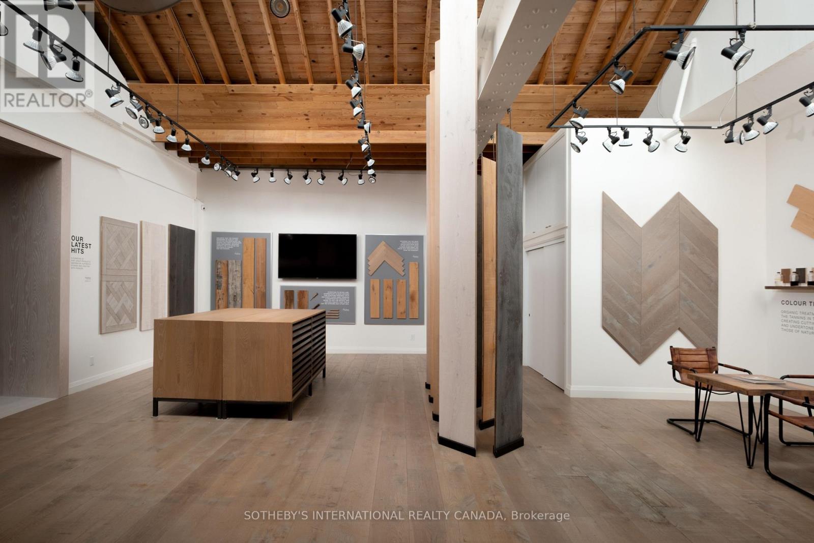 Set within a brick and beam Georgian-style industrial building originally constructed in approximately 1930 as the head office of Purity Flour Mills, 287 Macpherson Avenue is a boutique office building shaped by heritage proportion, material presence and architectural resonance, adapted for contemporary use. Offering approximately 3,301 square feet of distinctive, studio-scale workspace arranged across a main level and mezzanine, Suite 303 is currently configured as a showroom and working studio. Exposed brick, custom wide-plank wood flooring, and a measured interplay between structure and light establish a calm, grounded atmosphere. Large south-facing, industrial-scale windows and overhead skylights bring natural light throughout the space. A sculptural staircase connects the main floor to the mezzanine above, where the pitched roofline, exposed joists and skylight glazing introduce a quieter, more intimate spatial rhythm, while remaining visually connected to the space below. This intimate 271 square foot upper level is ideal as a private office or focused work area. The layout offers adaptability, whether used as an open-format studio, divided into complementary workspaces, or demised to a smaller footprint, while maintaining a cohesive architectural presence throughout. Defined by volume, materiality, and intent, this space is well-suited to design-led practices, architecture and interiors firms, material or product showrooms, and principal-led offices for practices that see workspace as an integral reflection of how they operate and engage clients. (id:4555)