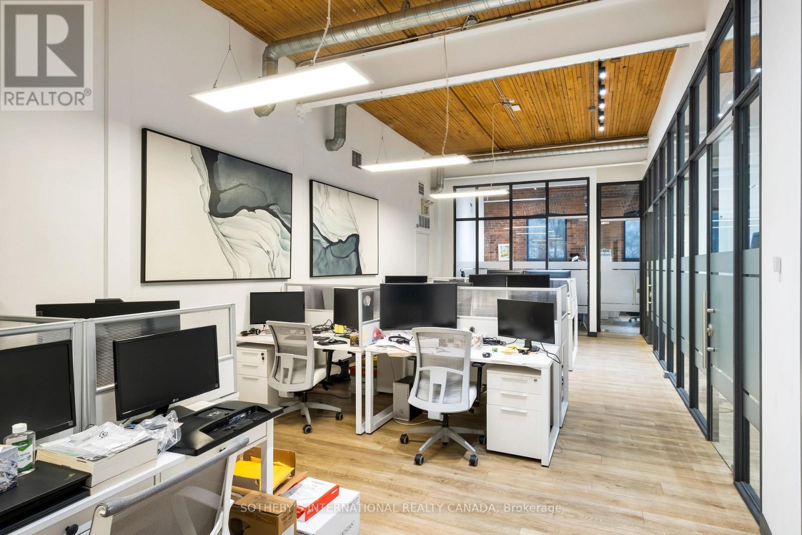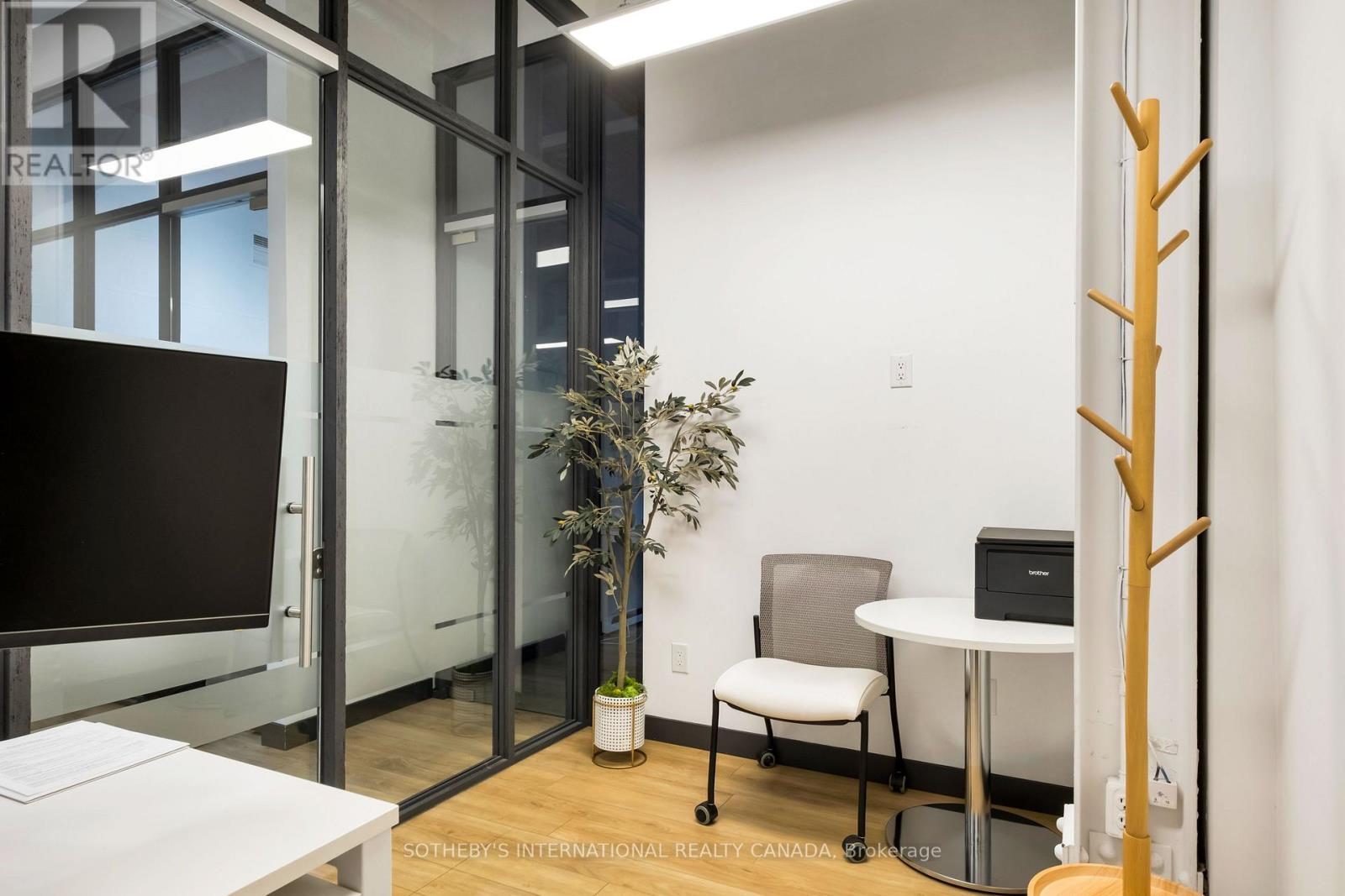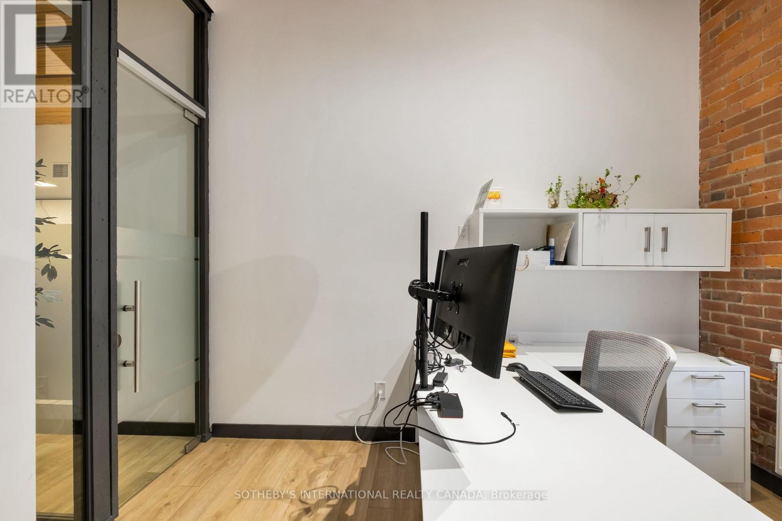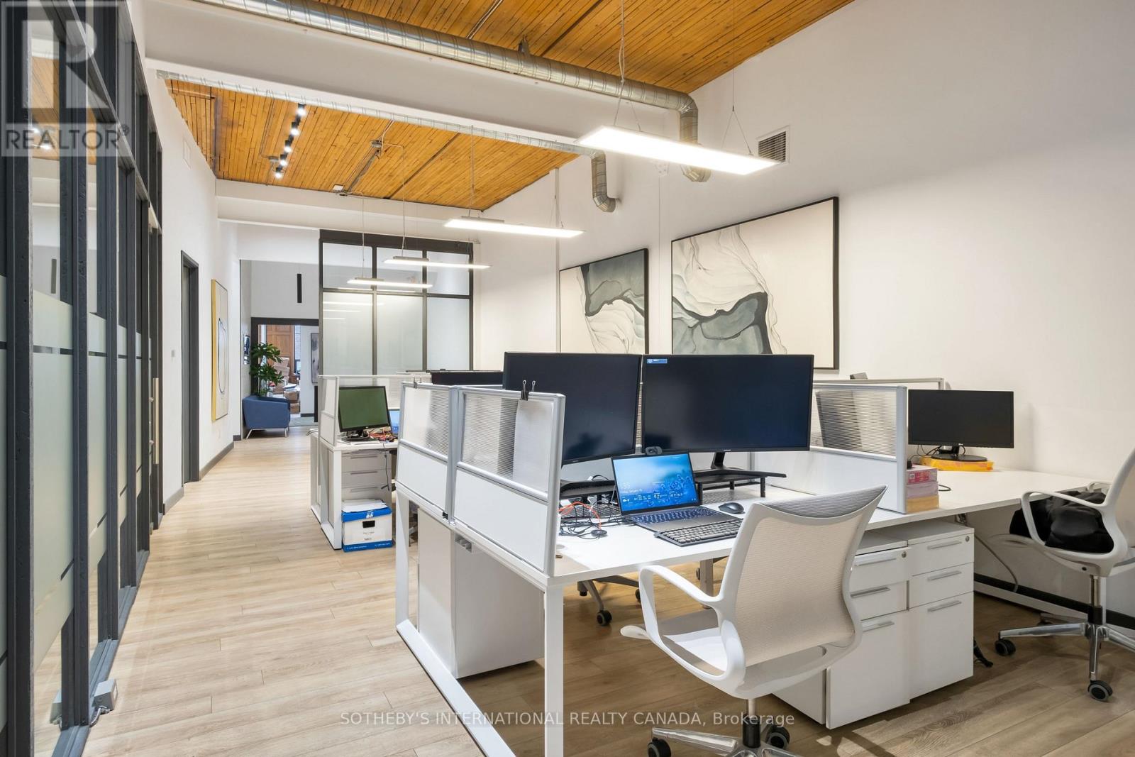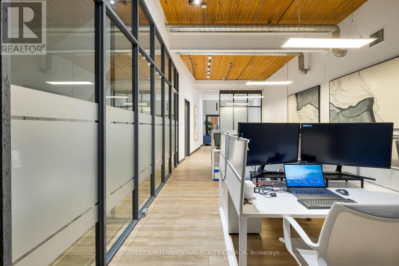 Set within a brick and beam Georgian-style industrial building dating to approximately 1930, originally home to the head office of Purity Flour Mills, 287 Macpherson Avenue offers a boutique office environment shaped by heritage proportion and material presence, adapted for contemporary use. Suite 202 offers approximately 2,260 square feet of thoughtfully configured office space, balancing historic character with a modern, professional fit-out. The suite is organized around a series of private offices and open work areas, designed to support focused work, collaboration, and day-to-day operations within a composed and efficient layout. A defining feature of the suite is the oak-panelled boardroom, where original detailing and warm wood tones establish a sense of continuity and permanence. The room provides a composed setting for meetings and client work, balancing the suite's modern glass-partitioned offices with a more traditional material expression. Glass partitions define the suite's five private offices while maintaining acoustic separation and privacy. An open-plan working area supports collaborative, team-based work, complemented by a kitchenette and two in-suite washrooms that meet the practical needs of a growing or established practice. Well suited to professional services firms, advisory practices, and principal-led offices seeking a grounded, highly functional workspace with architectural character. This space offers a calm, structured environment where heritage elements and modern planning sit in quiet alignment. (id:4555)