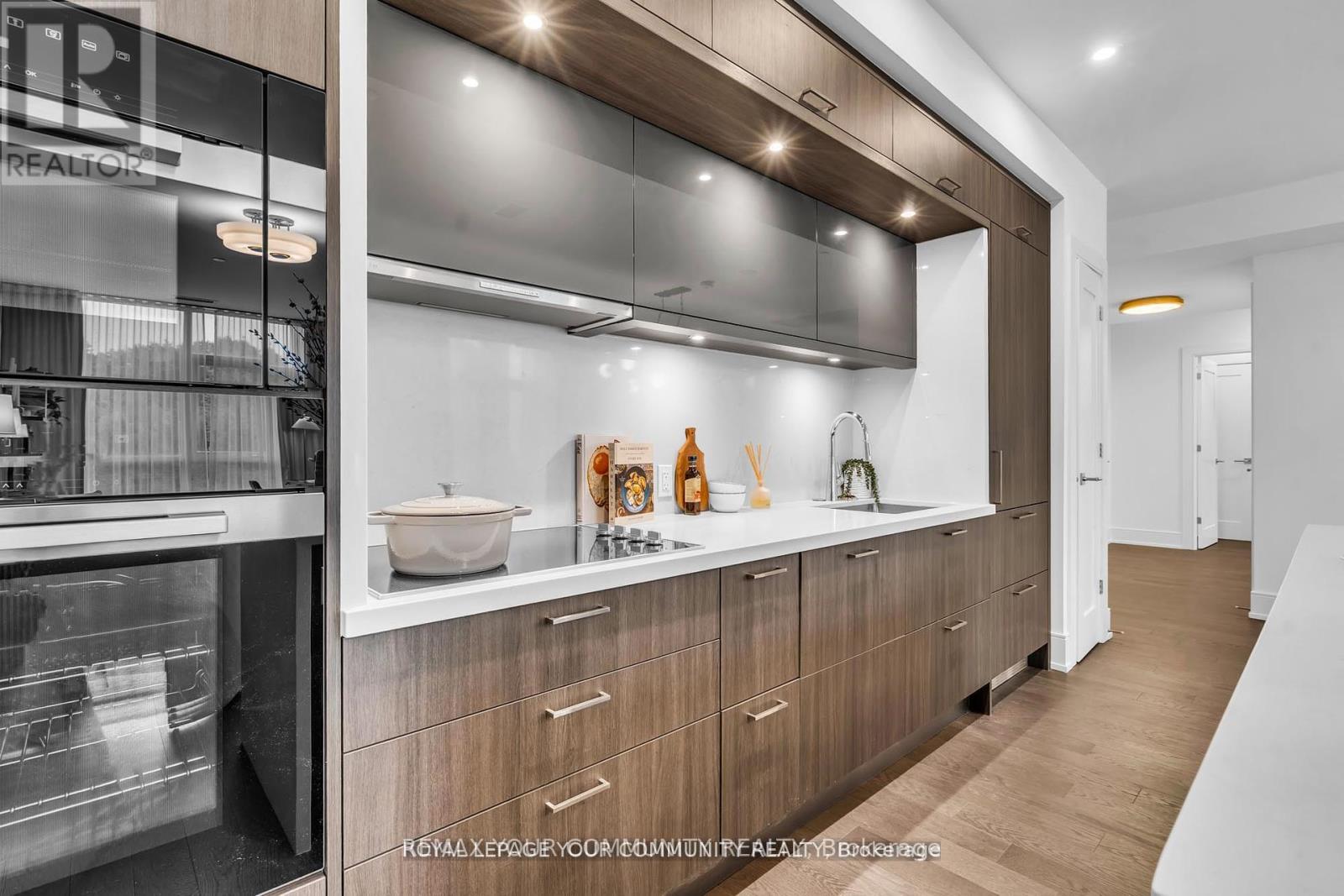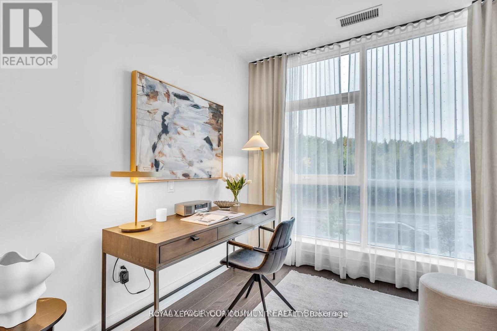 Welcome to Suite 101 at Chateau Auberge on the Park, where classic elegance blends seamlessly with modern design. This beautifully appointed 2-bedroom plus den, 2-bath residence enjoys direct park-facing views, creating a serene, nature-filled backdrop throughout the home. Inside, thoughtful upgrades define the space, including 9-foot smooth ceilings, engineered hardwood flooring, enhanced lighting, and premium California Closets organizers-striking the perfect balance between luxury and practicality. The open-concept living and dining area extends effortlessly to a private balcony, an ideal setting for morning coffee or unwinding in the evening while overlooking lush greenery. The chef-inspired kitchen is refined with Tridel's 400 Series upgrades, featuring fully integrated Miele appliances, custom cabinetry, stone countertops, and a sleek slab backsplash-perfect for both everyday living and entertaining. Both bedrooms are designed for comfort and functionality, complete with custom closet organizers. The primary suite offers a spa-like ensuite with a frameless glass shower, while the versatile den can easily serve as a home office or guest space. Additional features include one parking space, one locker, in-suite laundry, and a smart home system with digital door lock and wall-mounted control pad-enhancing convenience and modem living. Residents enjoy an exceptional collection of amenities, including 24-hour concierge service, a fully equipped fitness centre, indoor pool, party lounge, outdoor terrace with BBQs, guest suites, and secure parcel lockers. Ideally located just steps from Sunnybrook Park, close to top-rated schools, the upcoming Eglinton Crosstown LRT, and with quick access to major highways and downtown Toronto, this residence offers a rare blend of nature, luxury, and connectivity. Suite 101 is an exceptional opportunity to experience refined living at Chateau Auberge on the Park. (id:4555)