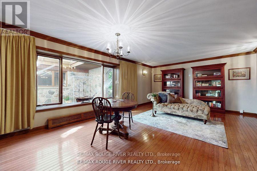 TORONTO WATERFRONT ESTATE: Rare Opportunity to own Waterfront in Toronto...'Muskoka' Stone Architecturally Unique Home on nearly 1/2 ACRE Waterfront Lot (80' x 254') in a Prestigious Enclave of Luxurious Million $$$ Homes by the Lake. Do you love land, woods & water? Enjoy private river access to launch your Kayak or Paddleboard from your own backyard...just a short paddle to the Rouge Beach & Lake Ontario. Offering 5550 Sq. Ft. of Living Space across 3 levels, featuring 5 bedrooms, 5 bathrooms with walk-outs on every level to huge terraces, balconies & gardens with breathtaking 4-season panoramic views of the river valley, woods, water, Rouge National Urban Park and deer sightings! Rich in character with 'Muskoka' stone fireplace, oak paneling and hardwood, granite courtyard, solarium & more! And this Magnificent home has exceptional versatility for family, multi-generational living, or income possibilities. In addition, this West Rouge Lakeside Community also offers swimming, fishing, hiking, biking by the beach and waterfront trails along the lake. Located near excellent schools, restaurants, GO train, TTC buses & #401 for easy commuting. Enjoy living life here...a private, serene, 'Muskoka-like' sanctuary by the lake...No cottage required! (id:4555)