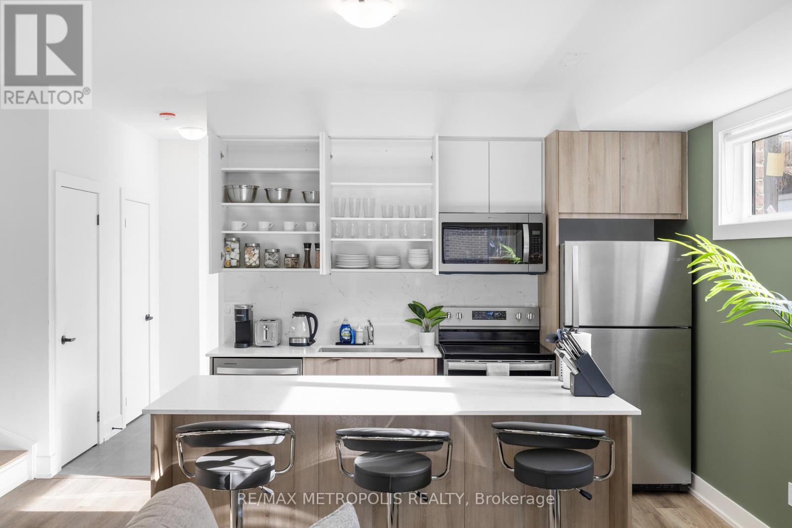 A fully-furnished, bright and modern laneway home in the heart of Roncesvalles. This well-laid-out 3-bedroom, 3-bathroom unit offers 1,274 sq ft of living space over two levels.The main floor features an open-concept living and dining area with laminate flooring, connected to a modern kitchen with stainless steel appliances, a centre island, and backsplash. Ensuite laundry is included.All three bedrooms are located on the second floor for added privacy. The primary bedroom features a walk-in closet and 3-piece ensuite. A second 3-piece bathroom serves the remaining bedrooms, with an additional 3-piece bathroom on the main floor.The unit includes one parking space. Located steps from Roncesvalles shops, cafés, and restaurants, with easy access to TTC, Bloor GO Station, Dufferin Mall, High Park, grocery stores, and specialty markets. Short-term rental options available. (id:4555)
