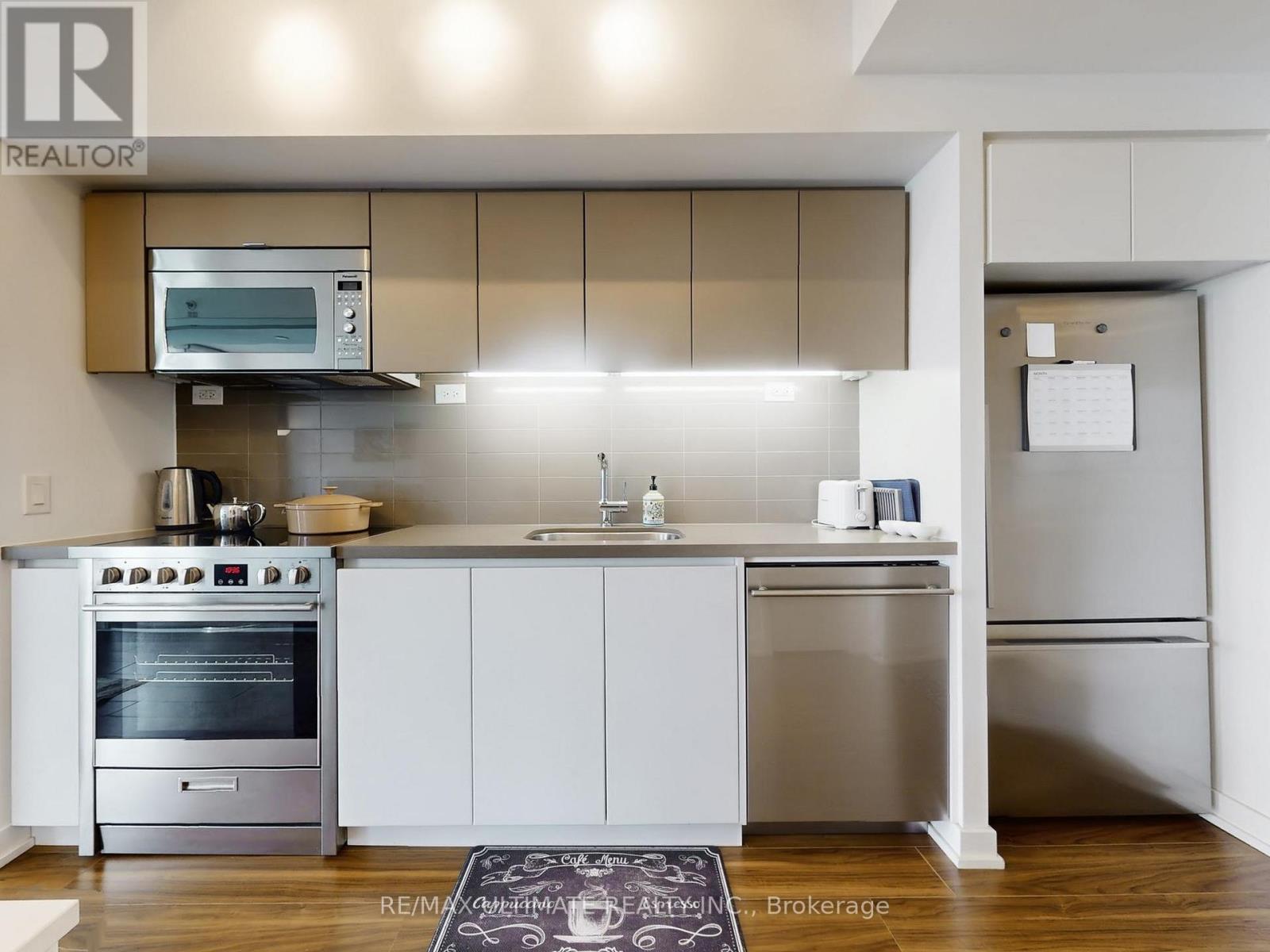 This fully furnished one-bedroom suite offers a thoughtfully designed layout that maximizes space while being filled with natural light. Floor-to-ceiling windows and a north-facing Juliette balcony bring in fresh air and unobstructed city views. Sliding glass partition walls add flexibility to the space, open them to create a more expansive living area or close them for a comfortable and private bedroom. The modern kitchen is finished with high-end stainless steel appliances, under-cabinet lighting, a contemporary backsplash, and sleek, streamlined cabinetry. The suite also includes a convenient storage locker for added functionality. Residents enjoy an impressive range of amenities, including an indoor pool, sauna, fully equipped fitness centre, theatre room, party space, rooftop deck with hot tub, guest suites, and 24-hour concierge service. With Canoe Landing Park just outside your door and the TTC, Sobeys, Rogers Centre, CN Tower, waterfront trails, and the Financial and Entertainment Districts all within easy reach, this location offers true downtown living with quick access to the Gardiner, DVP, and QEW. (id:4555)