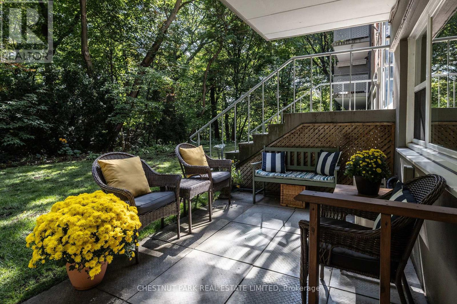 Suite 502 at 21 Dale Avenue is a rare three-bedroom, two-bath residence in coveted Kensington Apartments, a welcoming and distinguished co-op community in the heart of South Rosedale. Offering ground-floor convenience in one of the quietest areas of the building, this suite enjoys east-facing ravine views complemented by southern exposure. Bright, beautifully scaled rooms and open-concept living and dining areas deliver the ease and flow of a traditional home. The layout accommodates full-size furnishings effortlessly, making it an ideal choice for down-sizers seeking space without compromise. All three bedrooms are generously sized, with ample closet space and windows that draw in abundant natural light. The third bedroom presently opens to the living room, offering flexibility and the option to close it off again. One of the most exceptional features of this suite is the large private patio, which offers the feel of a backyard. Perfect for entertaining, morning coffee with a view of the trees, or giving pets room to roam, it strengthens the home's connection to nature and the surrounding ravine landscape. Residents enjoy an impressive array of amenities, including a 24-hour concierge, both indoor and outdoor pools, an exercise room, a well-curated library and visitor parking. The expansive grounds are spectacular, bordered by breathtaking ravines and beautifully manicured gardens. Additional highlights include a large exclusive-use storage locker, the option to rent indoor or outdoor parking, and maintenance fees that cover property taxes, cable, and internet. BBQs are permitted on the patio, and the building is notably pet-friendly. Situated in a residential enclave known for its character homes, Suite 502 offers the comfort of a home, the ease of co-op living, and the serenity of a tree-lined ravine-side retreat. Plus, the building is just a short walk to Castle Frank subway station and offers quick access to Bloor Street, the Danforth, Yorkville, and the DVP. (id:4555)