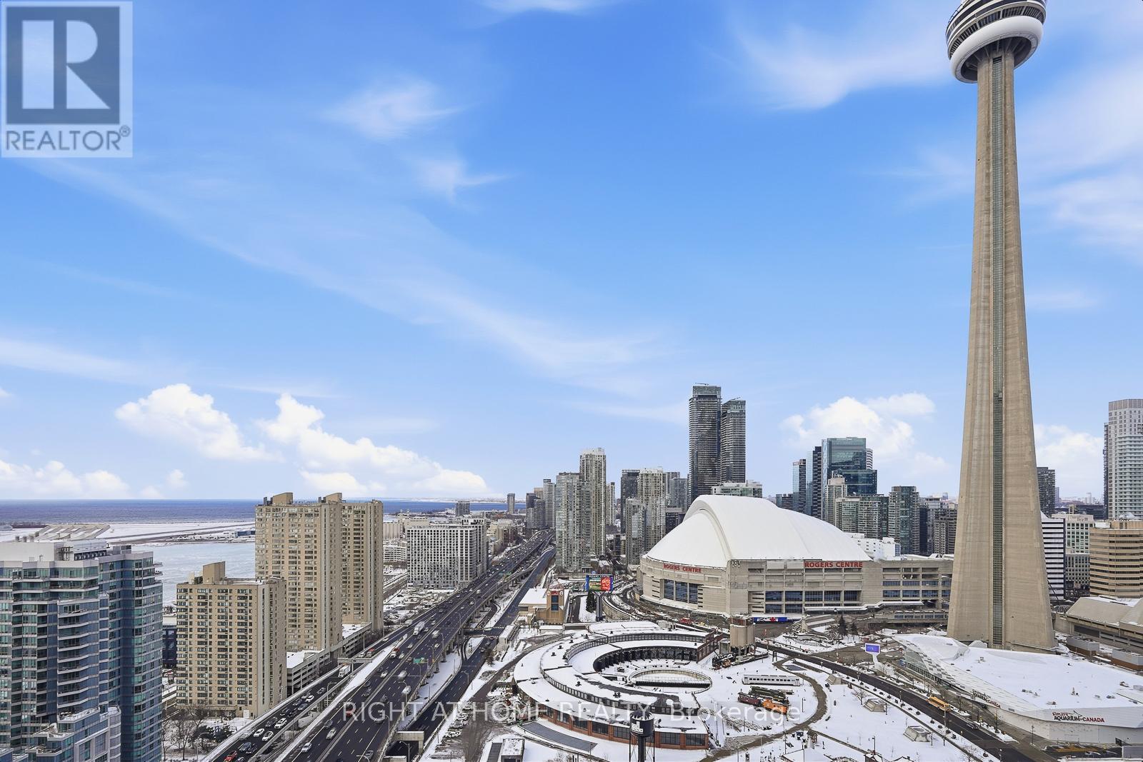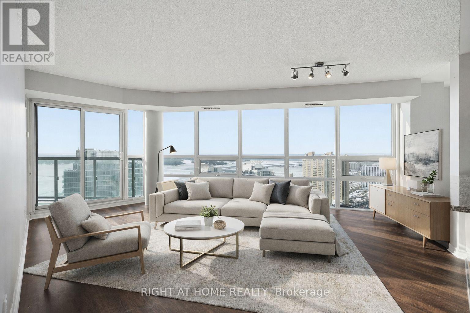 Perched high on the 38th floor, this exceptional 2-bedroom, 2-bathroom residence offers almost 1000 sq ft of thoughtfully designed living space with sweeping south-west city and sunset views. Experience luxurious living with floor-to-ceiling windows that flood the suite with natural light, while TWO open balconies provide the perfect setting for relaxing or entertaining. The functional layout includes an eat-in breakfast area, generous principal rooms, and the convenience of in-suite laundry. The suite also comes with one parking space and an oversized locker, adding rare value and everyday ease. Perfectly situated at Simcoe & Queens Quay, you're at the centre of Toronto's most dynamic lifestyle hub. Steps to the waterfront, PATH network, Union Station, and the Financial District, with world-class dining, sports, concerts, theatres, and entertainment at your doorstep. An unbeatable location surrounded by endless amenities and things to do-this is elevated downtown living at its best. (id:4555)