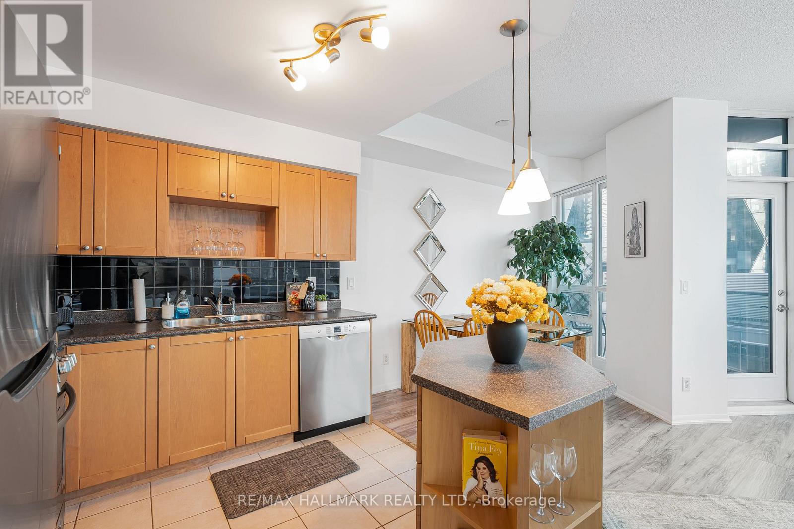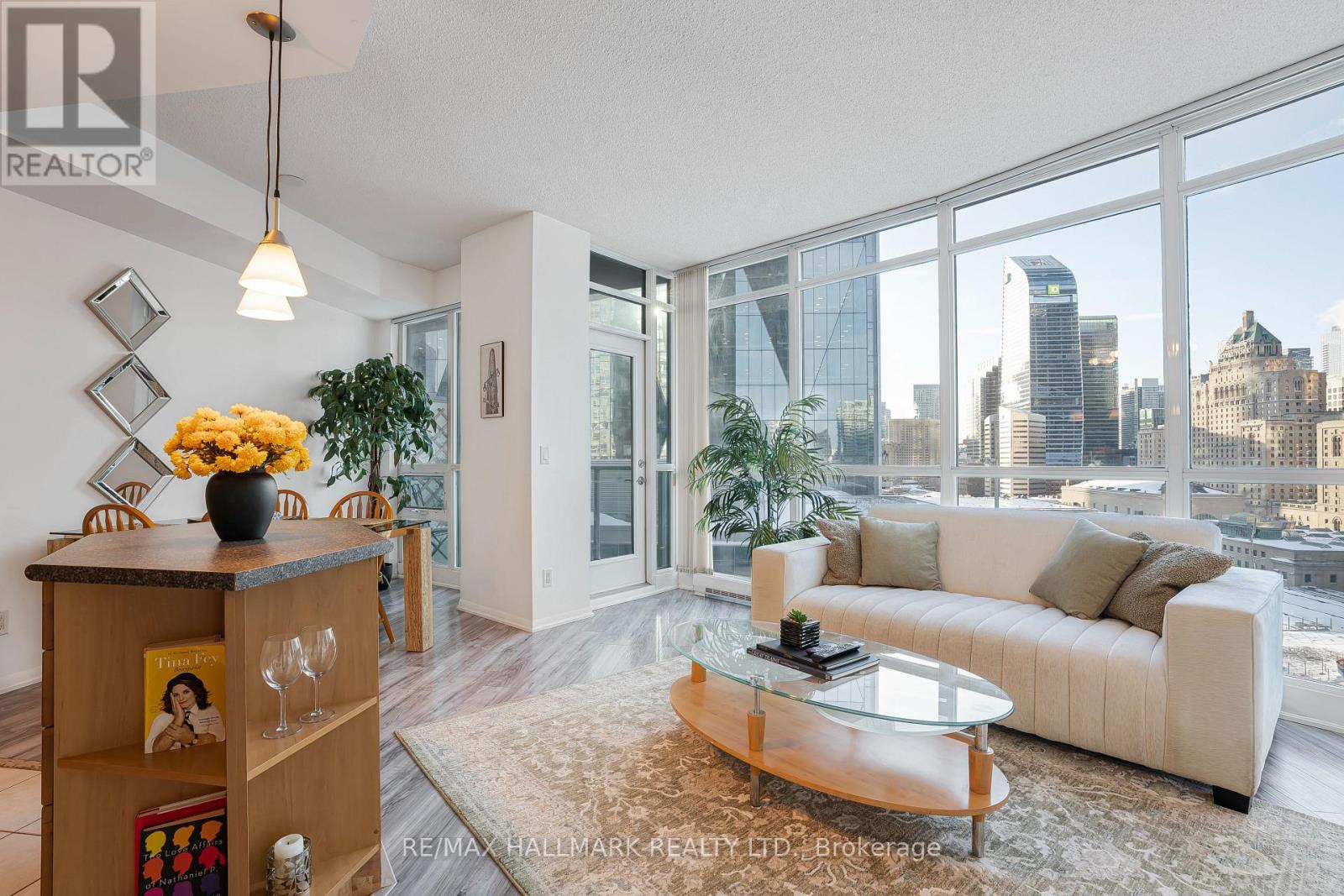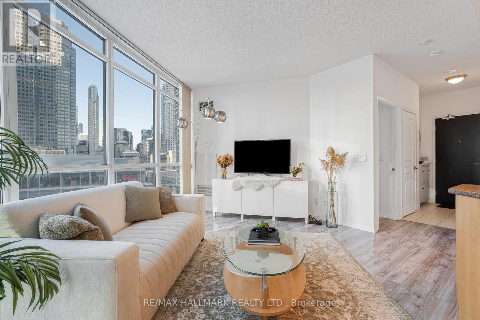 Bright and unique open-concept suite featuring a spacious living and dining area withfloor-to-ceiling windows offering stunning city views. This fully furnished 1-bedroom,1-bathroom unit includes 1 parking space and a modern kitchen ideal for entertaining, completewith an island, ample storage, new stainless-steel appliances, and laminate flooringthroughout.Located in a superior Yonge Street location, steps to the Financial District, Union Station,PATH, waterfront trails, Queen's Quay, and major sporting and entertainment venues. (id:4555)