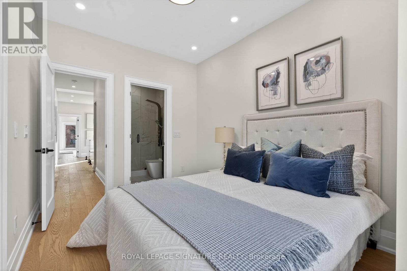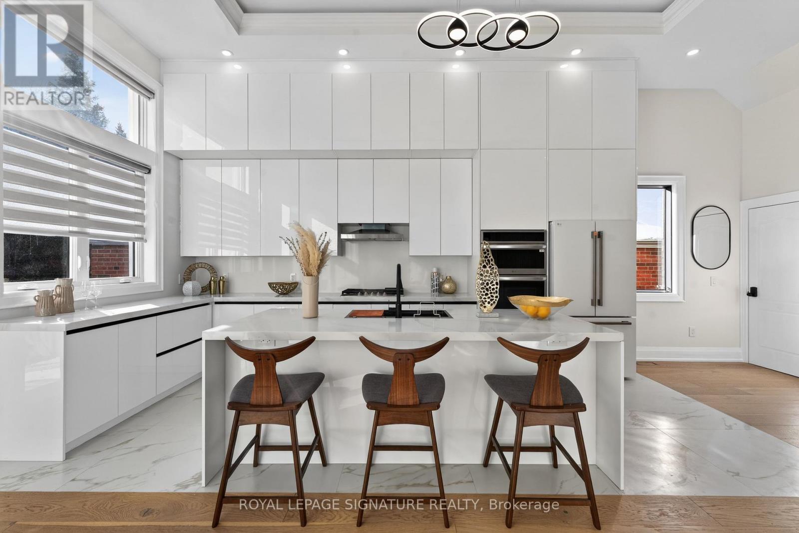 Stunning custom-built 4-bedroom home with a separate legal 2-bedroom basement suite set on a rare 30x194ft lot sought-after O'Connor-Parkview neighbourhood! This gorgeous home offers an exceptional design, space, and versatility, including an outstanding income potential! The welcoming main floor foyer features porcelain flooring, large closet and soaring 12 ft ceilings that carry through the main floor accented by refined European-inspired contemporary fluted paneling. The open-concept main level is bathed in natural light from expansive windows and showcases gorgeous engineered hardwood flooring and wainscoting throughout. The large dining area is perfect for entertaining, while the show-stopping kitchen impresses with abundant storage, top-of-the-line appliances along with sleek quartz countertops and backsplash. Sliding glass doors extend the living space outdoors to an expansive deck and a fully fenced back yard. The spacious living room overlooks the main floor, creating an ideal setting for everyday living and family gatherings. Oak stairs with glass railings lead to the second level highlighted by a large skylight and convenient upper-floor laundry. The serene primary suite is a luxurious retreat featuring a private balcony, walk-in closet, and spa-like 7-piece ensuite with double vanity, glass shower with body sprays, and a soaker jacuzzi tub. Three additional spacious bedrooms offer generous closet space, abundant natural light, and direct access to bathrooms each with glass shower with body spray. The bright, legal basement apartment includes large above-grade windows, two bedrooms each with direct walkouts to a large patio, a full kitchen, laundry, and a 4-piece bath, ideal for rental income or extended family. Set on an exceptionally deep 194-foot lot, the backyard is a rare offering with tremendous future potential for a massive garden suite. This home is ideally located near TTC and GO Transit, walk to local shops, supermarket, parks and schools! (id:4555)