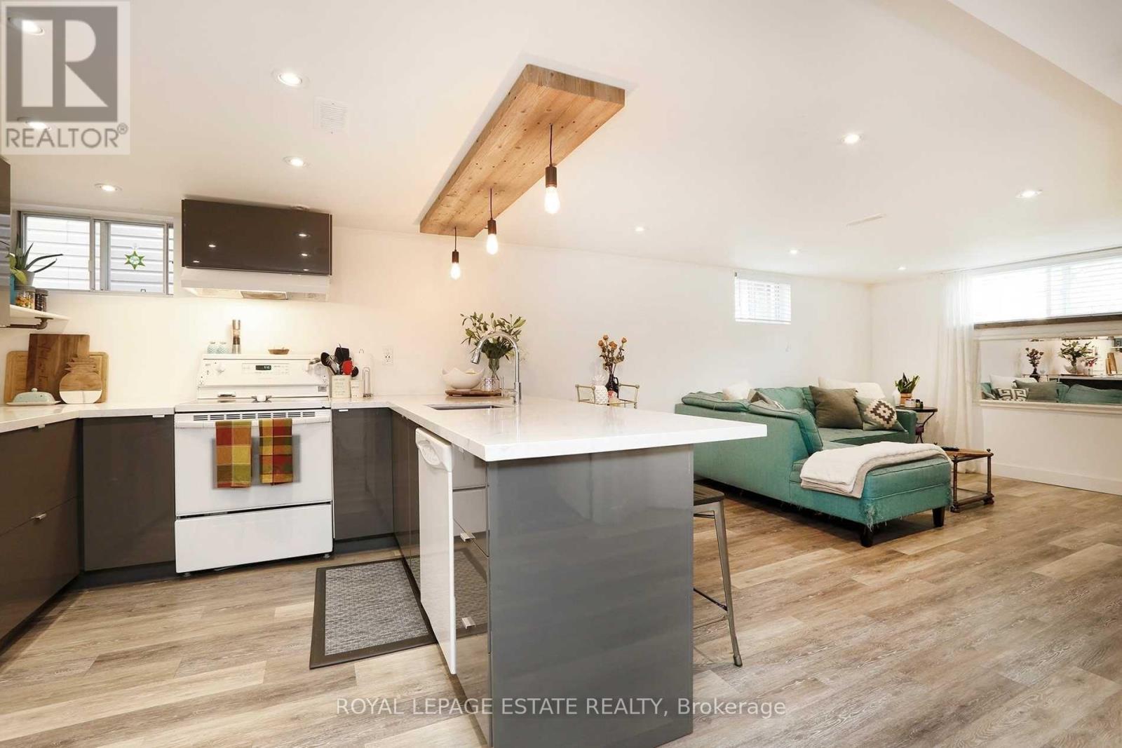 Beautifully renovated two-bedroom basement apartment located on a quiet residential street just north of Kingston Road. This well-finished space offers modern upgrades, clean design, and practical living in a convenient Scarborough location.The apartment features pot lights throughout, keeping the space bright and comfortable. The kitchen has been updated with new cabinetry, quartz countertops, and a custom light fixture that adds character without feeling overdone. The bathroom is a standout, finished with heated marble floors, granite countertops, double sinks, and a glass walk-in shower.Everyday amenities including shops, cafés, restaurants, grocery stores, and services are close by along Kingston Road. Nearby parks and green spaces provide options for walking, jogging, or cycling, with Scarborough Bluffs parks and waterfront trails easily accessible by bike or short drive.Transit is convenient with TTC bus routes along Kingston Road, offering straightforward connections to subway stations and the rest of the city. The area is established and residential, with access to schools, community centres, and recreational facilities. Shared laundry facilities included. Kitchen equipped with refrigerator, stove, microwave, and dishwasher. Utilities are included; tenant is responsible for internet, phone, and cable services if desired. Unit features built-in shelving, all existing electric light fixtures, heated marble bathroom floors, and granite bathroom countertops. Tenant has use of the backyard and BBQ. Separate entrance provided. Short-term rentals, including Airbnb, are strictly prohibited.Photos are from when the unit was previously occupied. (id:4555)