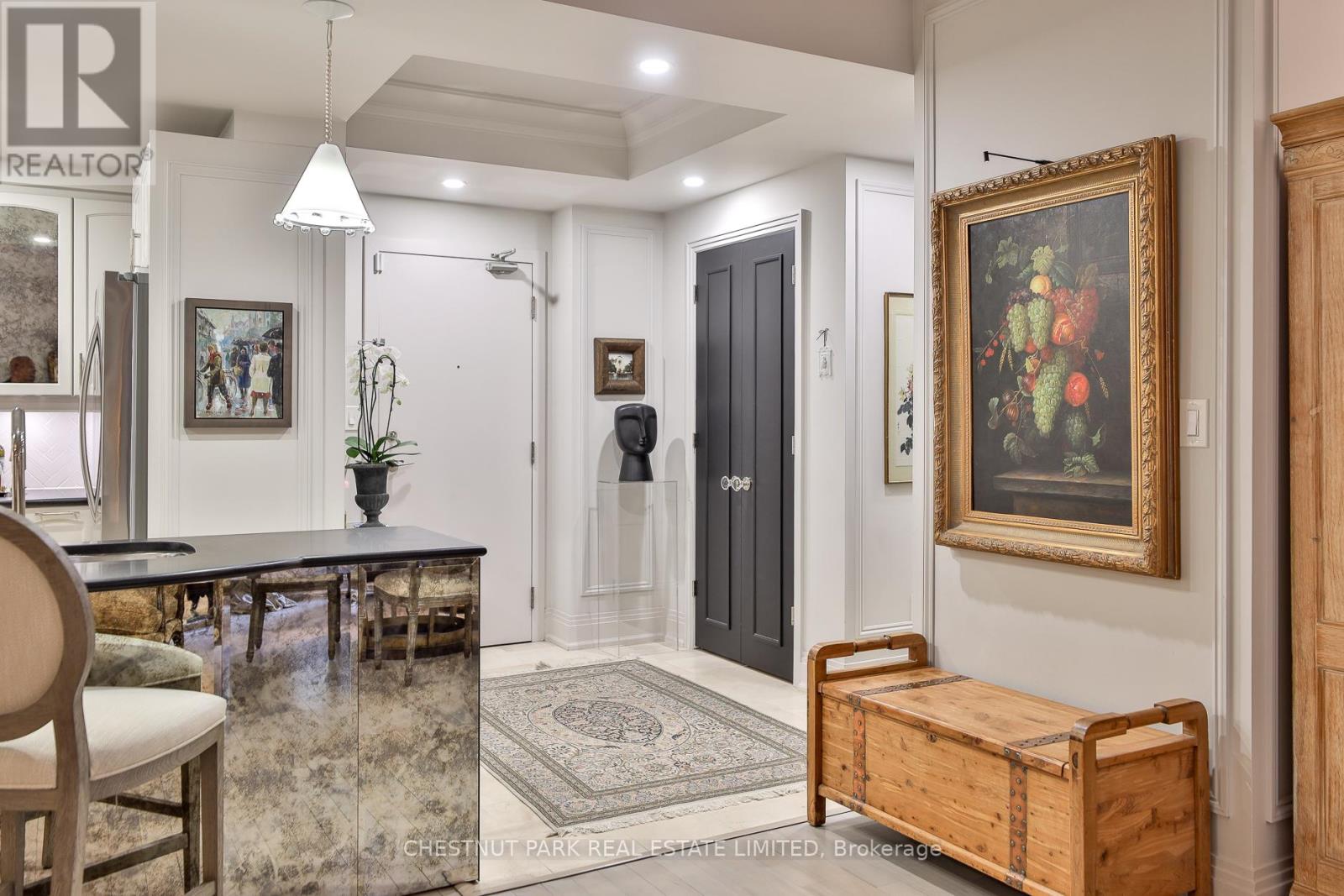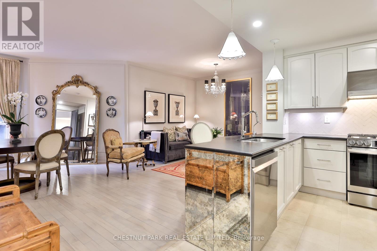 A beautifully upgraded and thoughtfully redesigned residence in one of Yorkville's most sought after boutique buildings. This refined suite boasts 925 square feet of meticulous and cohesive living space with high quality improvements throughout, including custom California Closets in three storage areas, upgraded lighting with pot lights, crown molding in recessed ceilings, re stained hardwood floors, new hardware, and elevated millwork that adds a timeless and sophisticated feel. The kitchen has been refreshed with upgraded new appliances including a gas stove, refinished cabinetry, improved lighting, and stylish finishes that enhance both function and design. The bedroom features a newly designed built in closet perfect for additional storage. The full bathroom renovation introduces a spa inspired level of quality with high end fixtures, custom storage, elegant materials and marble throughout. This suite includes one parking space and one locker. Situated in the heart of Yorkville, this residence offers unparalleled access to luxury shopping, Michelin rated dining, top fitness studios, the Four Seasons, the ROM, and the city's finest amenities. A rare opportunity to own a move in ready suite in a prestigious building steps from everything Yorkville has to offer. (id:4555)
