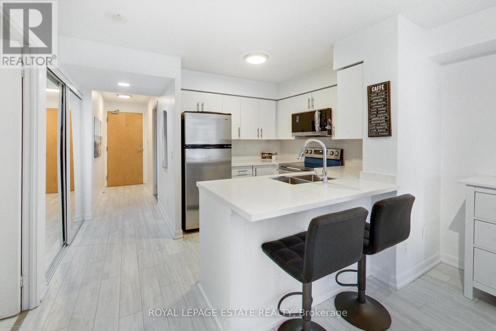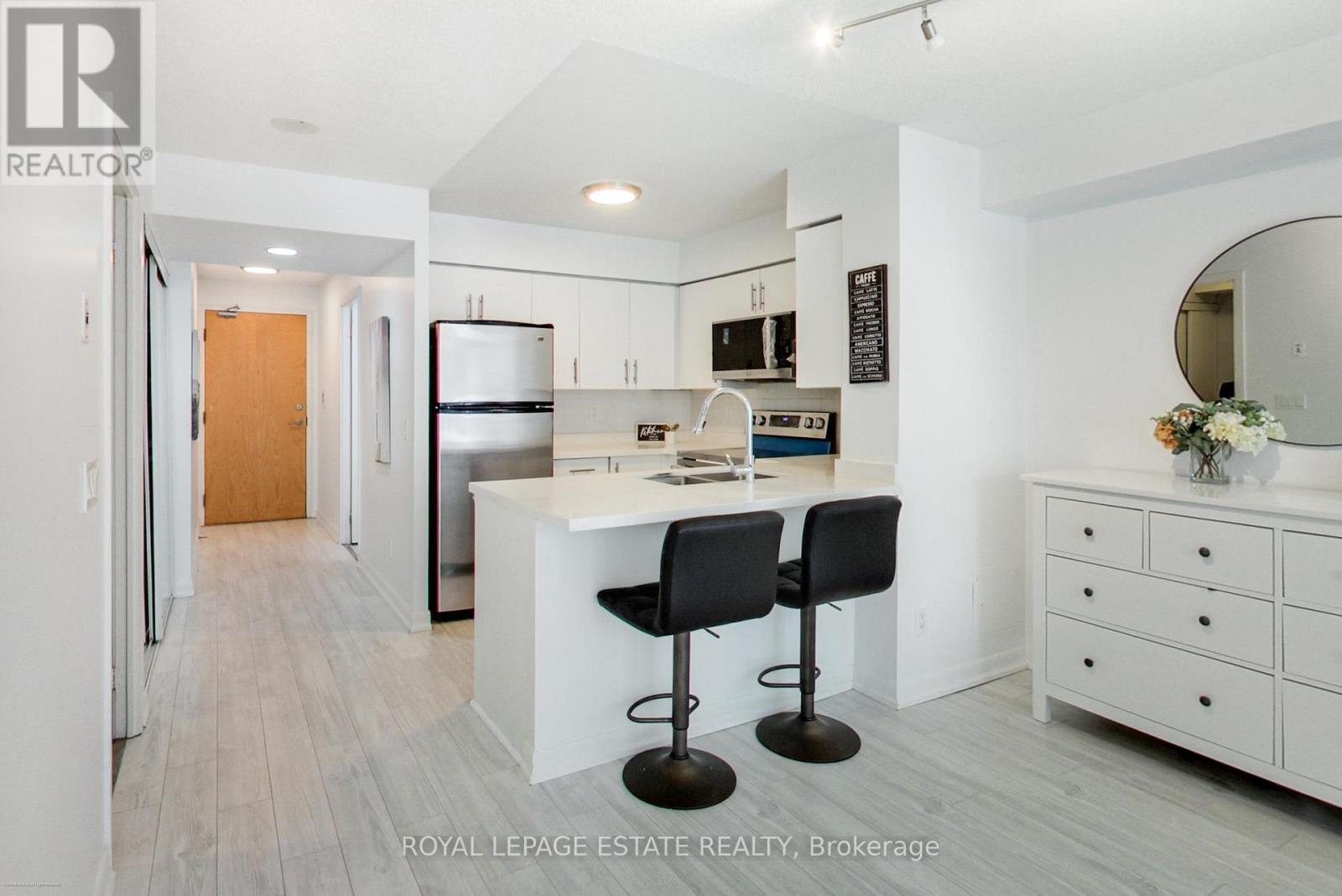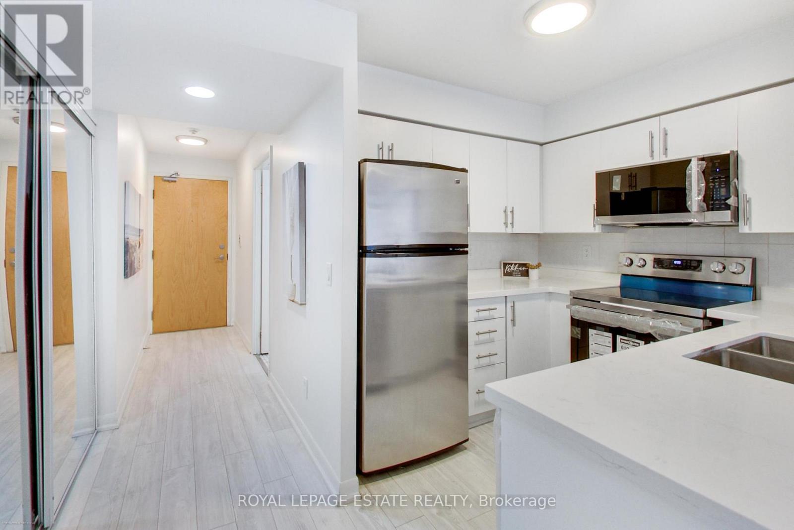 No more shoebox living - enjoy approximately 715 sq feet, the largest 1+1 in the building. Freshly painted and recently renovated with a smart, highly functional layout that lives more like a two room suite. The fully renovated kitchen features quartz countertops, backsplash, modern cabinetry, and brand-new LG stainless steel stove, LG hood vent/microwave and Whirlpool stainless steel dishwasher, installed as part of the recent renovation. New vinyl plank flooring flows seamlessly into the living space, complemented by brand new light fixtures in the living room and bathroom. The enclosed den functions as a true second room, complete with a full door and closet, and was previously used as a bedroom - a rare and valuable layout not often found in 1+1 units. Enjoy full-service amenities including indoor pool, gym, sauna, virtual golf, billiards, party room, guest suites, visitor parking, and 24 hour concierge. The building has been recently upgraded with renovated hallways, concierge area, and amenities. Perfectly located in the heart of North York, with direct underground access to North York Centre Station and Sheppard Station. Steps to shopping, dining, and entertainment, with quick access to Highway 401. Owner occupied, exceptionally well maintained, and move-in ready. Includes parking and locker. (id:4555)