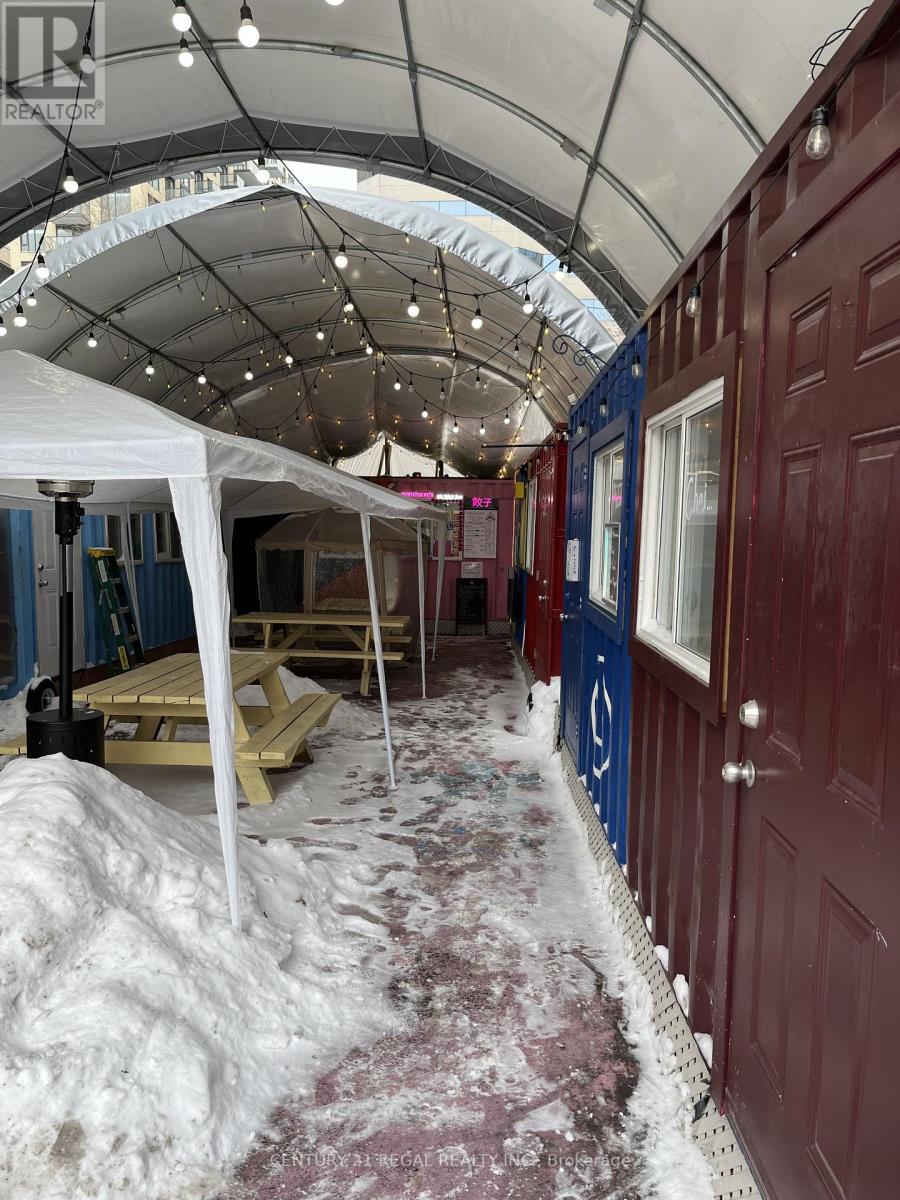 INDUSTRIAL STYLE SHIPPING CONTAINER RETAIL OUTLETS FOR LICENSE IN DOWNTOWN TORONTO LOCATED ON QUEEN WEST JUST STEPS FROM BATHURST ST. THERE IS STEADY WALK BY TRAFFIC HERE DAY AND NIGHT. IDEAL FOR QSR / GRAB AND GO FOOD BUT RETAIL AND OTHER USES ARE PERMITTED. SOME RESTRICTIVE COVENANTS APPLY. EACH UNIT IS ABOUY 80 SQUARE FOOT AND CAN BE REMODELED TO SUITE. COMMUNAL COURTYARD AND SEATING AREA. LOOKING FOR THE RIGHT TENANT MIX . (id:4555)