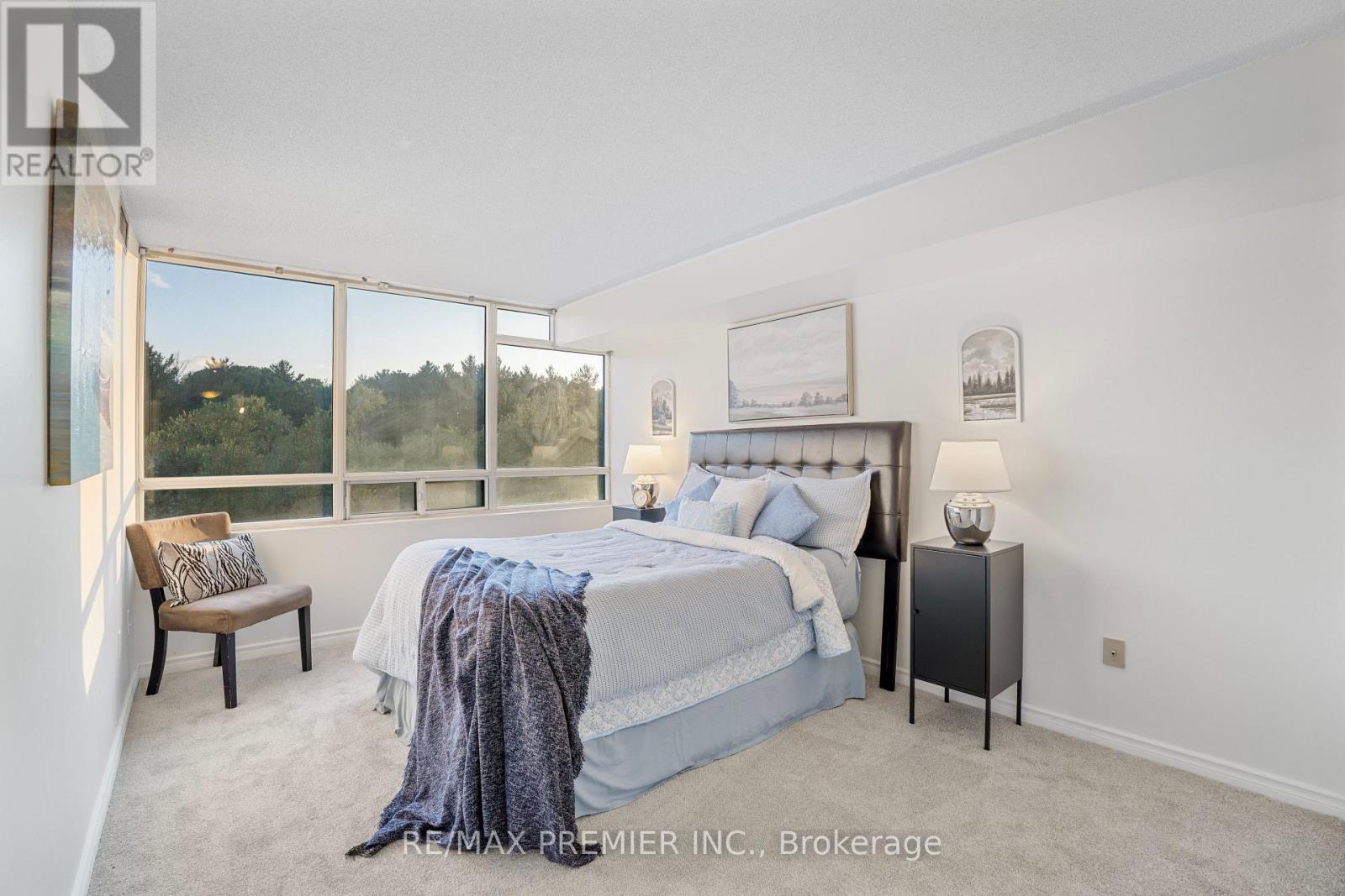 Welcome to this beautiful 2-bedroom, 2-bathroom condo unit that has been freshly painted and is ready for you to move in. Enjoy stunning, unobstructed views of lush greenery from every window. The newly renovated kitchen features elegant white cabinets, a stylish backsplash, and granite countertops, creating a bright and contemporary space for all your culinary adventures. New carpet throughout the unit adds a luxurious touch and enhances comfort. The building is meticulously maintained and offers excellent amenities, including a 24-hour concierge, exercise room, games room, indoor pool, and a party/meeting room. Conveniently located just minutes from the 401, within walking distance to the University of Toronto, Centennial College, public transit, dining, shopping, and grocery stores. (id:4555)