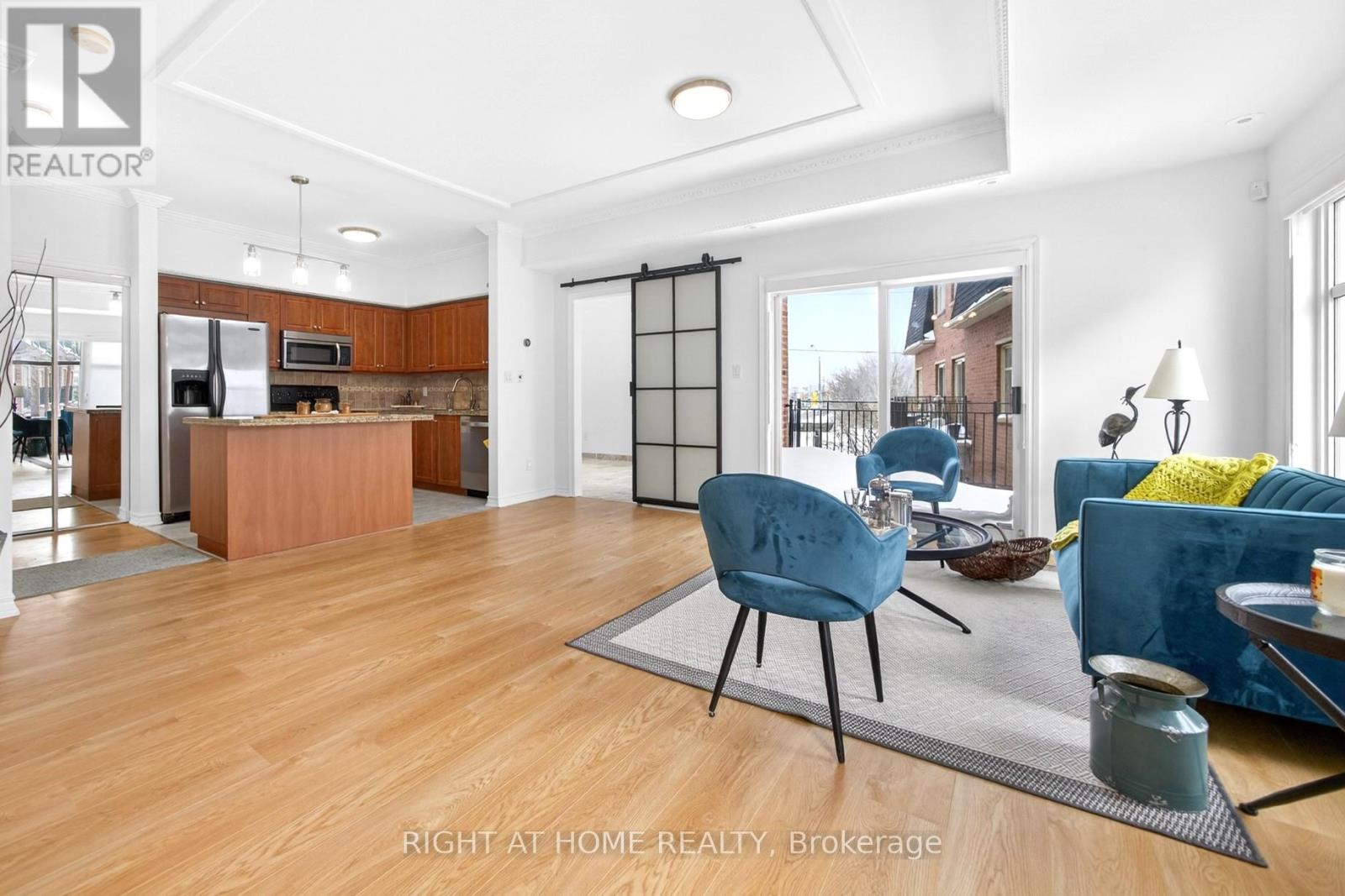 Open House Sunday 2-4 pm. Welcome to your sunny, south facing 1419 sf end unit, quiet courtyard facing open concept home in Victoria Village with 4 bedrooms, 3 bathrooms, 2 parking & locker. Generous open-concept main floor with high ceilings, breakfast island, granite counters, stainless steel appliances, under mount lighting and travertine wall mosaic tiles. Main floor seperate room offers work at home office space with it's own private terrace when you need a moment to reset. Primary bedroom with a 4 pce bath featuring a jacuszzi tub. Soak in the sun on your 108 sf private walk out terrace & a 431 sf walk up roof top sun deck with panoramic views of the city, for outdoor living, BBQing, enjoyment, creating memories entertaining family & friends. Location location location right on the Eglinton LRT line just at your door step with shopping galore minutes away. Convenient access to TTC, DVP, schools, Daycare, parks, and entertainment. (id:4555)