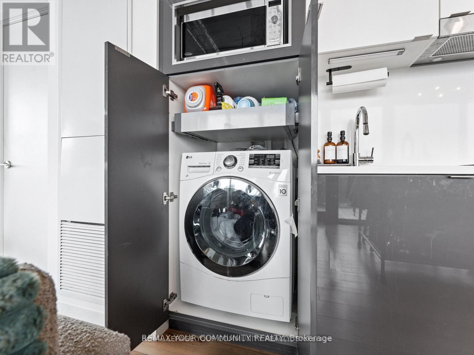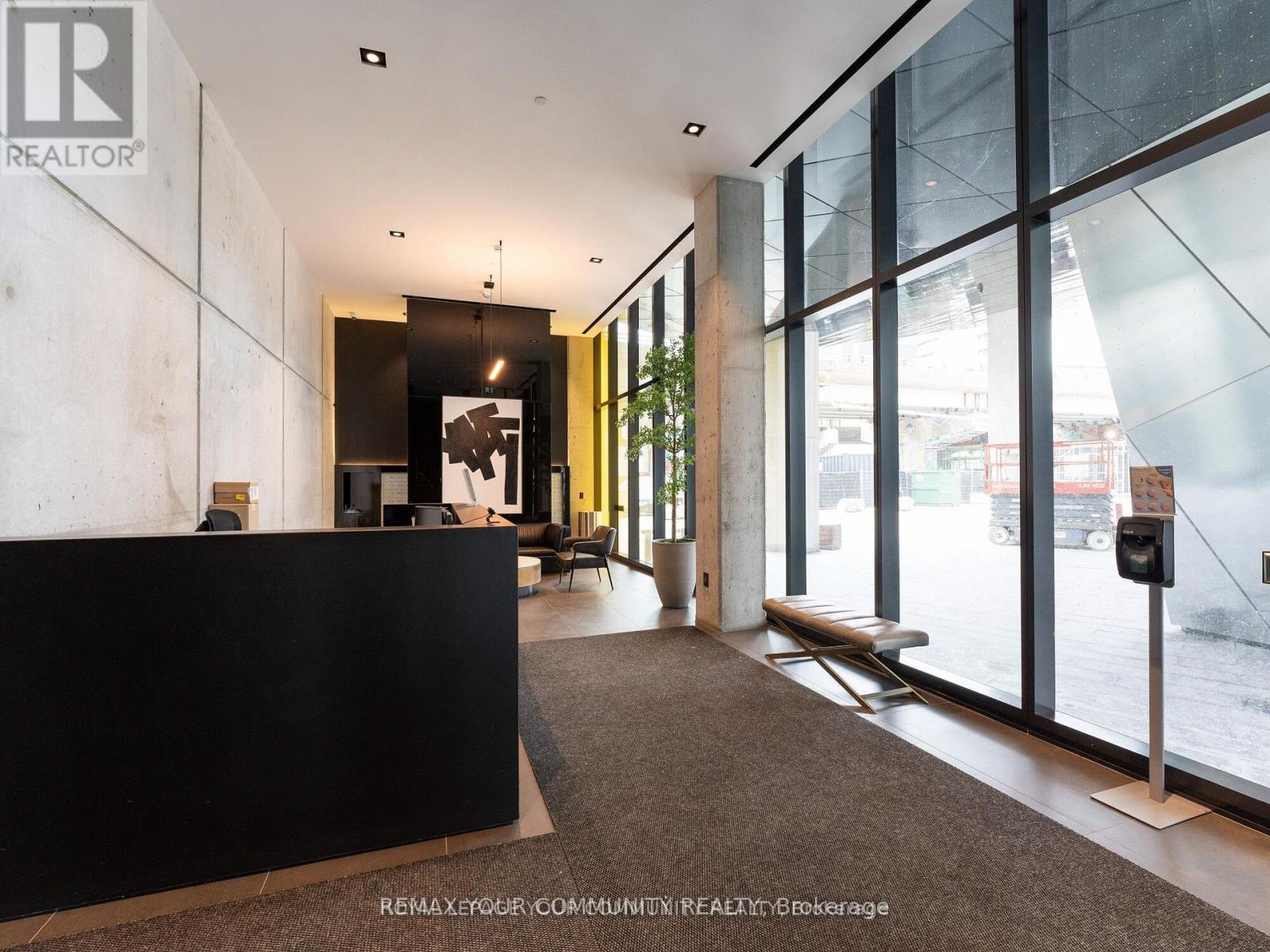 Welcome to Harris Square - a modern boutique loft-style corner unit boasting 608 sqft of contemporary living space plus an expansive 478 sqft terrace with breathtaking, unobstructed views of downtown. Conveniently located just steps from Leslieville, the Distillery District, St. Lawrence Market, and the Financial District. This modern loft features soaring 9-ft exposed concrete ceilings, stunning hardwood floors throughout, a sleek kitchen, and a spa-inspired bathroom. The loft is surrounded by floor to ceiling windows so you have a stunning view from every corner of the apartment. The most unique feature of this condo is the luxurious wraparound balcony with NE city views and a gas line for a barbecue perfect for hosting. Building amenities include an executive concierge, a fully-equipped gym, a serene yoga space, guest suite, party room, and a rooftop terrace with panoramic views. Additional perks include a kids' playroom, a library, and more. The unit comes complete with stainless steel appliances (fridge, stove, built-in dishwasher, and all-in-one washer/dryer), as well as a dedicated parking spot and locker. (id:4555)