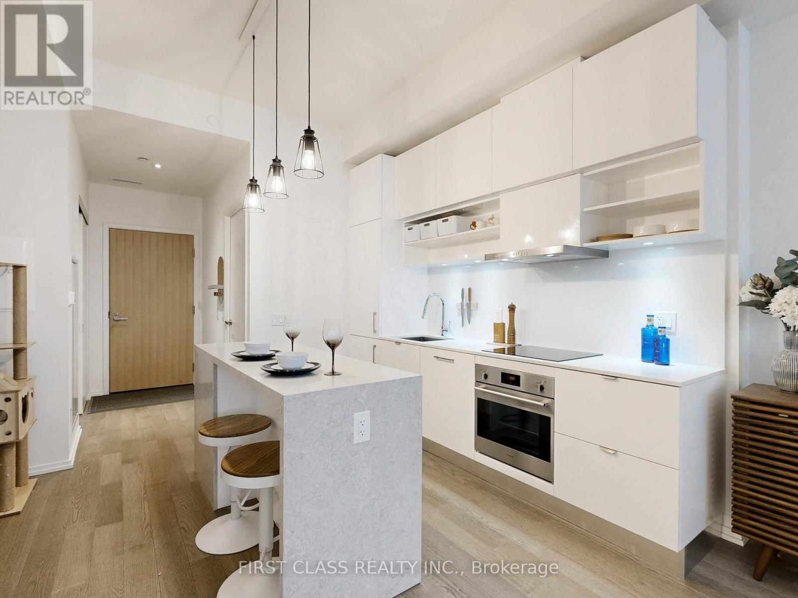 Live in modern luxury at the award-winning Art Shoppe Lofts + Condos, ideally located in the heart of Midtown right on Yonge Street. From the moment you step inside, you're greeted by soaring 10-foot ceilings-a rare feature available on only select floors-enhancing the sense of space and light throughout this well-designed 569 sq. ft. open-concept suite.Floor-to-ceiling windows flood the unit with natural light, while the sleek modern kitchen impresses with built-in appliances, soft close cabinetry, quartz waterfall centre island with upgraded matching backsplash, and under-cabinet lighting. A versatile media alcove offers endless possibilities: a work-from-home nook with custom desk and shelving, additional storage or pantry extension, a bar or coffee station, pet zone, or music nook.The extra-long living area comfortably accommodates an oversized sofa-perfect for entertaining-and flows seamlessly to the balcony, where you can enjoy sweeping city views. Unwind in the spa-like bathroom featuring a deep soaking tub, then retreat to the spacious bedroom with an extra-large closet for a restful night's sleep.Ultimate convenience awaits with Farm Boy and Staples located directly on P1, and Eglinton subway station just a 2-minute walk away. Steps to restaurants, bars, shopping, GoodLife Fitness, Cineplex, and more.Enjoy exceptional 5-star amenities, including a rooftop infinity pool, sun deck, hot tub, cardio room, weights room, yoga studio, wine tasting room, sauna, theatre, party room, residents lounge, kids playroom, billiards room, and rooftop BBQ terrace. (id:4555)