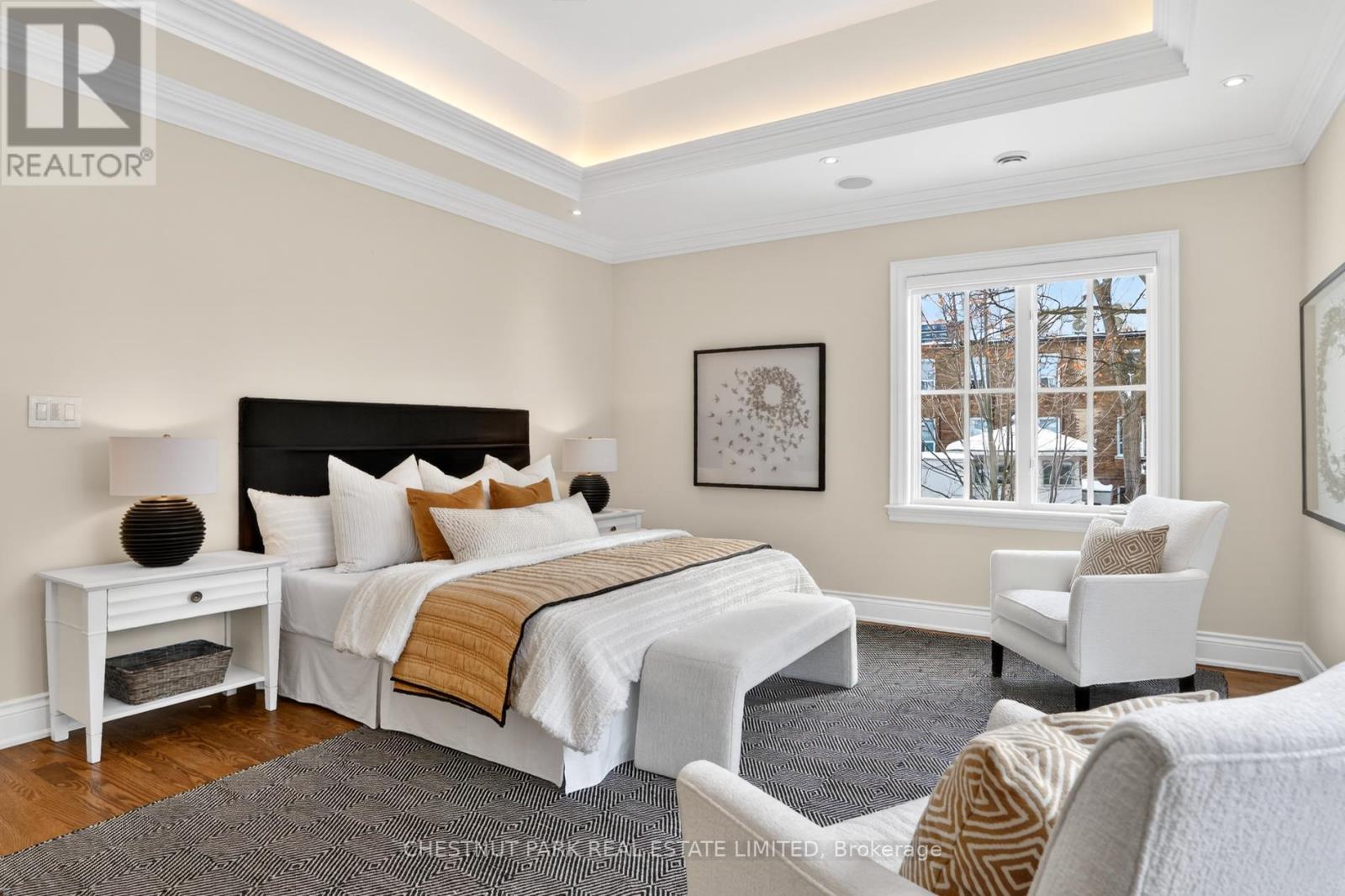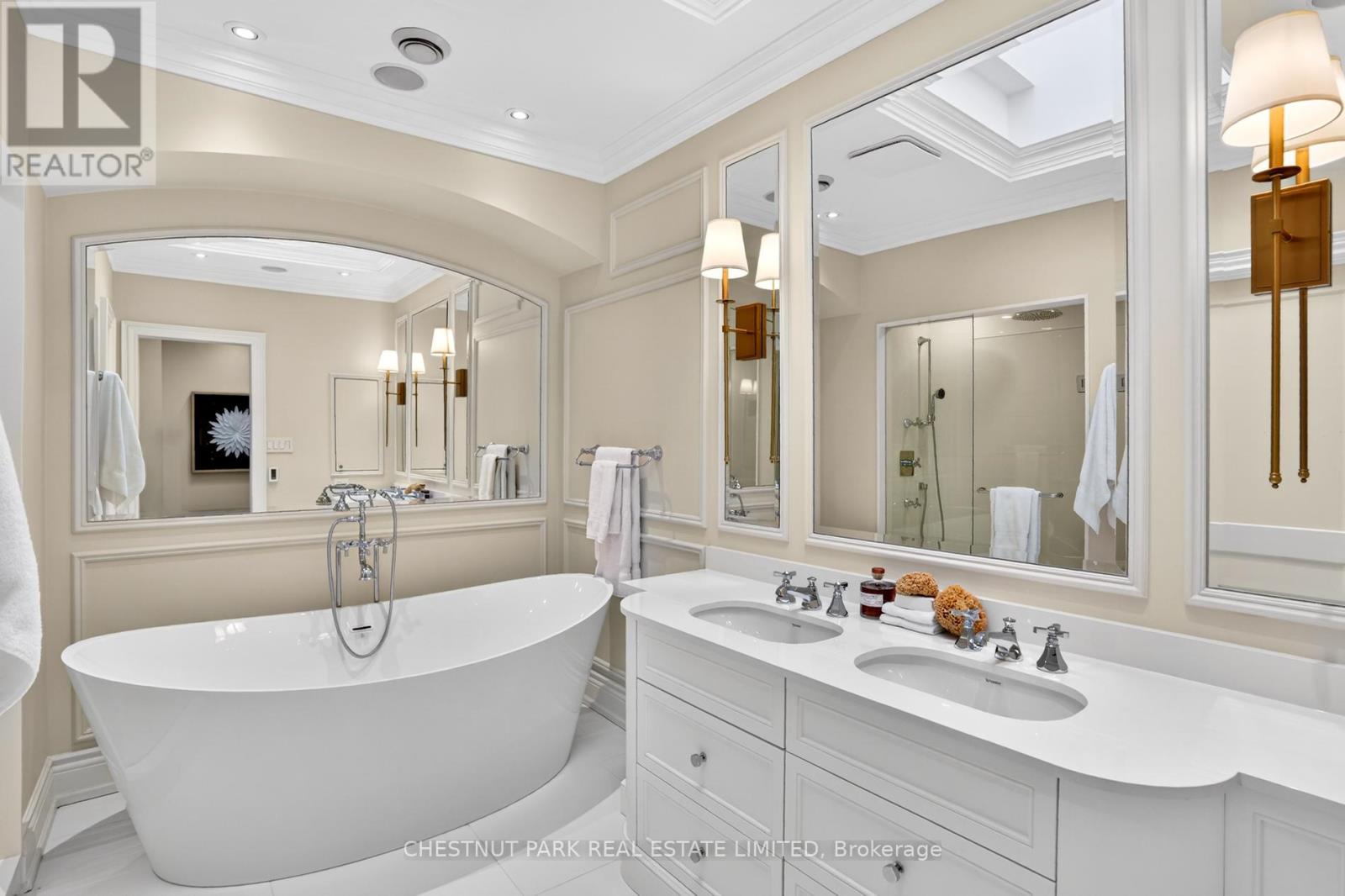 The highly coveted Admiral Road. A grand, newly renovated 4+2 bedroom home awaits. Be awed by the massive scale and volume of space with over 4000sf above grade. A brilliant renovation that brings modern ease and enjoyment, but highlighting the charm and character of this magnificent residence. Formal living and dining rooms are accompanied by the open concept kitchen family room that opens to the private back garden. Second floor primary retreat with dressing room and spa-like 5-piece ensuite. Second floor den or office space with gas fireplace. Three additional bedrooms make for the perfect family home. Fully finished basement with guest room and semi ensuite, lower level family room and gym. (id:4555)