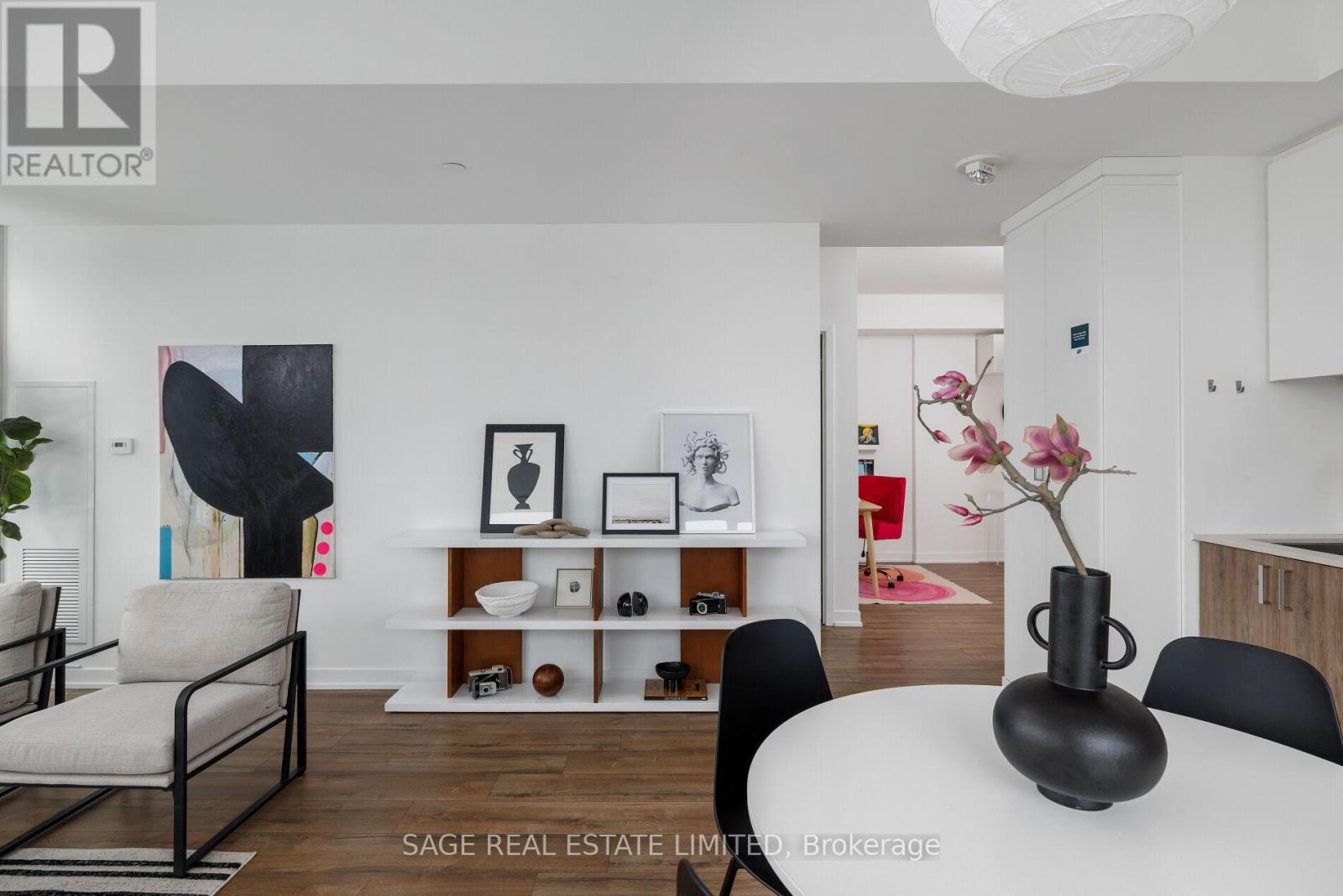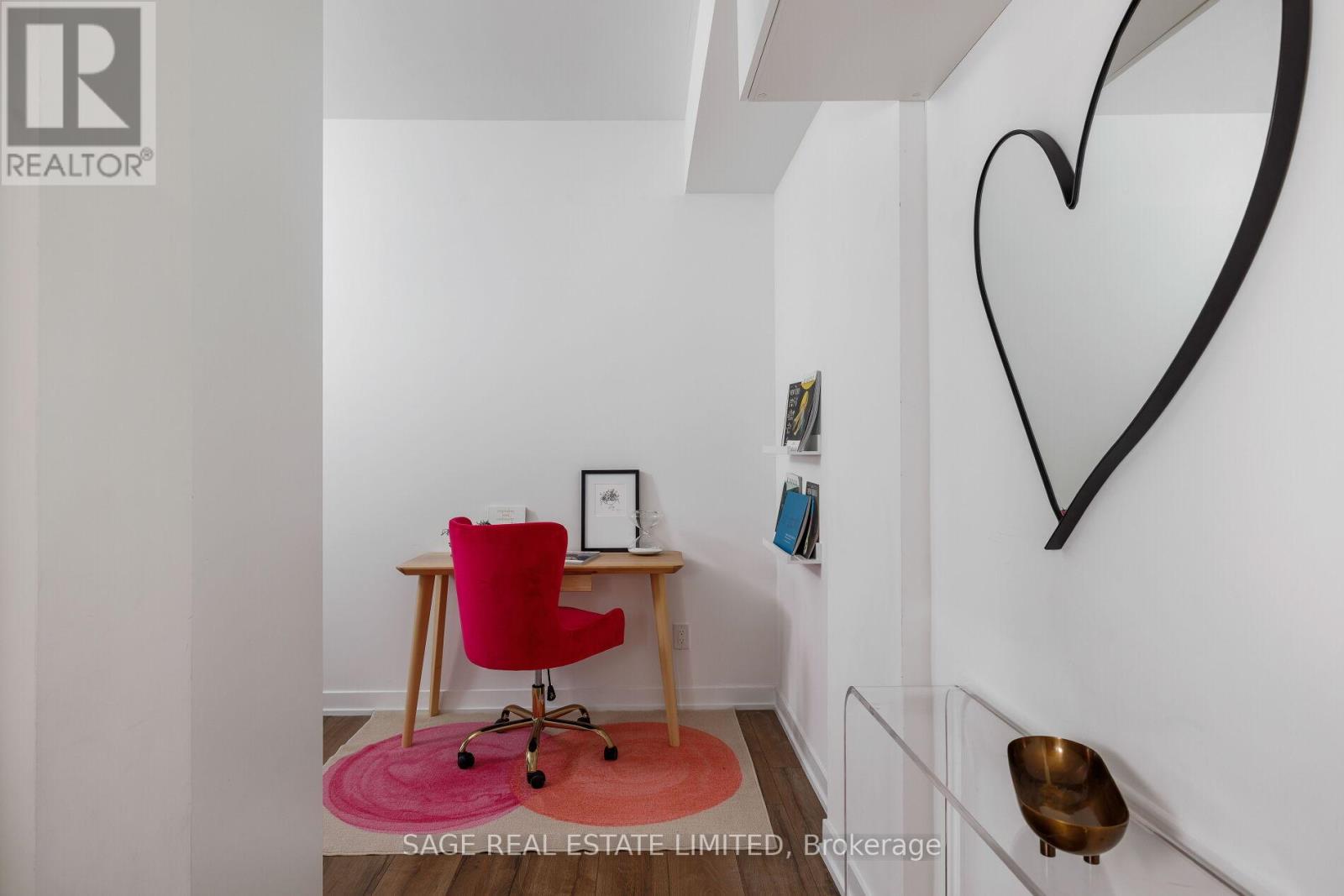 Your slice of heaven at 1787! Savvy buyers, don't miss this top layout in one of Toronto's best-kept secret buildings. This 940 sq ft unit defines "freehold alternative" in all the best ways! We always love a corner unit, and this one greets you at the end of the hall next to a convenient grocery nook. The entry (with oversized storage and ensuite laundry) opens to an open den (perfectly tucked away for work from home meetings) and additional storage. The open-concept main area includes two separate balconies with upgraded flooring and SE views all the way to the lake. The floor-to-ceiling windows bathe the unit in light, ideal for plant lovers. We love the kitchen with upgraded backsplash and counters, a hidden dishwasher, and a FULL-SIZED FRIDGE! Both bedrooms and bathrooms are large and private, but I think our favourite unexpected feature here is all the integrated built-in storage throughout added by the current owners. In a world of condos, where there never seems to be quite enough space, your problems are solved here. What else could a buyer possibly want? Parking? Check! We've even got you covered with an EV charger. Locker? Check! Well-managed (and supremely pet-friendly) Scout Condos is a West side hidden gem with 24 hour concierge. We love the amenities and little touches that (as our sellers describe) "make it feel like you have all the perks of living in a condo while not missing out on living in a house!" There are two terraces with bbqs, two party rooms (which serve as work spaces for residents when not rented), a pet wash, children's playroom, workshop, great gym, community garden, bike storage, billiards room, and even electronic lockboxes for packages. No detail has been missed! Junction-adjacent and extremely walkable and commutable. The streetcar stops outside your door, but you are infinitely close to shops, the stockyards, restaurants, great schools (including French immersion), biking trails, and all the amenities of the Earlscourt CC! (id:4555)