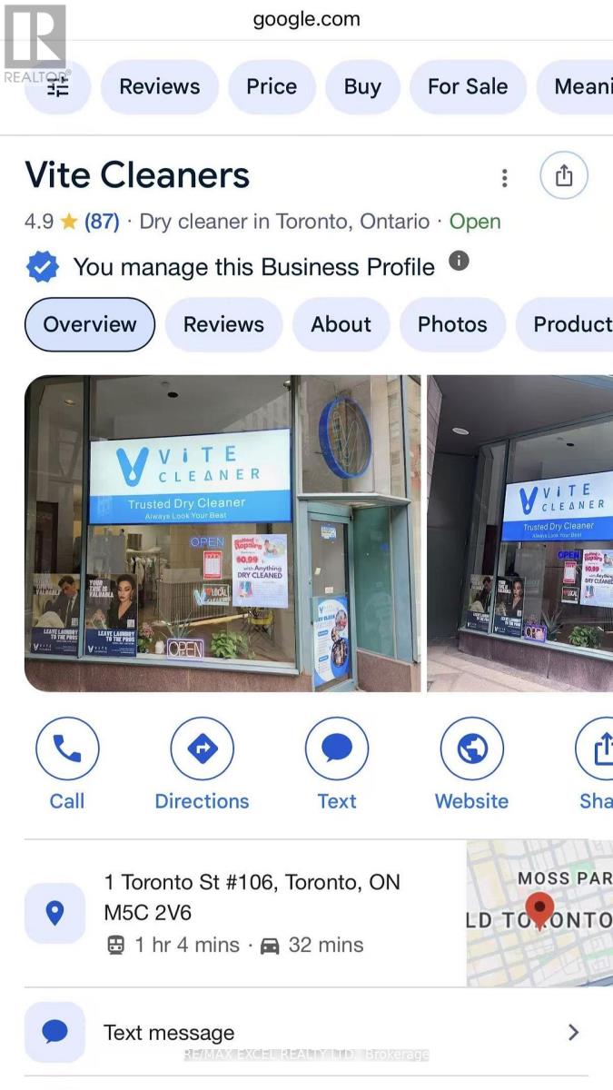 Upscale & Modern Style Dry cleaner in Central Downtown area surrounding by High end Office, High rise Condos and Hotel. State of art renovation and Automated self-pick up station. Business setup about 1 years and profitable by the second month + owner's salary. Turn-key business and no experience needed. Fully support by a central dry cleaner provider with daily pickup and drop off. Built-in changing room allows for alteration services. Another 2 years lease with option for 3 years renewal. Lowest rent in downtown prime area. Training is possible after closing. (id:4555)