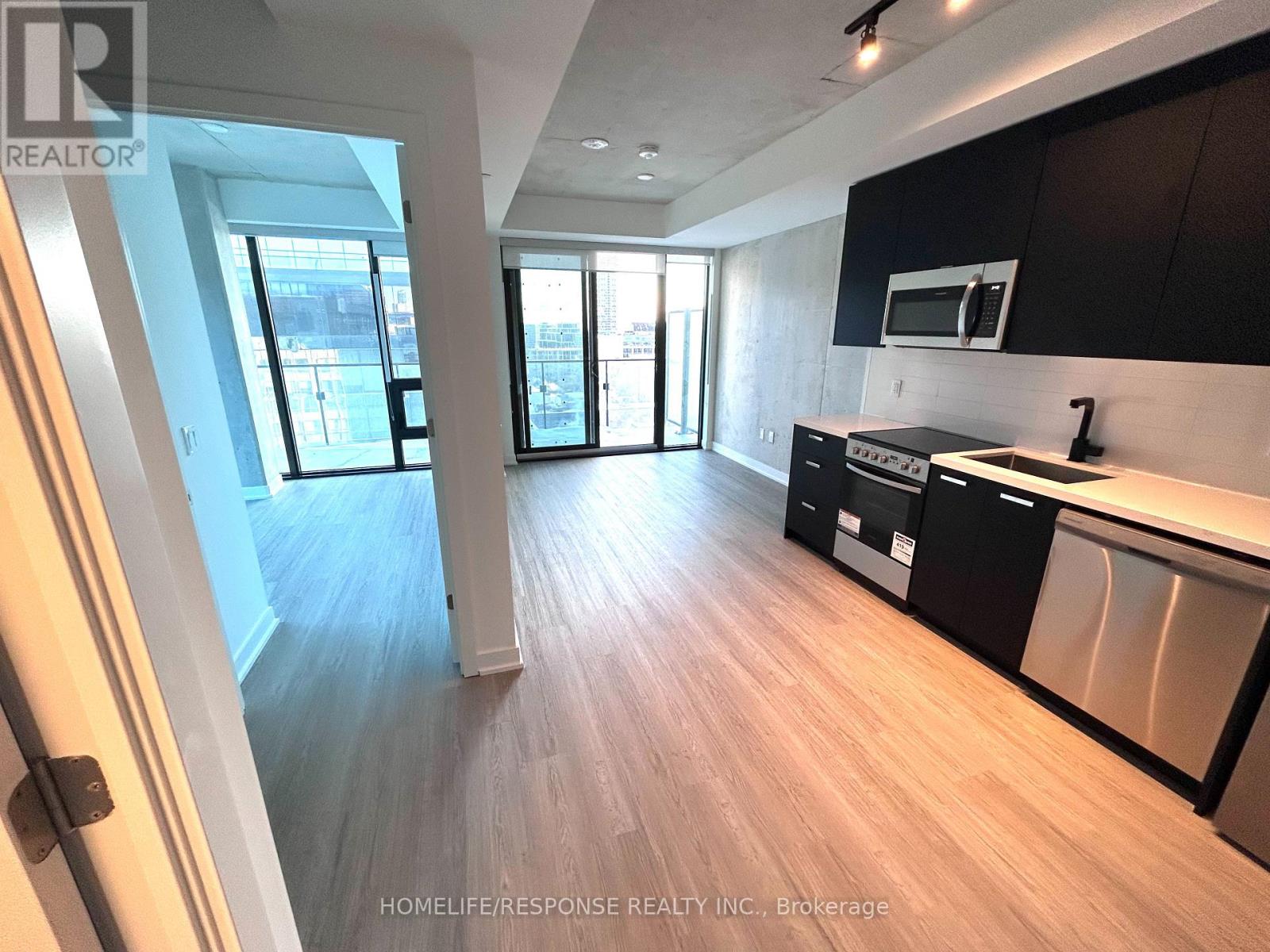 Brand new Bauhaus Condo 1 Bedroom + Den, thoughtfully designed for modern urban living. Enjoy a great, unobstructed panoramic view. Bright and airy with extra wide windows, professionally installed blinds, and wood flooring throughout. The open concept layout includes a versatile den ideal for a home office, a spacious living area, and a walkout to a private balcony for relaxing or entertaining. The modern kitchen features stainless steel appliances, quartz counter tops, and sleek cabinetry, while in-suite laundry adds everyday convenience. Residents enjoy 24 hour concierge service and premium amenities including a fitness center, party room, lounge, and outdoor terrace with a children's play area. Located in the heart of the King East/St. Lawrence Market Neighbourhood, steps to TTC, the Financial District, dining, shopping, cafes and universities, with a exceptional Walk and Transit Score of 99. Tenant to pay Hydro, and Heat Pump rental separately. (id:4555)