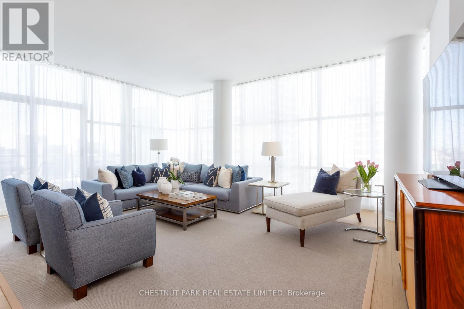 Perched above the city in a class of its own, this breathtaking 3 bedroom penthouse offers an extraordinary blend of elegance, comfort, and panoramic beauty. With sweeping views of both the skyline and the lake, you'll wake to glowing sunrises and unwind to unforgettable sunsets from your own private terrace. Inside, soaring 10-foot ceilings and an airy open-concept design create a light-filled, sophisticated living space. Brand new wide-plank oak hardwood floors and fresh, modern décor set a refined tone throughout. The renovated kitchen anchors the home with a stylish breakfast bar, generous prep space, and seamless flow into the living and dining areas - This rare offering features three spacious bedrooms and three beautifully renovated bathrooms. The primary retreat is separate from the other 2 bedrooms offering privacy, a luxurious ensuite and walk-in closet. Approx 2000 s.f of thoughtfully designed space provides exceptional storage, making penthouse living as practical as it is stunning. Privacy is paramount with only four penthouses on the floor. The residence also includes two parking spaces and two lockers - one being a large, separate room - a rare and valuable convenience downtown. Harbourview Estates is an established well liked building where residents enjoy access to the renowned 22,000 sq. ft. "Super Club," offering resort-style amenities including a pool, fully equipped gym, basketball court, billiards, bowling, and more. A wonderful concierge team, pet-friendly policies, and an unbeatable downtown location just minutes to the Gardiner, Scotiabank Arena, Rogers Centre, and The WELL complete the lifestyle. Luxurious furnishings are negotiable - move in and elevate your everyday living to something truly exceptional. (id:4555)