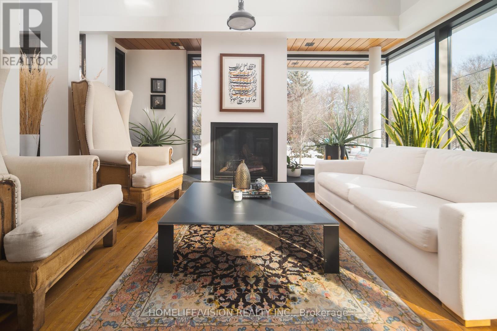 Discover architectural elegance in this custom-designed detached home situated in prestigious North Rosedale neighborhood. Experience seamless indoor-outdoor living with breathtaking nature views at historic Chorley Park, visible right from your doorstep and through the expansive floor-to-ceiling windows, offering a tranquil ambiance in the citys heart. This sophisticated 3-storey smart home features four luxurious bedrooms, each with a private en-suite bathroom, ensuring ultimate privacy and comfort. The ground level is a versatile space, perfect for an office or in-law suite, complete with in-floor heating, refrigerator, oven, dishwasher, en-suite bathroom, and laundry facilities-functioning as a self-contained unit ideal for guests or family members gourmet kitchen, with top-of-the-line appliances, flows effortlessly into the family room and out onto a stunning deck, perfect for entertaining with picturesque nature views. A private drive with a built-in garage offers interior access, featuring dual entrances from Douglas & Astley, ensuring convenience and security. This home's unparalleled view and location are unrivaled, making it a true architectural masterpiece. The third-floor loft suite, serving as the fourth bedroom, opens onto a stunning wrap-around terrace with sleek glass railings, providing panoramic and unbeatable views of downtown. This expansive outdoor space is perfect for entertaining guests or enjoying a tranquil retreat under the sun, making it an architectural highlight of the home. Office/Guest Suite & all Bathrooms have Hydronic heated floor.The location offers convenient and straightforward access to the ravine, as well as the popular Evergreen Brick Works, making it easy for visitors to explore these natural and cultural attractions. This home is the epitome of dream living, offering everything you could ever desire and more. (id:4555)